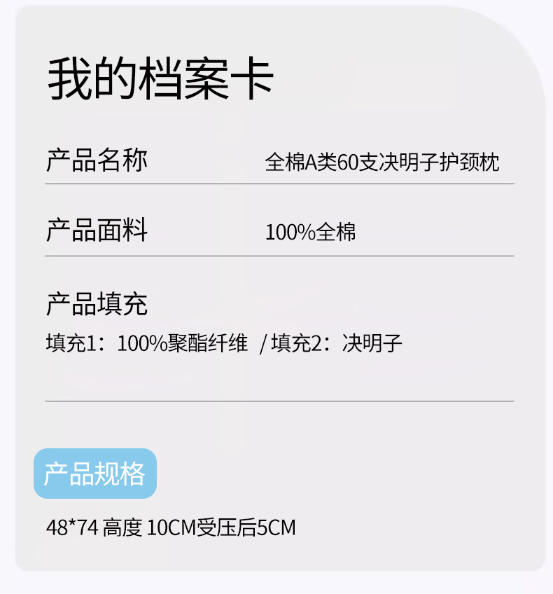 商品名称:(总)头等舱 2025新款全棉A类60支决明子护颈枕枕芯