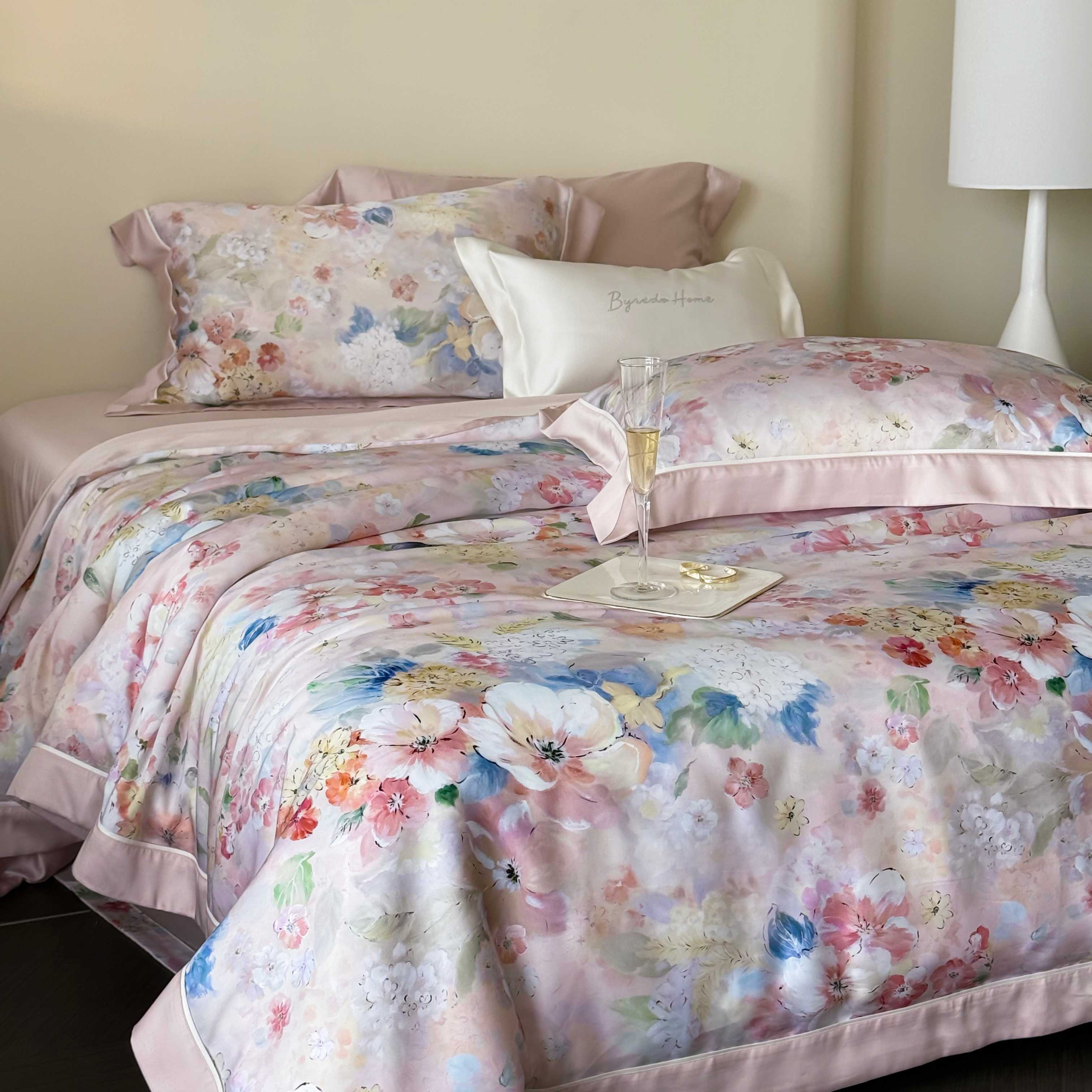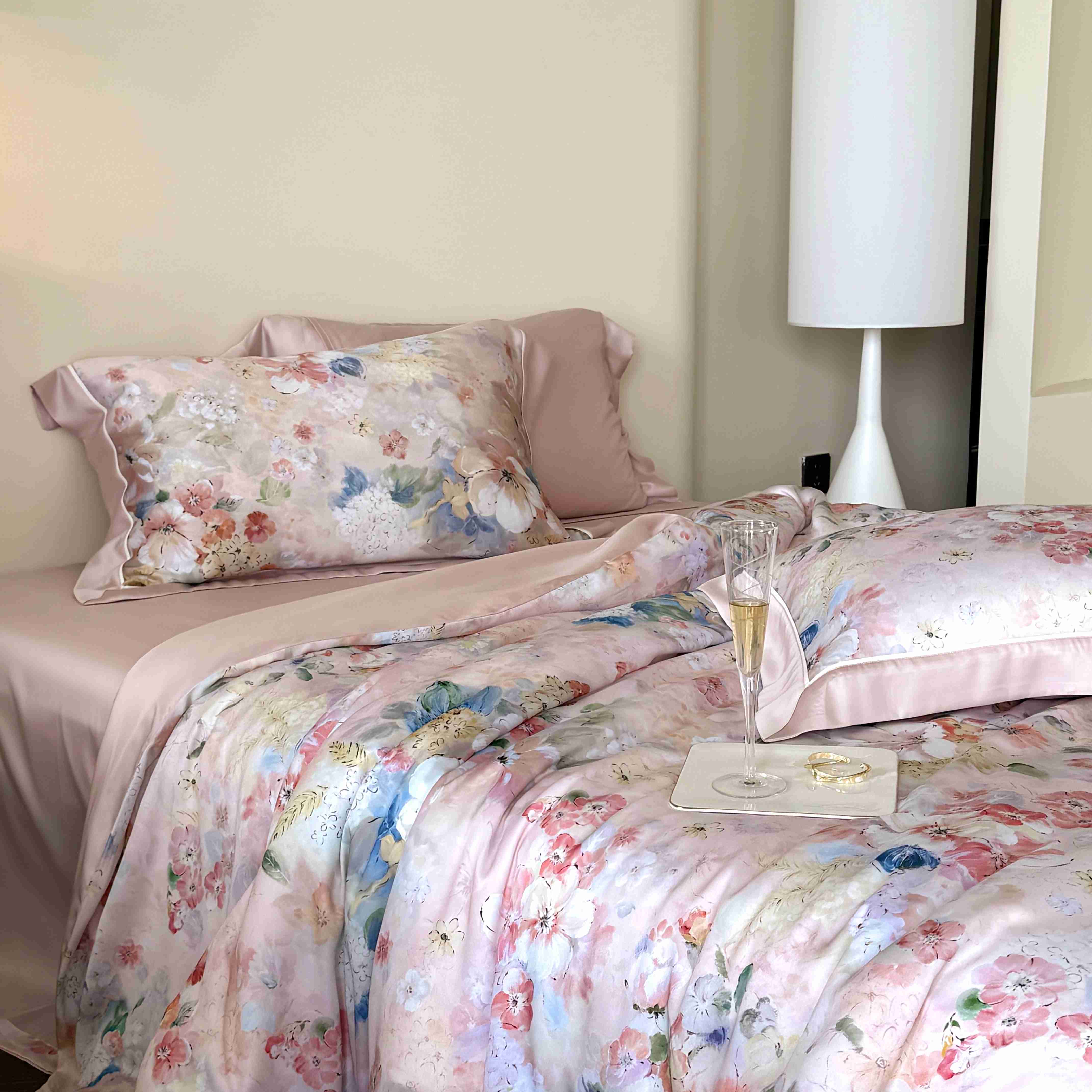 (总)馨蕊家居 2025新款春夏新品天丝印花80SLF奥地利兰精天丝夏被四件套-告白,夏被告白-蔷薇粉,夏被告白-婉若紫
