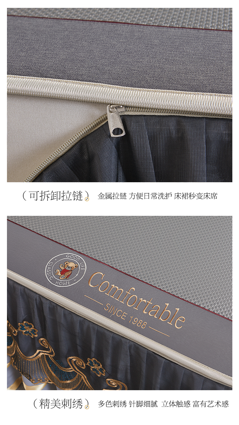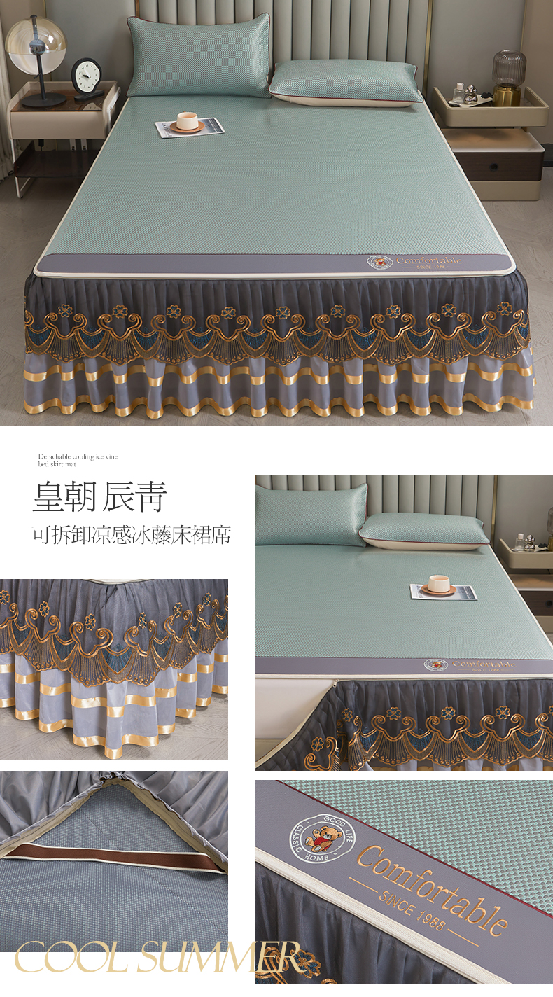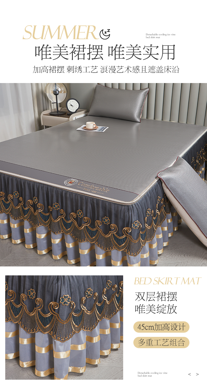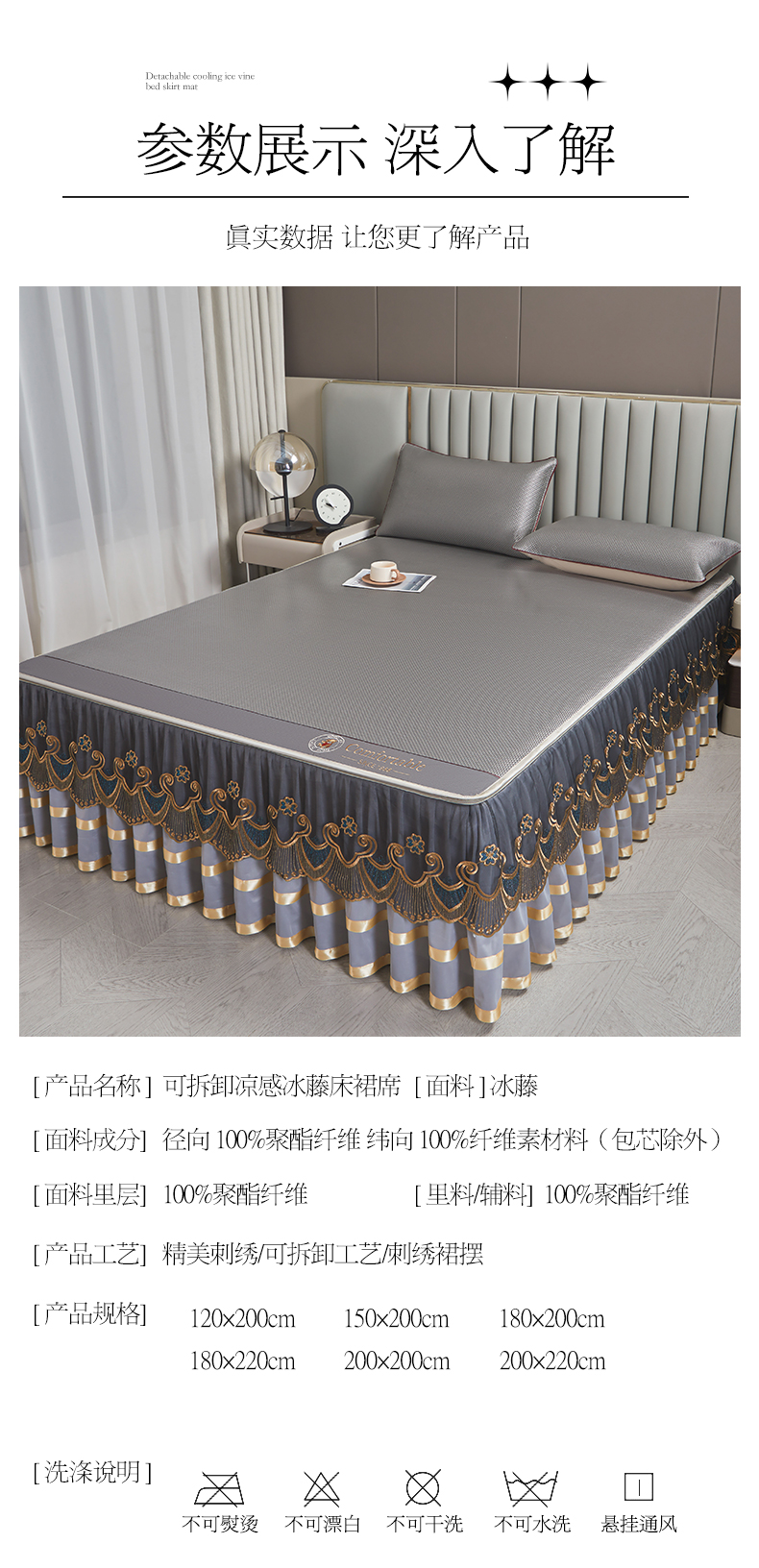 商品名称:情恒家纺 2025新款冰藤可拆卸床裙席三件套 皇朝 梦灰