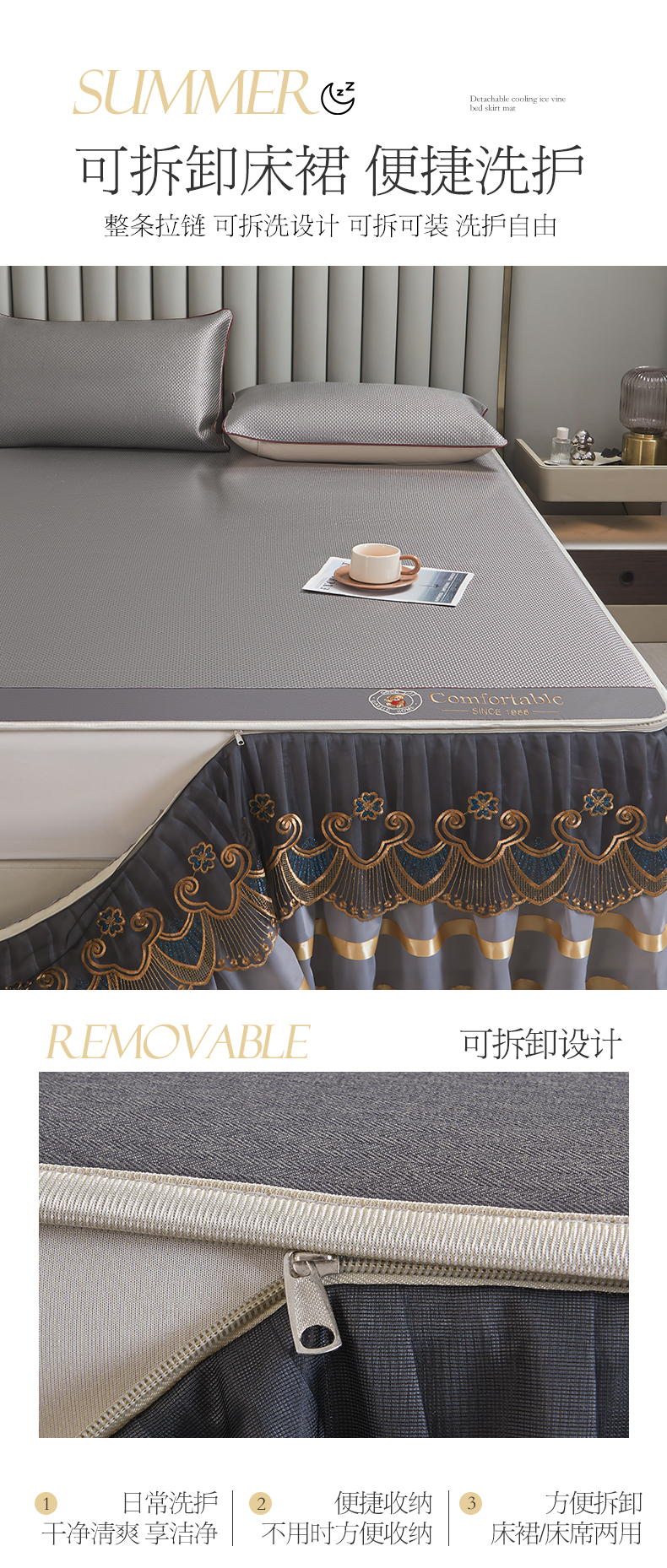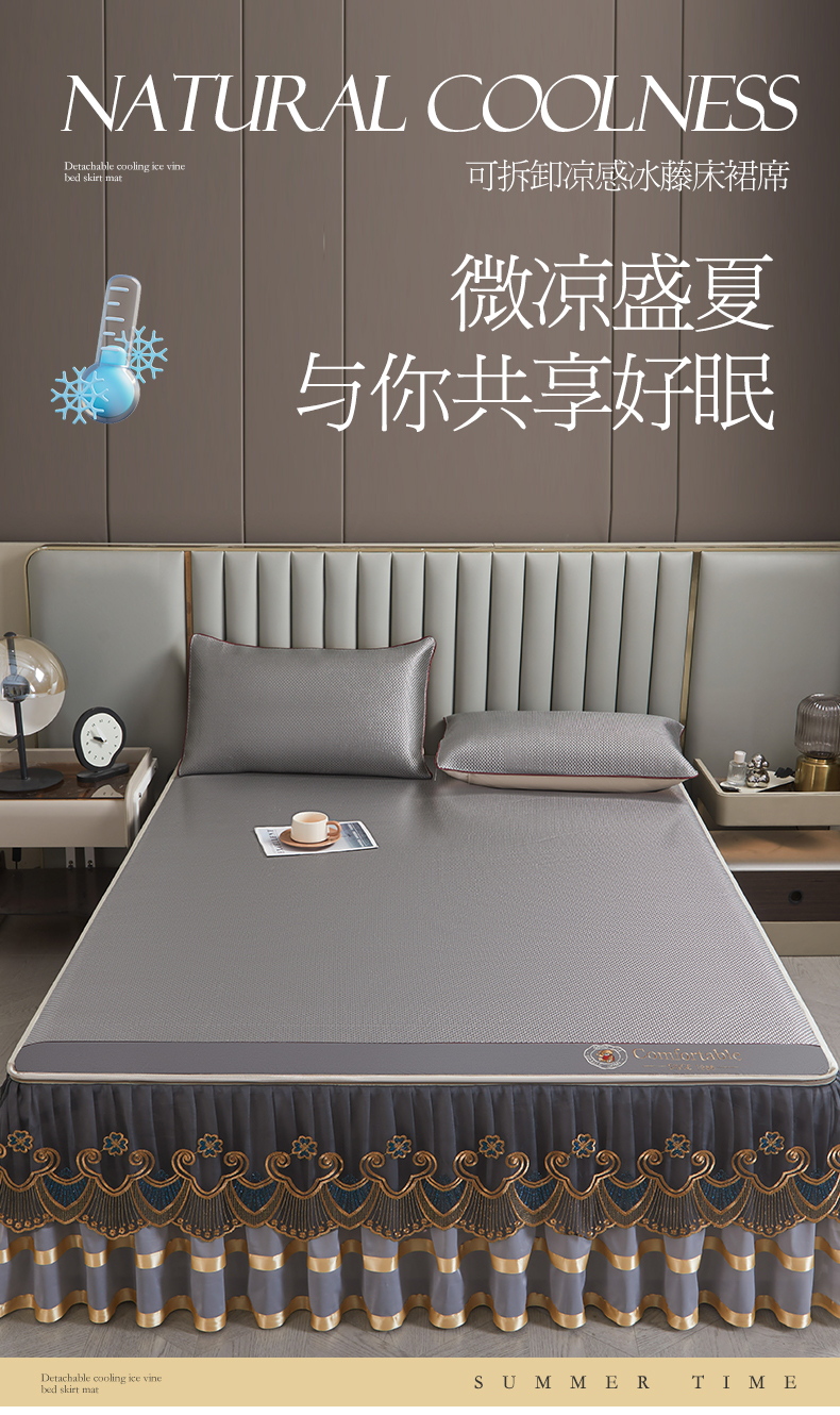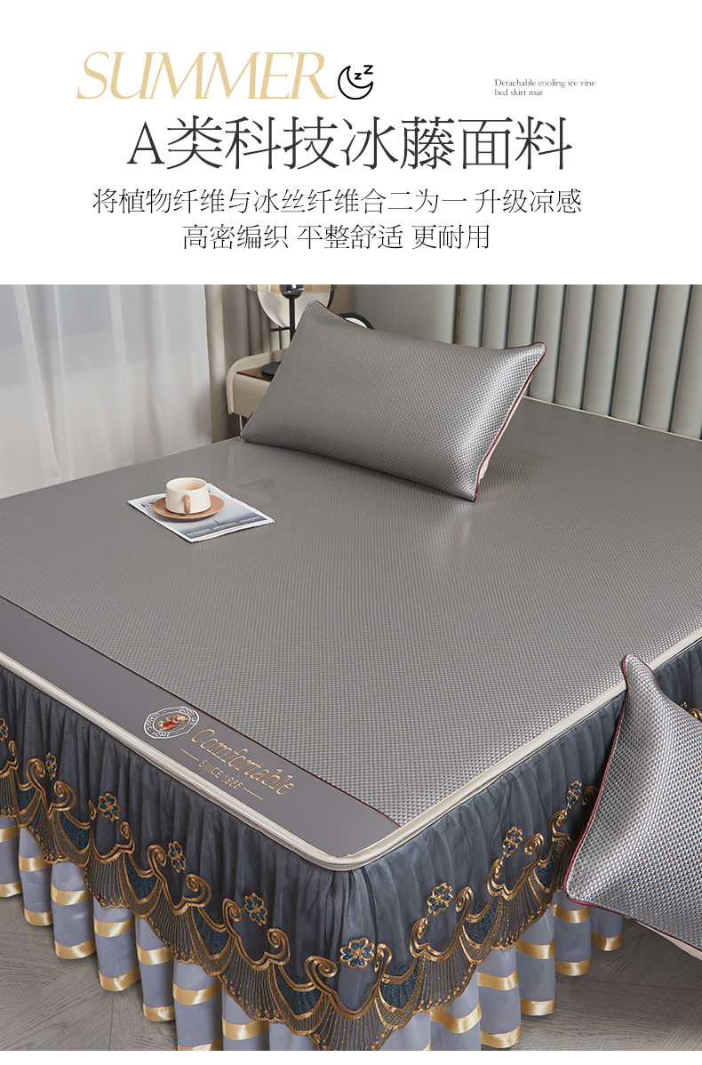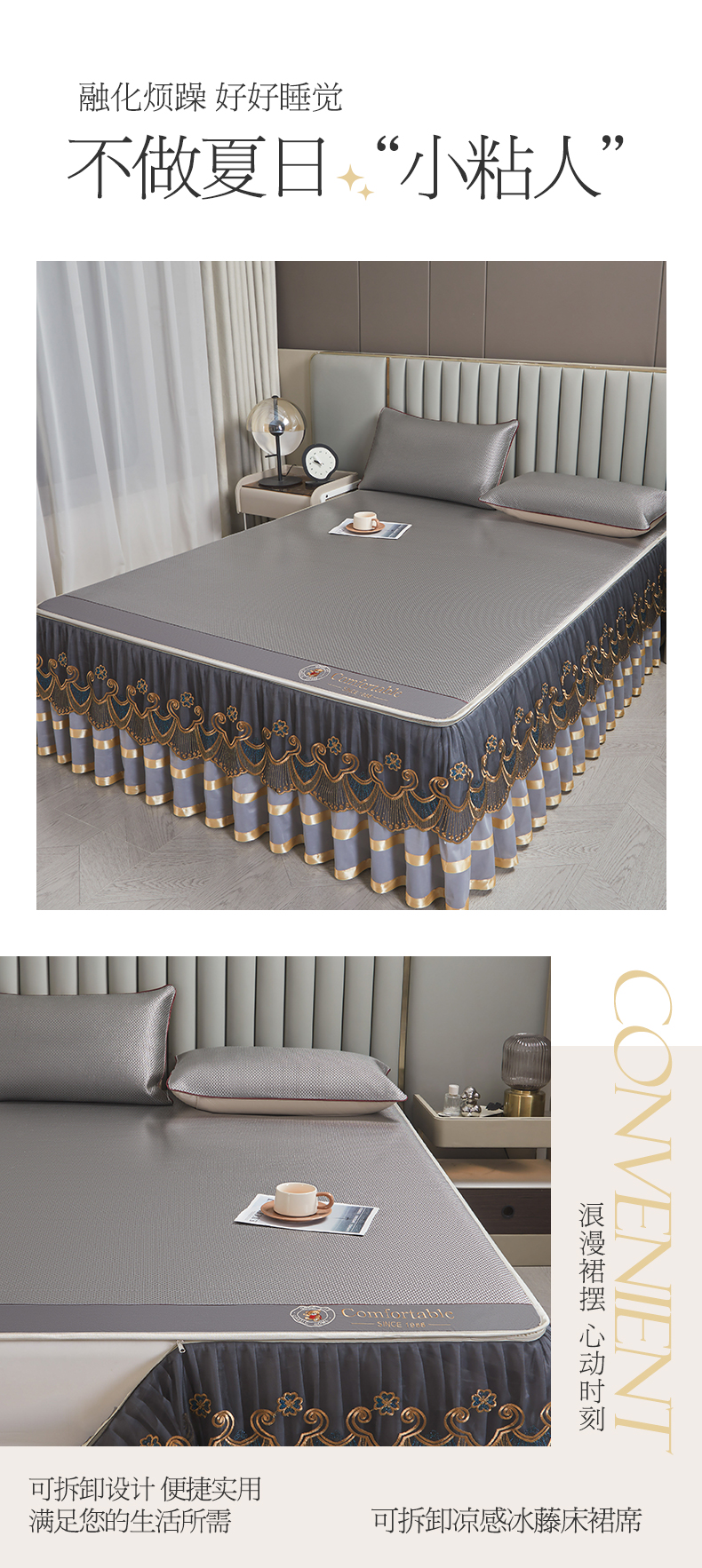 情恒家纺 2025新款冰藤可拆卸床裙席三件套 皇朝 梦灰