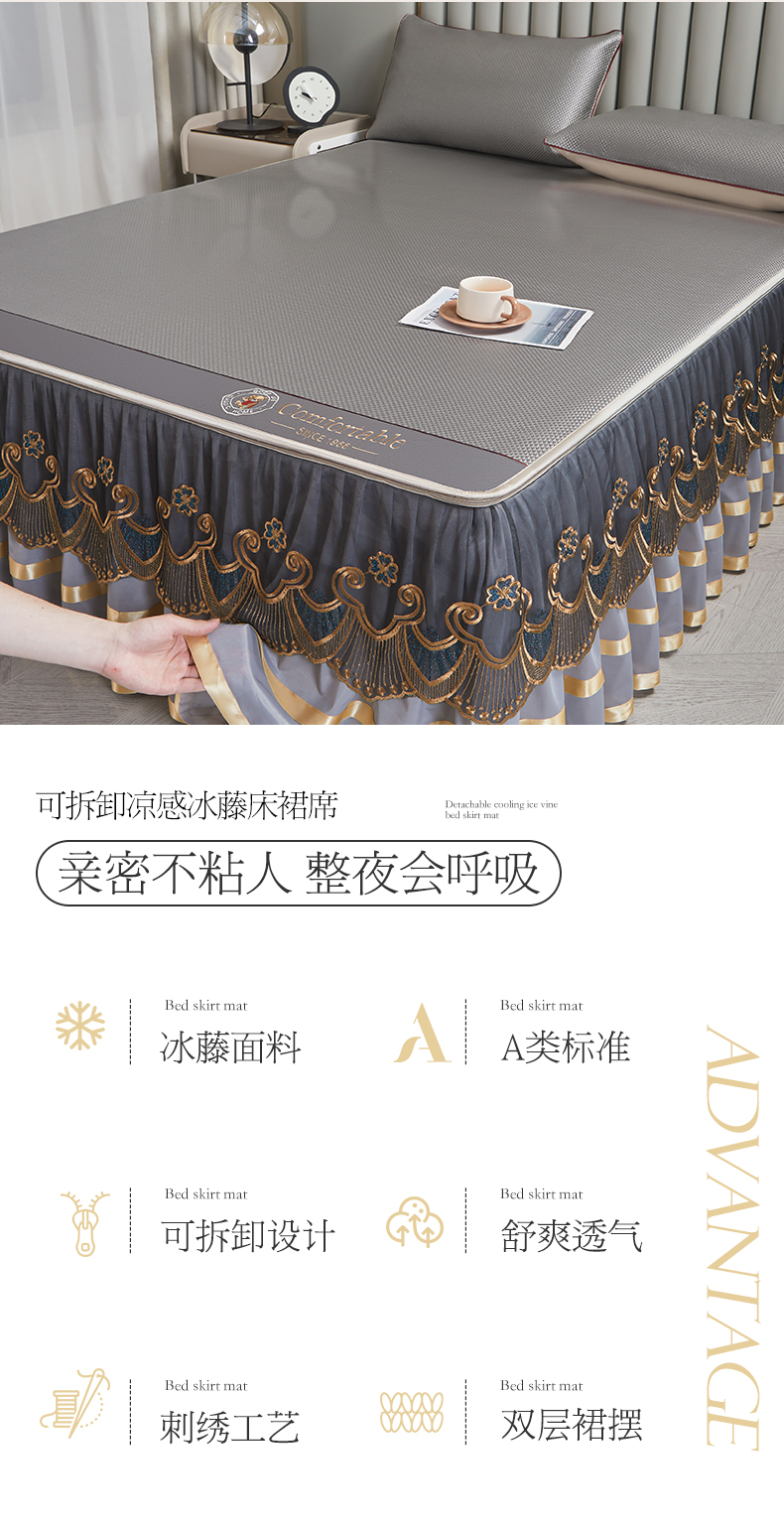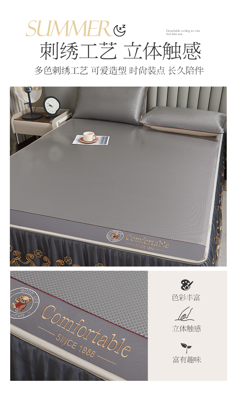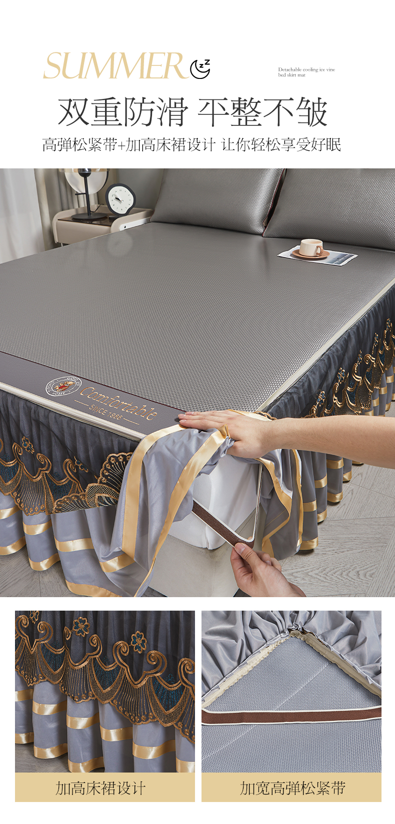 情恒家纺 2025新款冰藤可拆卸床裙席三件套 皇朝 梦灰