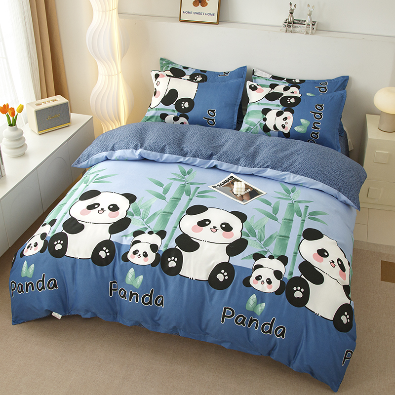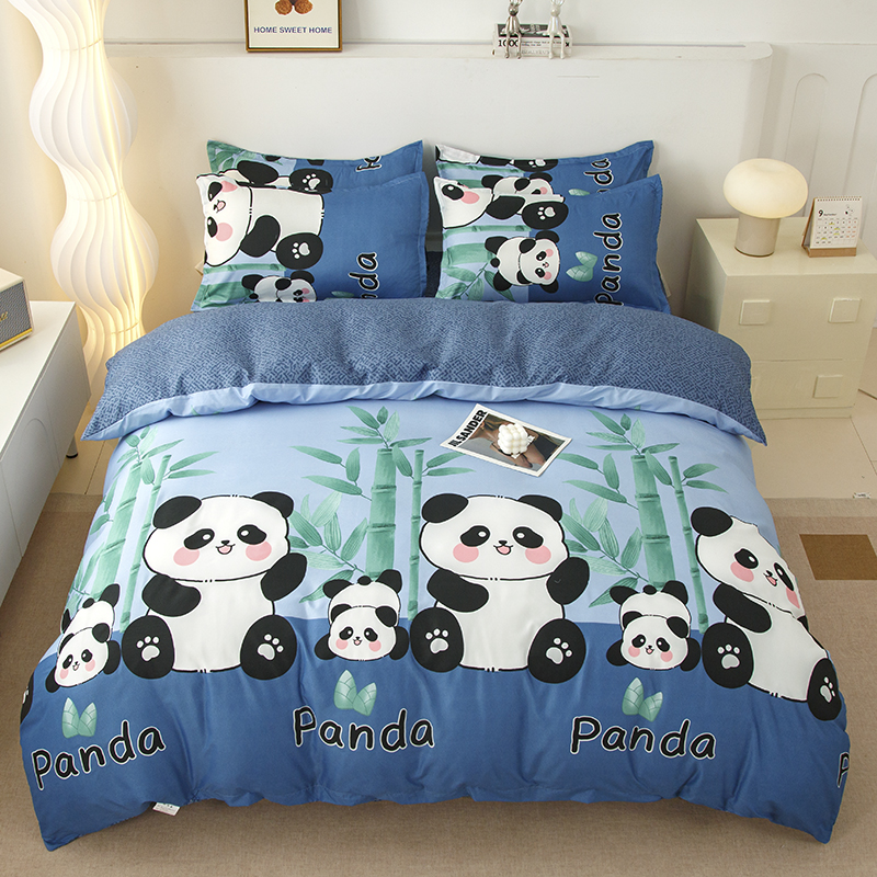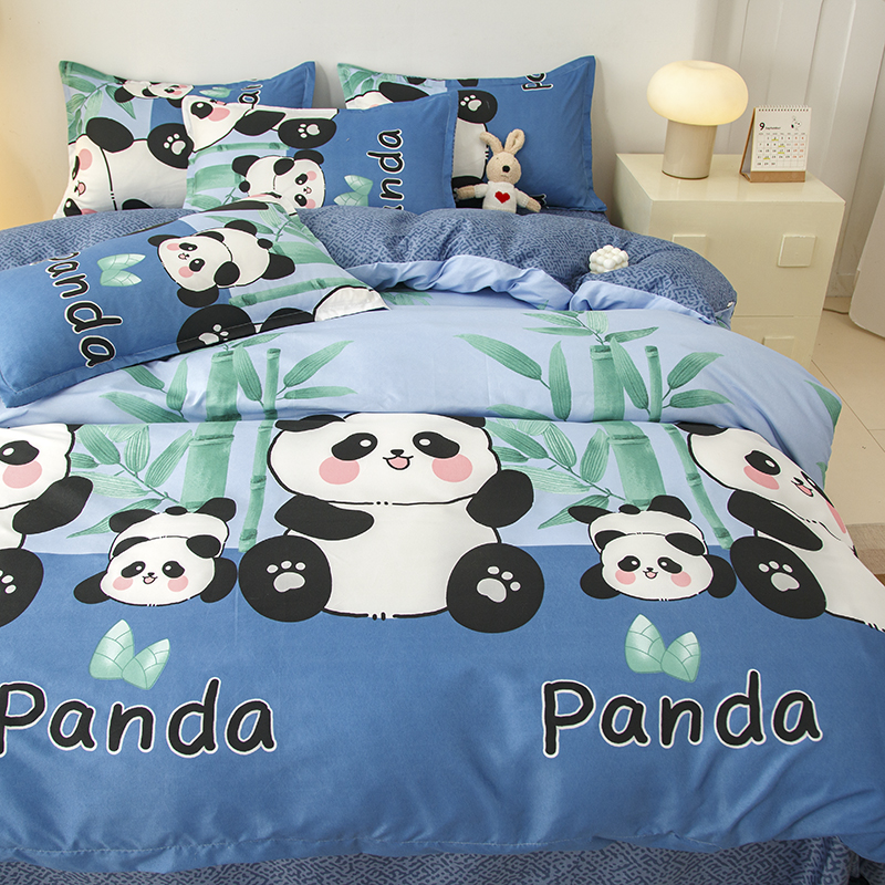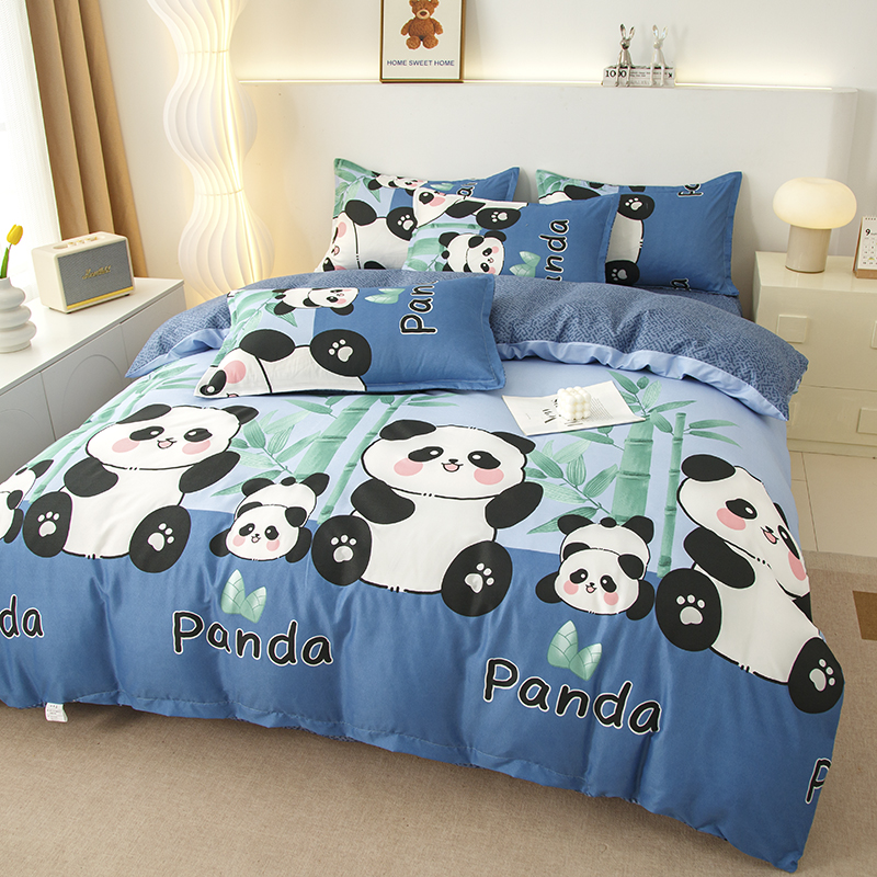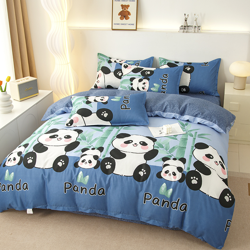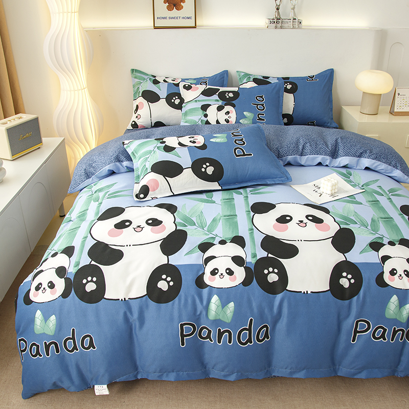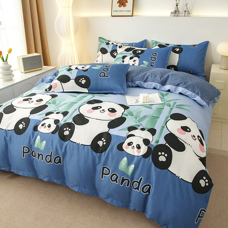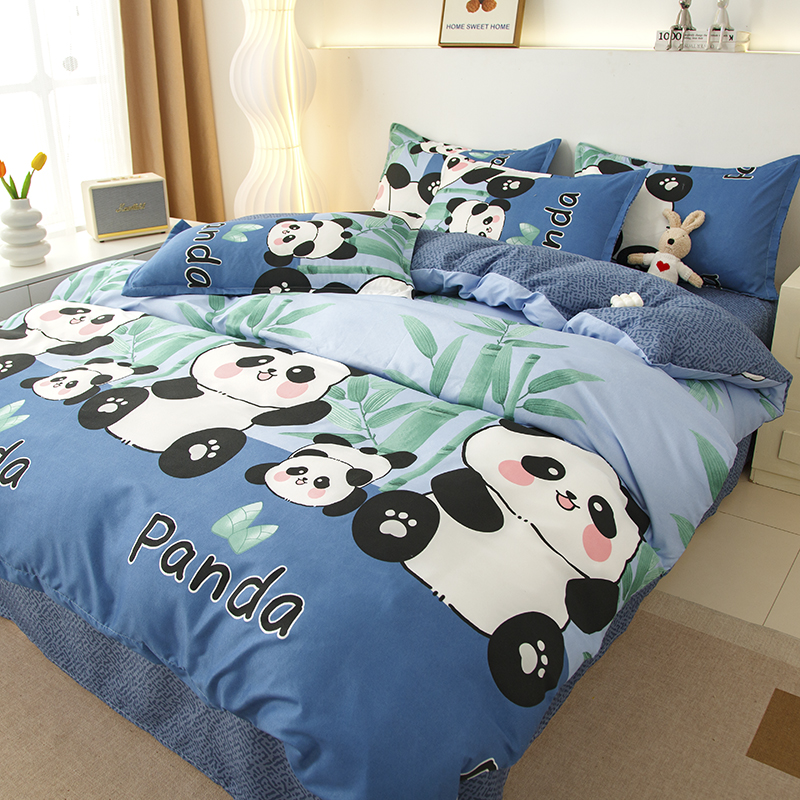 佑泽家纺 2025活性印花芦荟棉四件套 熊猫派对