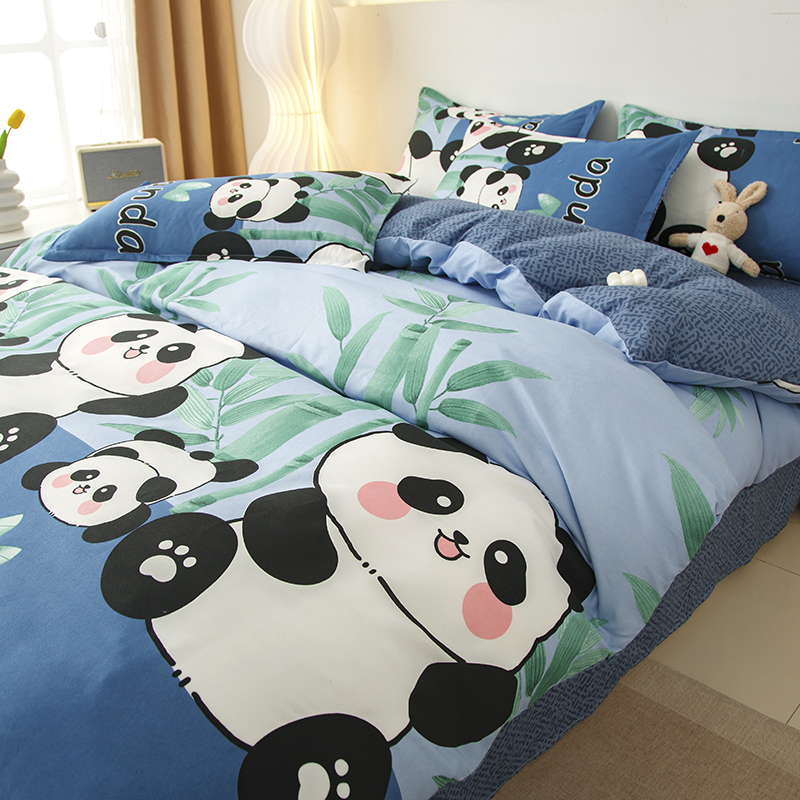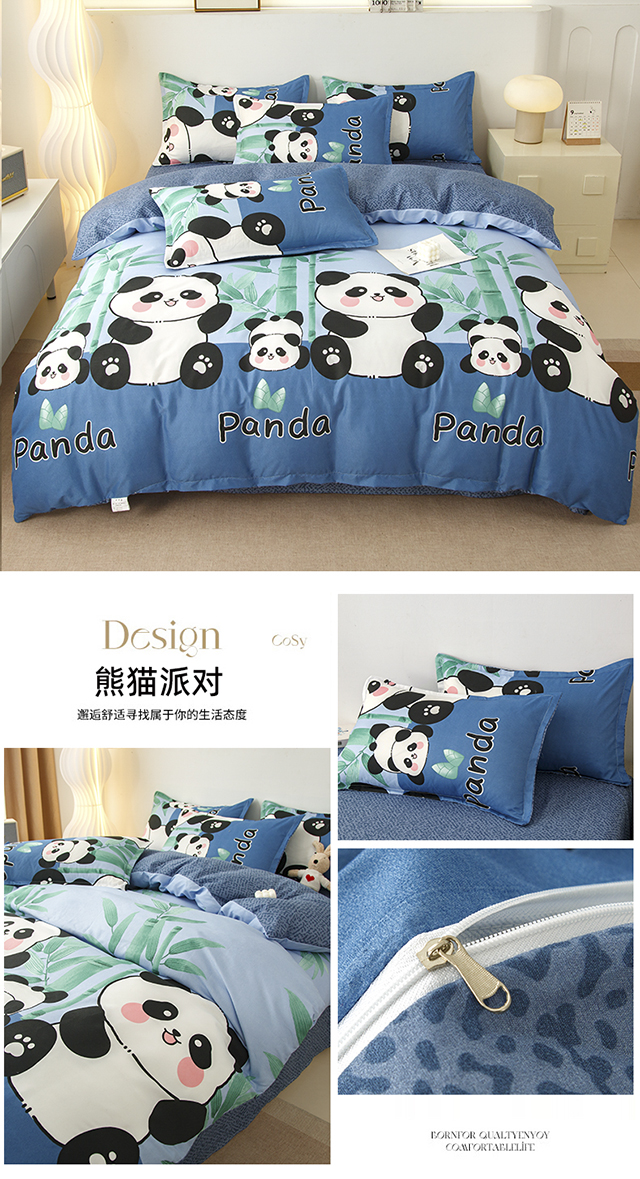 商品名称:佑泽家纺 2025活性印花芦荟棉四件套 熊猫派对
