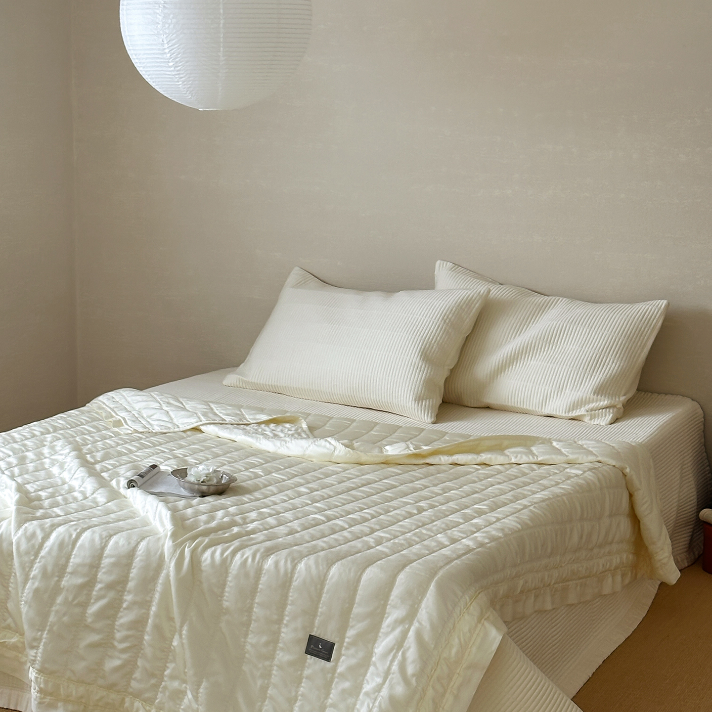 商品名称:汇庭 2025新款荷叶被自然床盖系列 荷叶粉(自然粉)