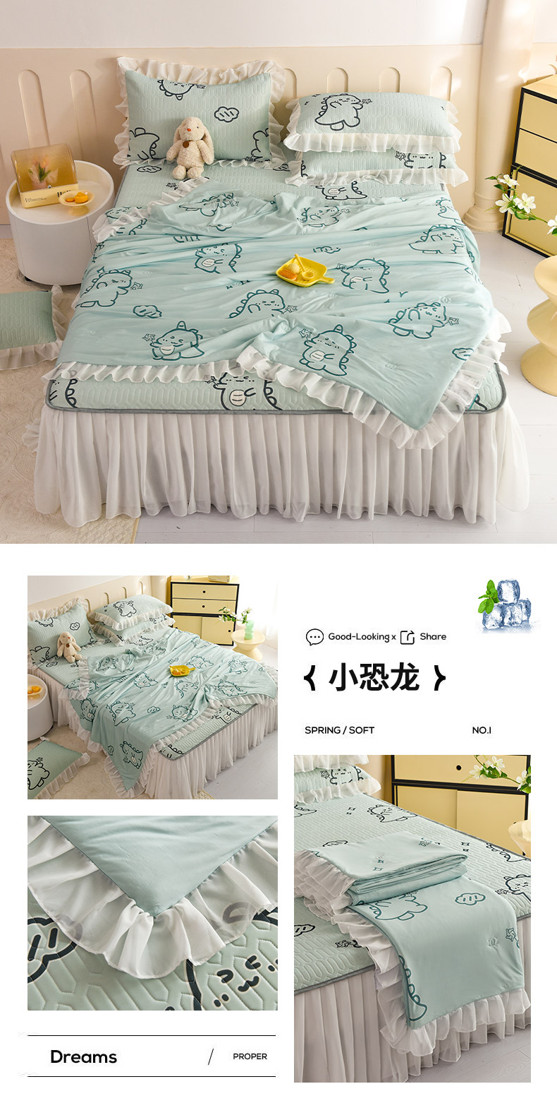 当前位置: 91家纺网 > 商品网购 > 床品套件 > 四件套 > 夏被四件套 > 悦织湾家纺 2025新款A类凉感丝床裙款乳胶凉席席子夏被夏凉被空调被四件套 蝴蝶波点