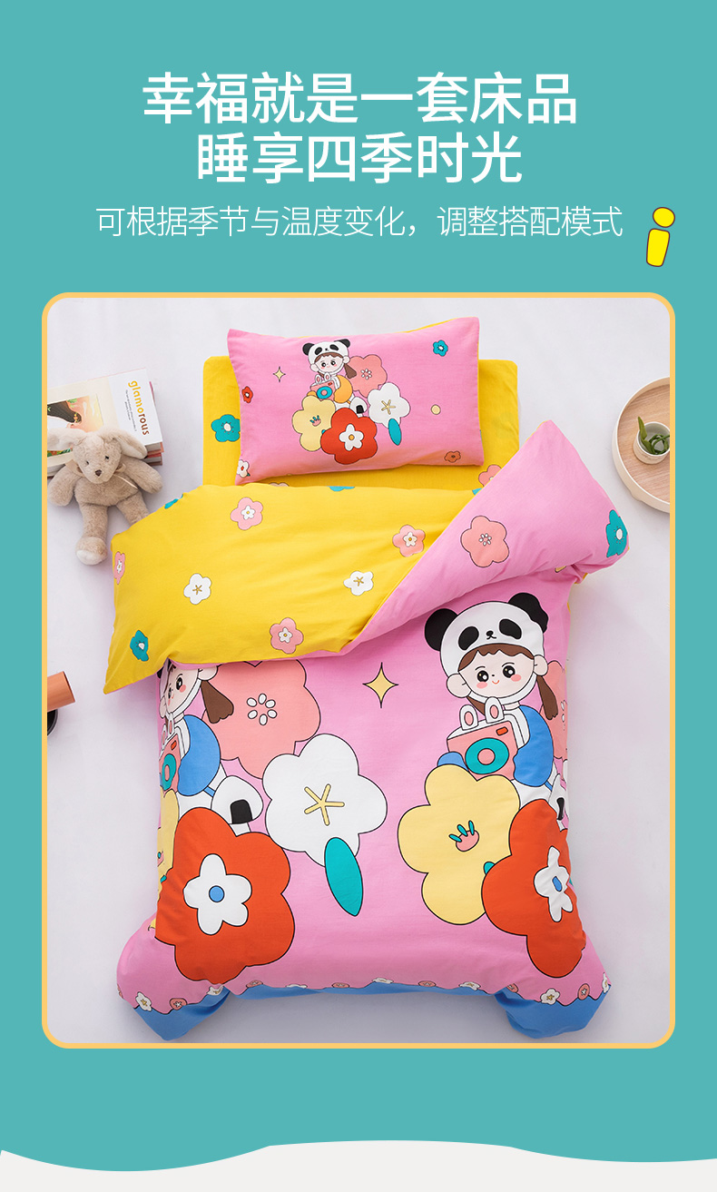 当前位置: 91家纺网 > 商品网购 > 床品套件 > 四件套 > 其它四件套 > 嗨皮宝贝 2025新款全棉纯棉13372幼儿园三件套多件套 熊猫小希-粉