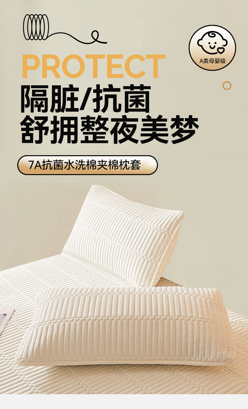 商品名称:雯豆家纺 2025新款简爱防水款夹棉加厚枕套单只一对装水洗棉枕套 简爱-月光白