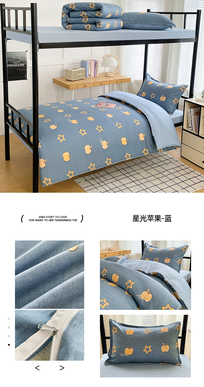 当前位置: 91家纺网 > 商品网购 > 床品套件 > 三件套 > 锦润 2025新款印花12868全棉学生宿舍三件套纯棉六件套星光苹果-蓝