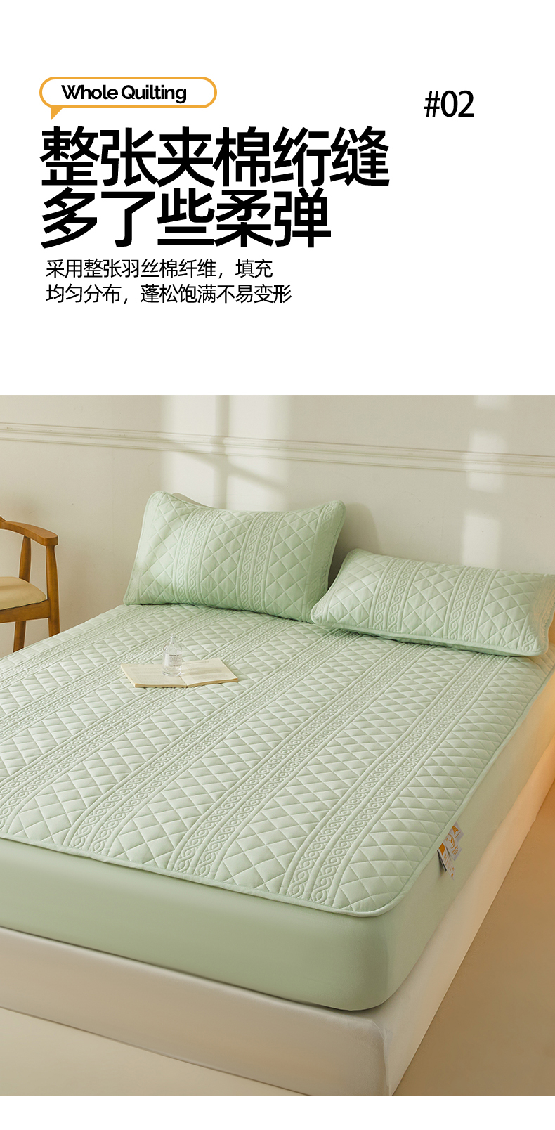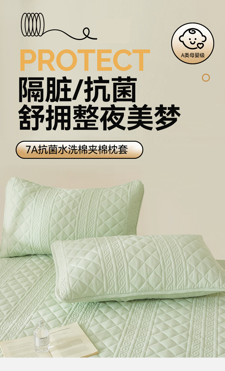 商品名称:雯豆家纺 2025新款简爱防水款夹棉加厚枕套单只一对装水洗棉枕套 梵可-清雅绿