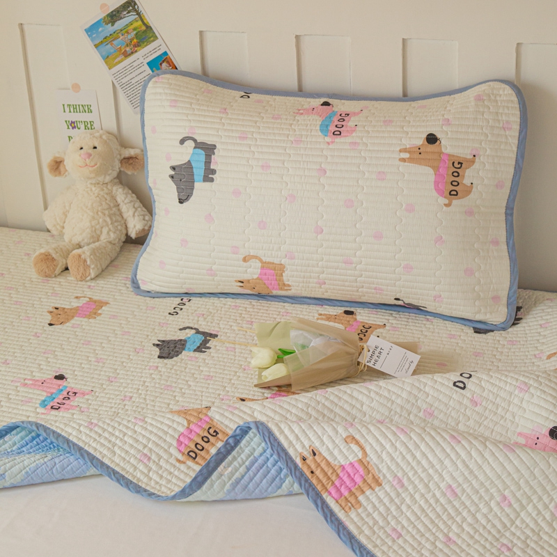 茉夕家纺 2025新款双面纯棉学生宿舍床盖系列 狗狗立大功