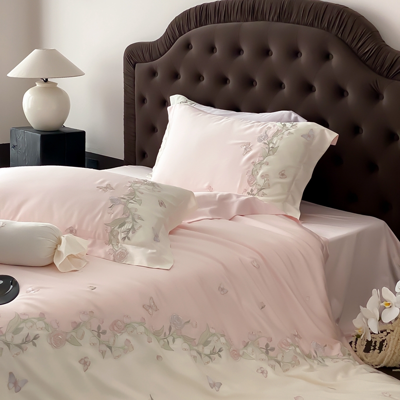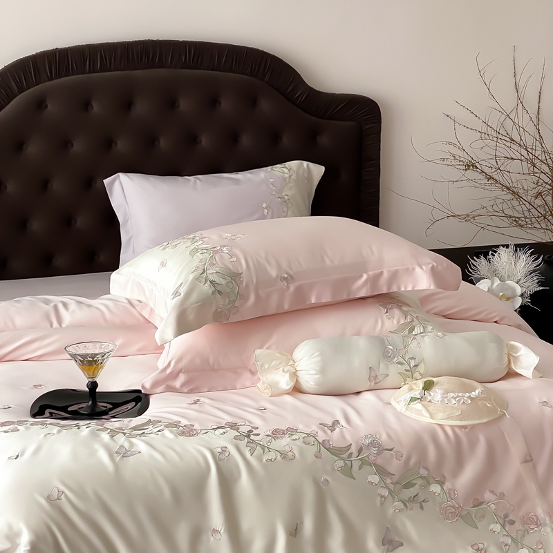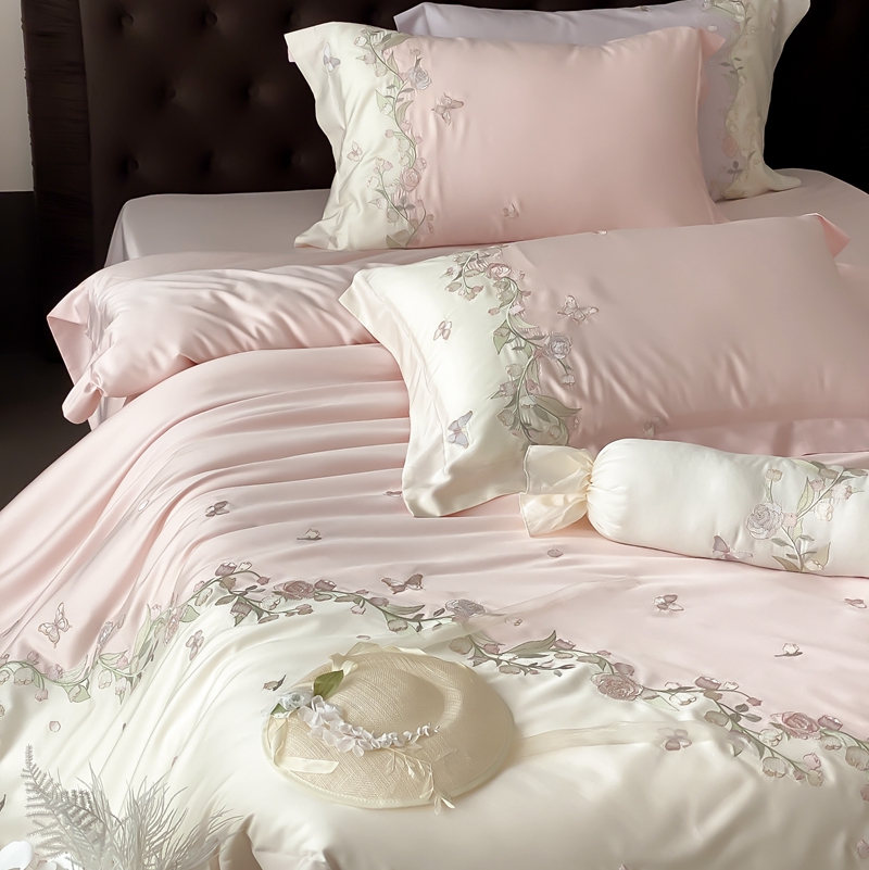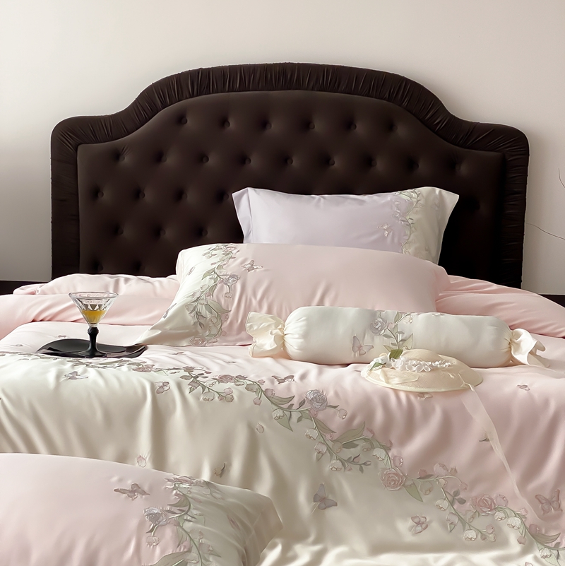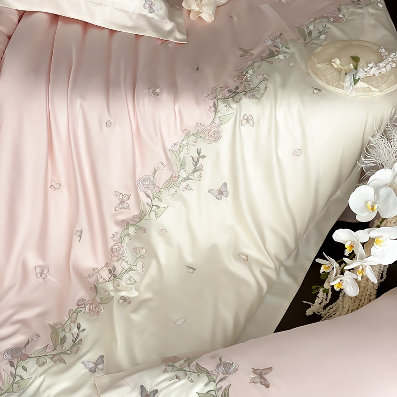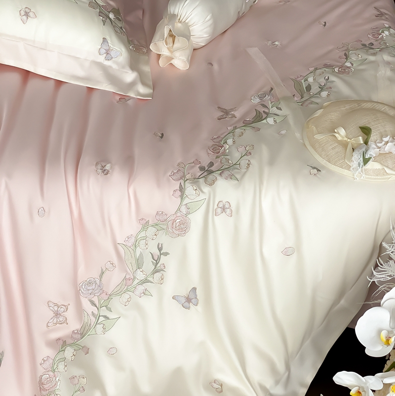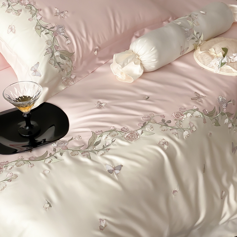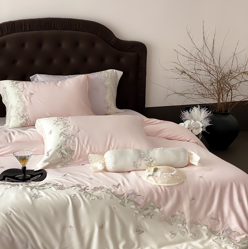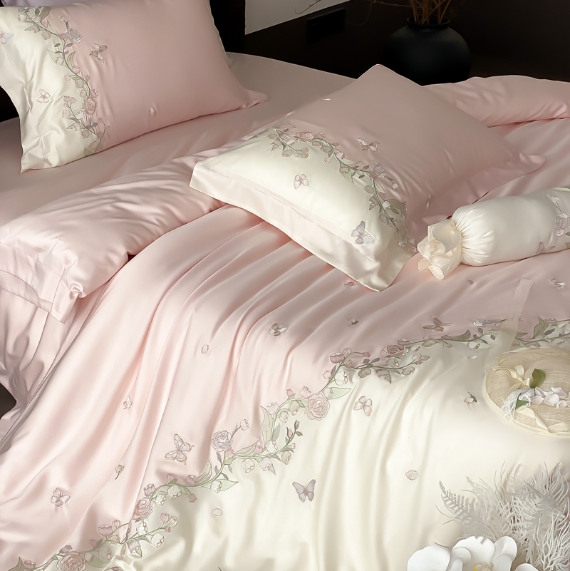 佳汐蓝家纺 2025春夏新款铃兰花颂 百支贡缎 四件套 铃兰花颂·奶芙粉