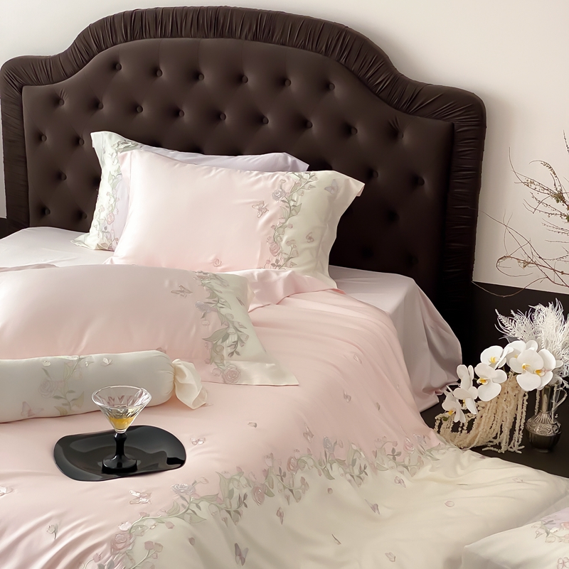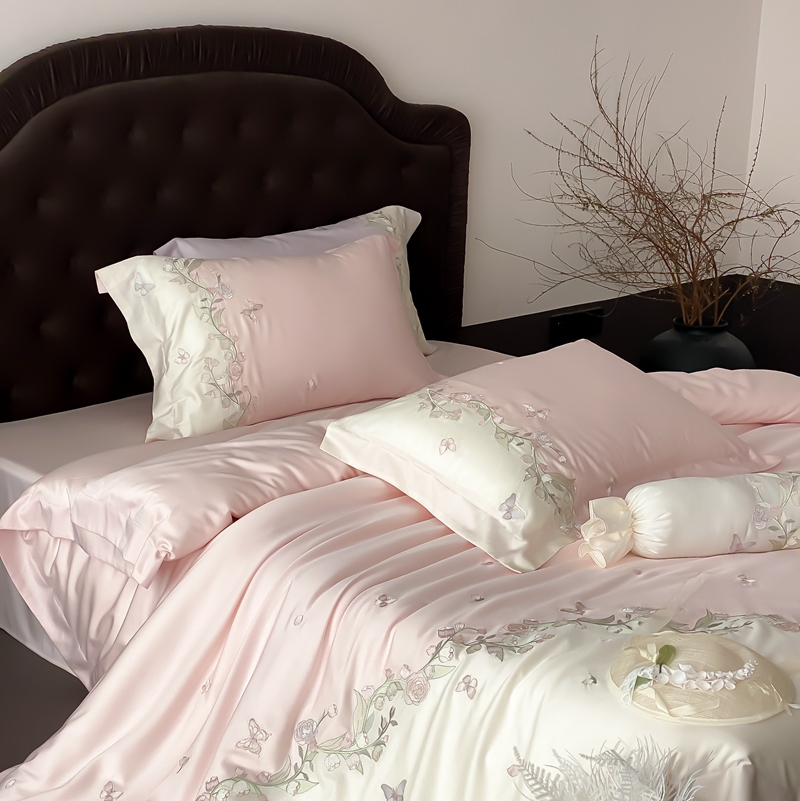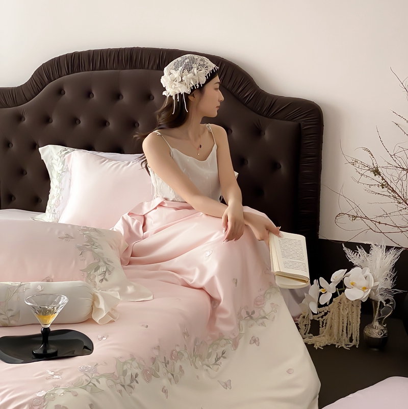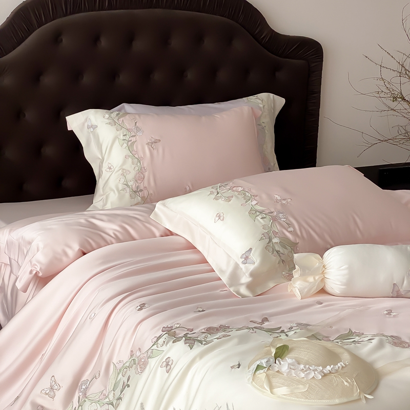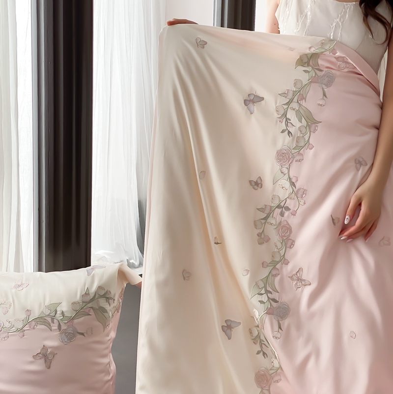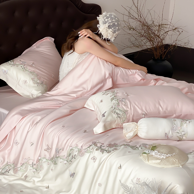 (总)佳汐蓝家纺 2025春夏新款天丝棉蝶舞繁花绣花天丝四件套,蝶舞繁花·粉,蝶舞繁花·蓝