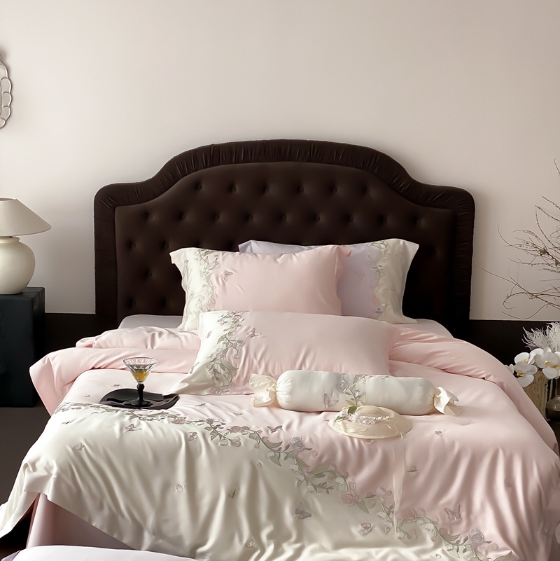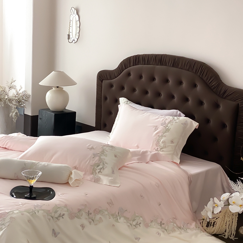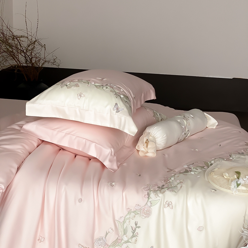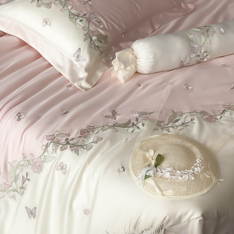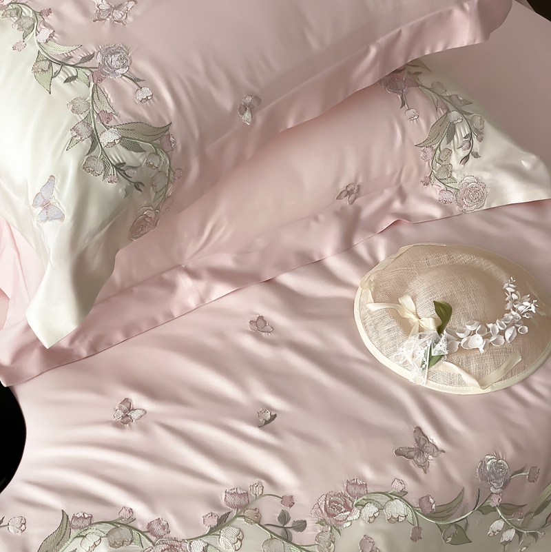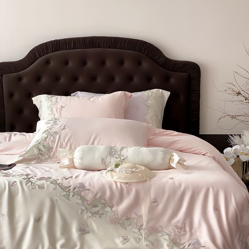 (总)佳汐蓝家纺 2025春夏新款天丝棉蝶舞繁花绣花天丝四件套,蝶舞繁花·粉,蝶舞繁花·蓝