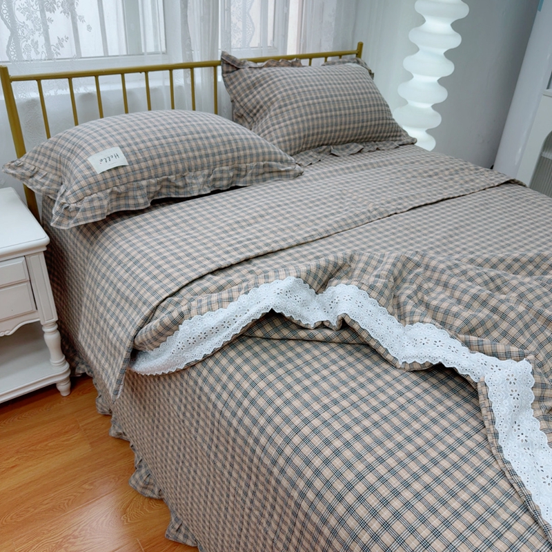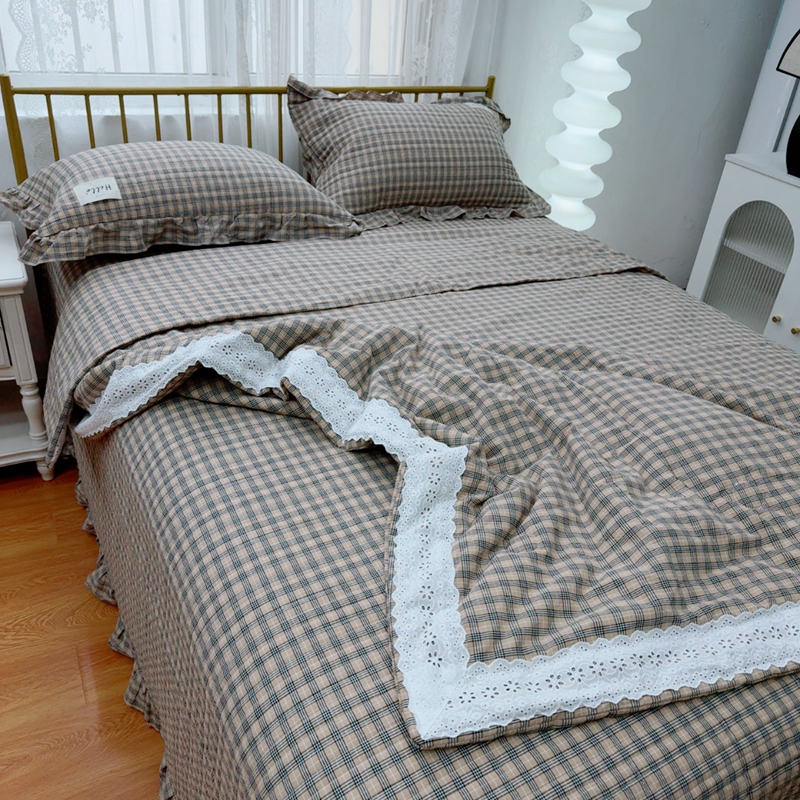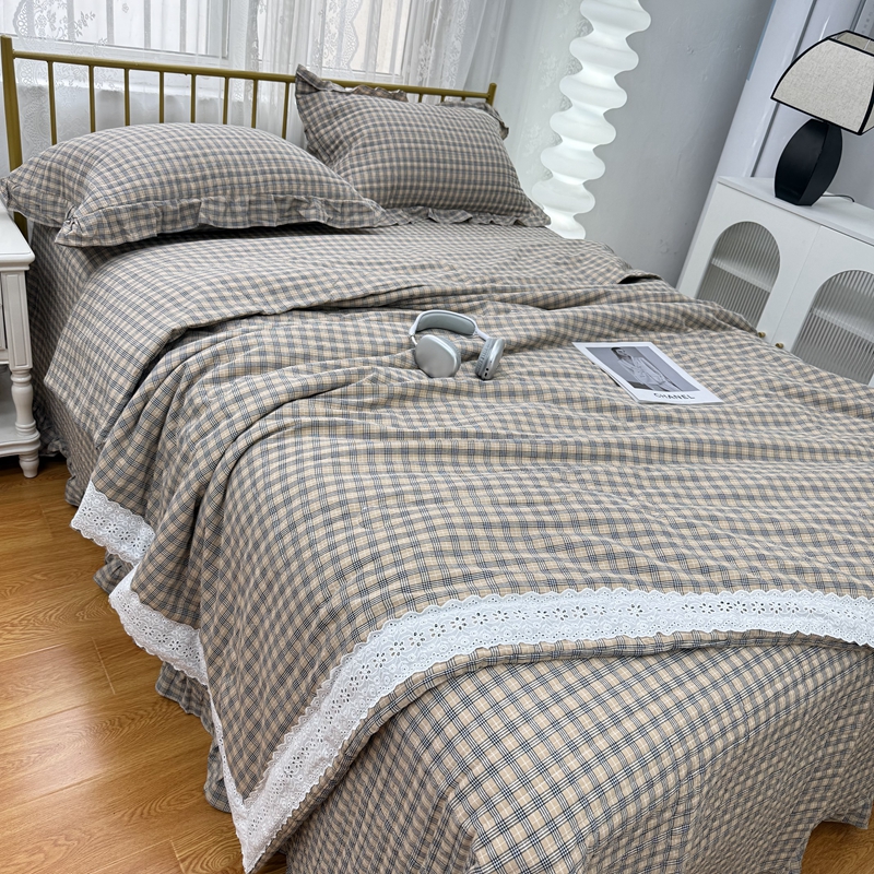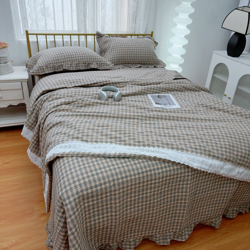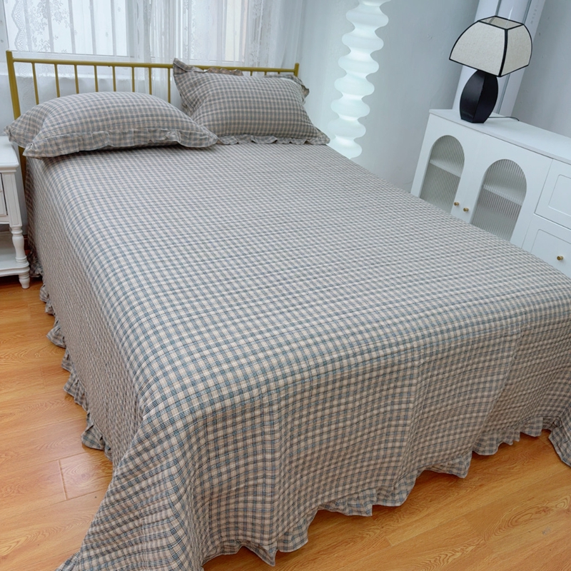 暖居 2025新款全棉水洗棉床盖三件套可配同款被套同款多功能夏被四季通用 经典格子