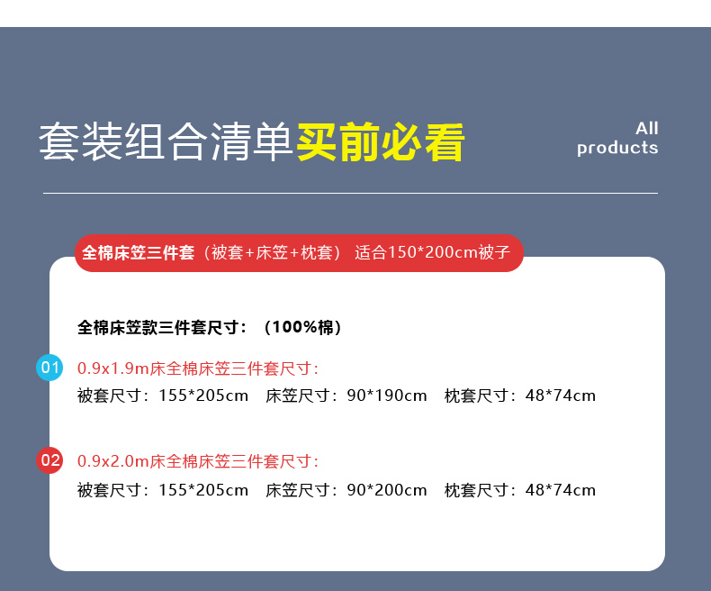 【床笠款】90x200cm三件套+6斤棉花被五件套 | ¥165.00 |
