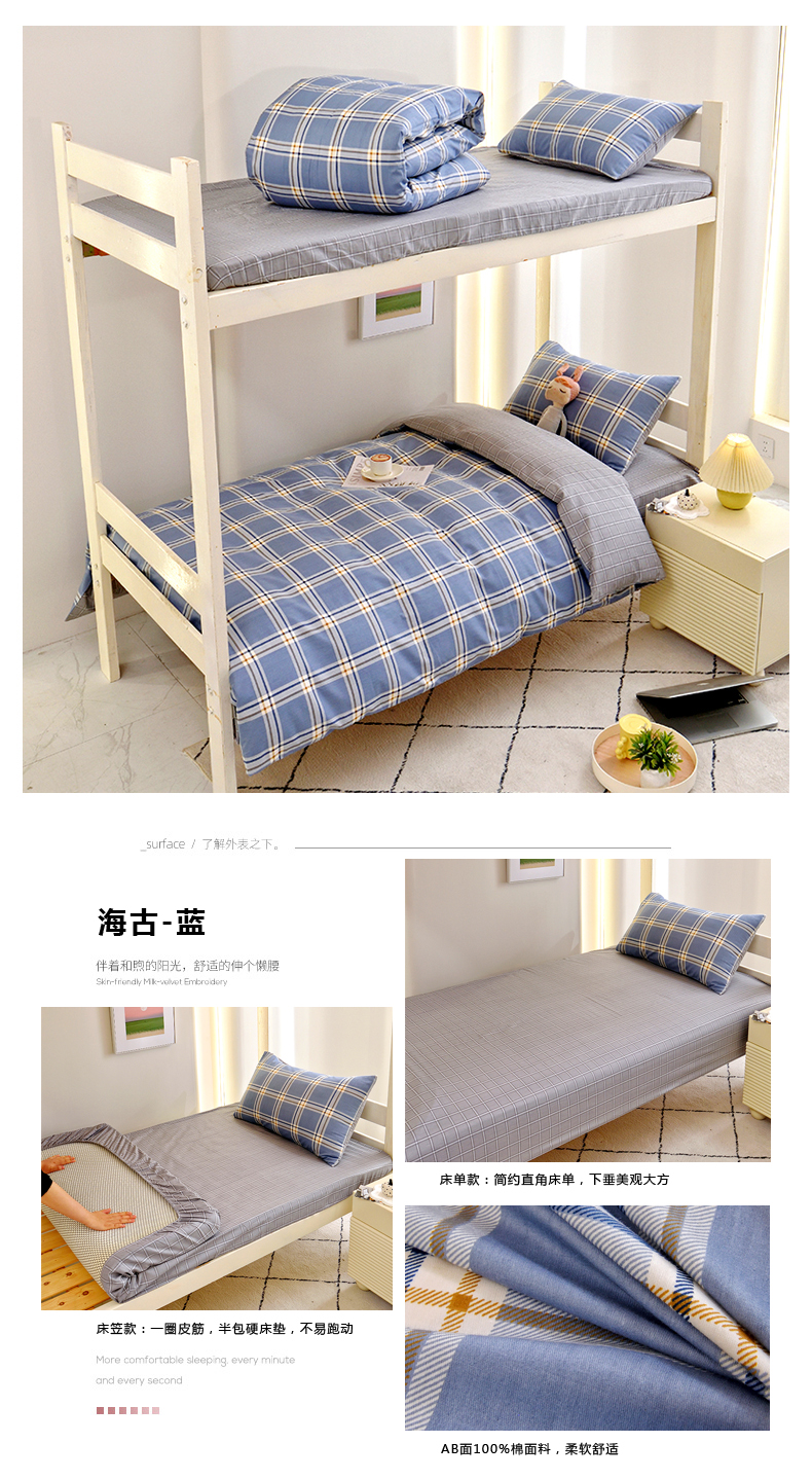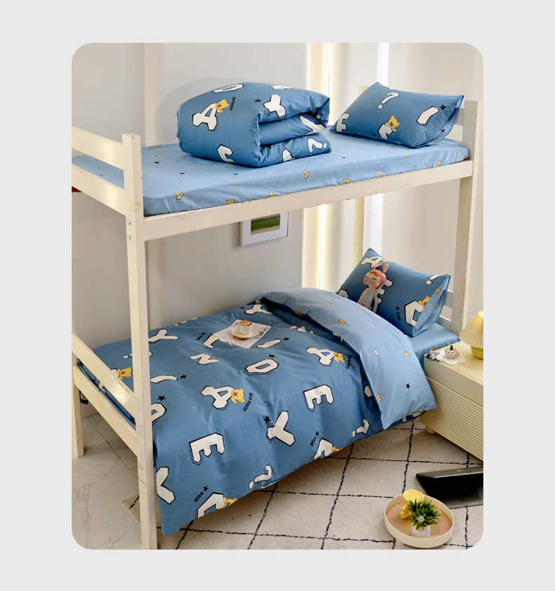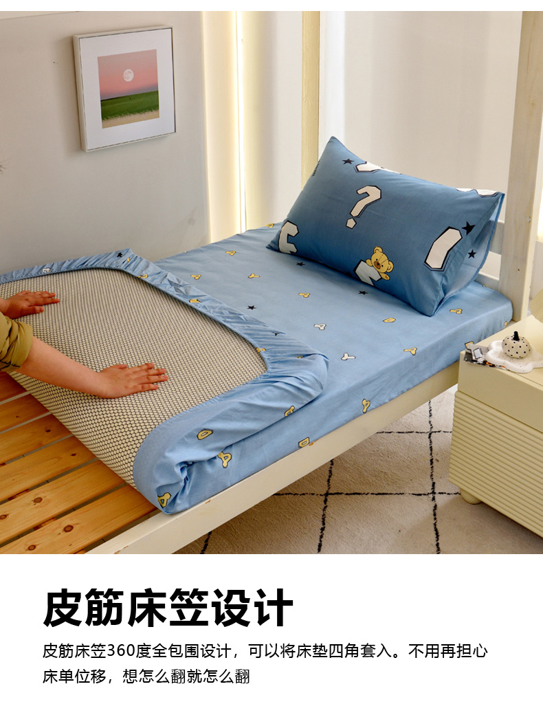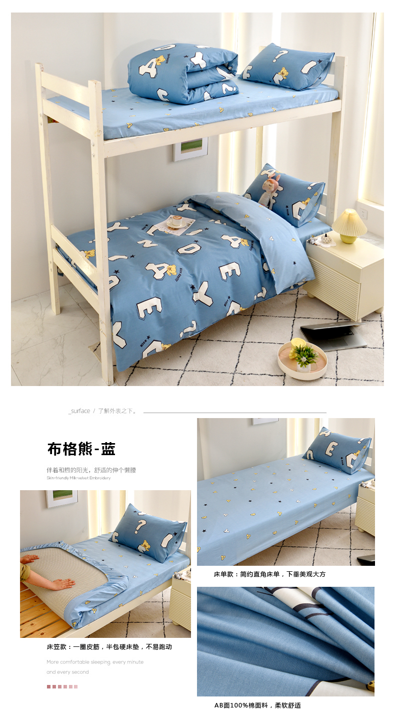 当前位置: 91家纺网 > 商品网购 > 床品套件 > 三件套 > 水妙家纺 2025年新款A类全棉纯棉学生宿舍上下铺床笠六件套五件套 布格熊-蓝