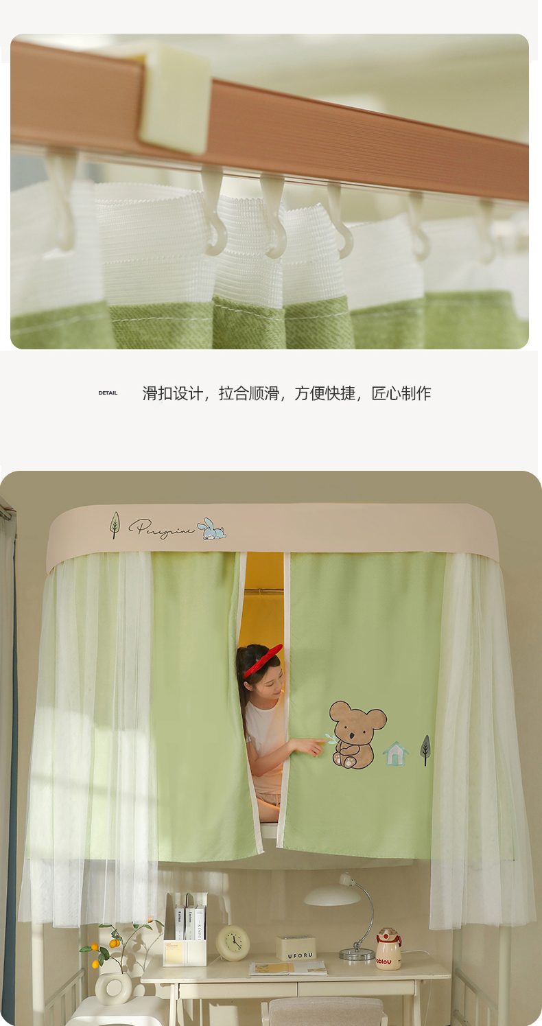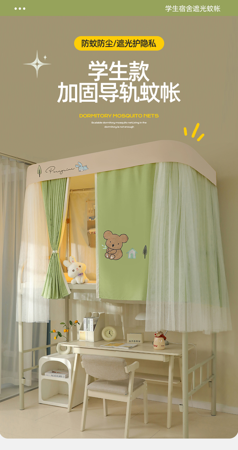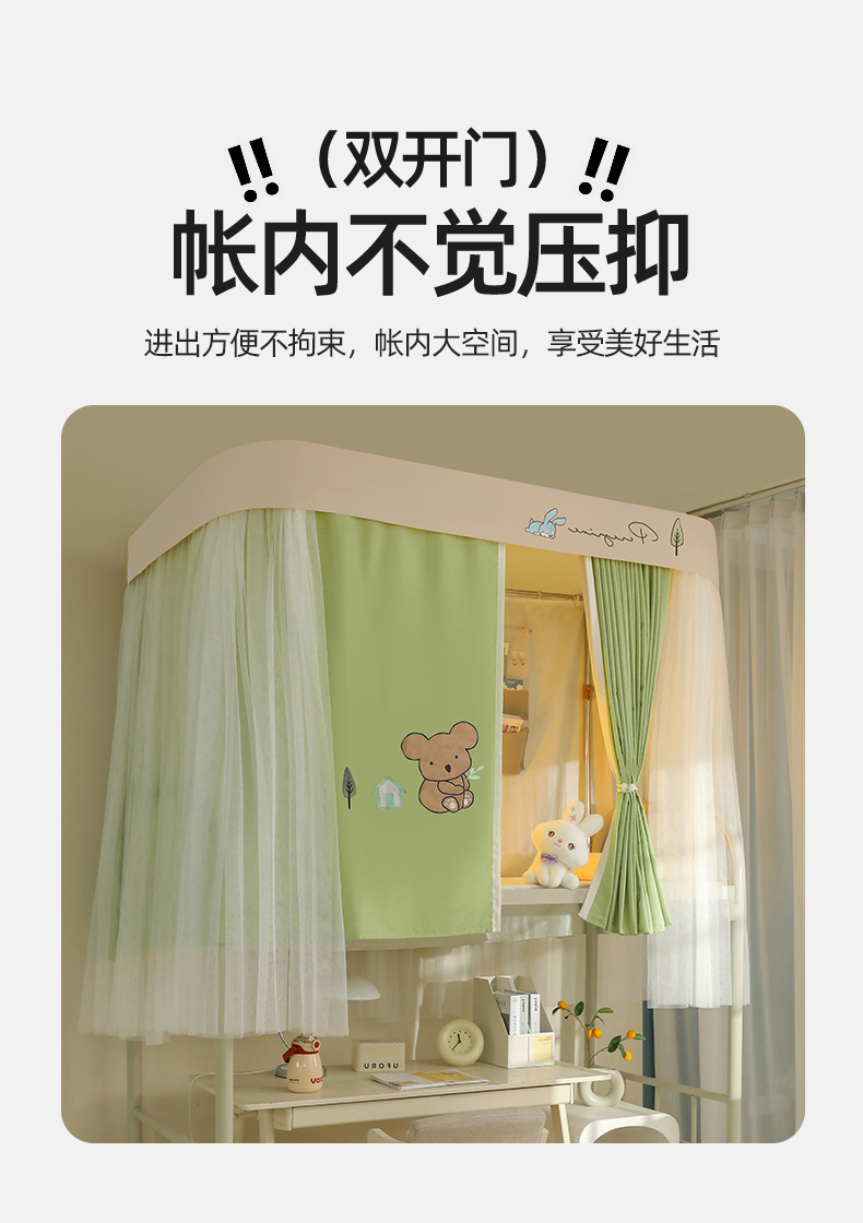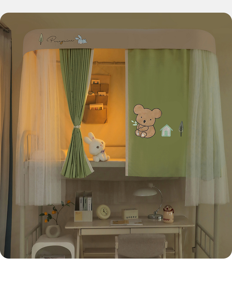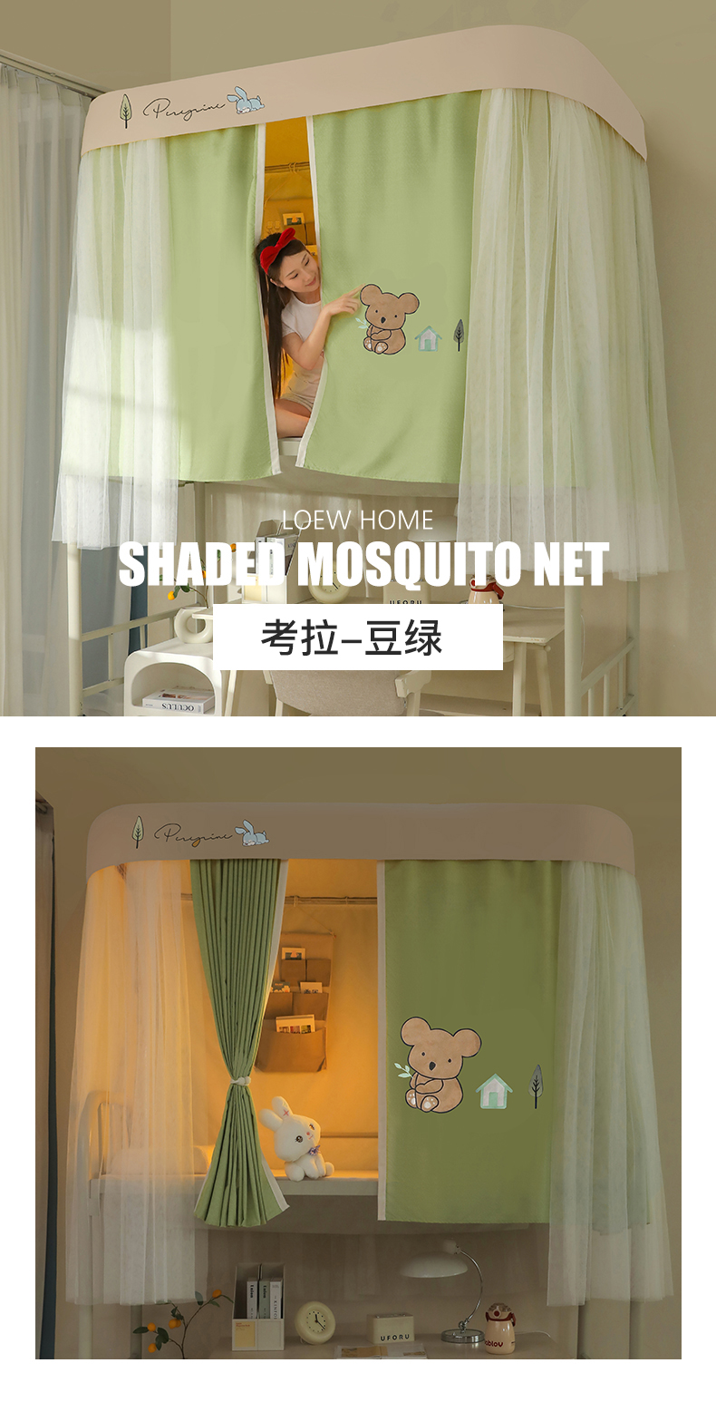 商品名称:都市缘蚊帐 2025新款学生宿舍导轨遮光床帘上下铺贴布卡通蚊帐0.8m 0.9m床 考拉-豆绿