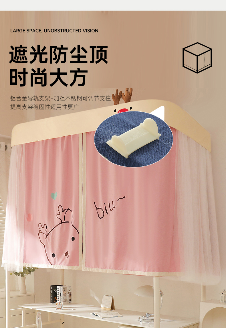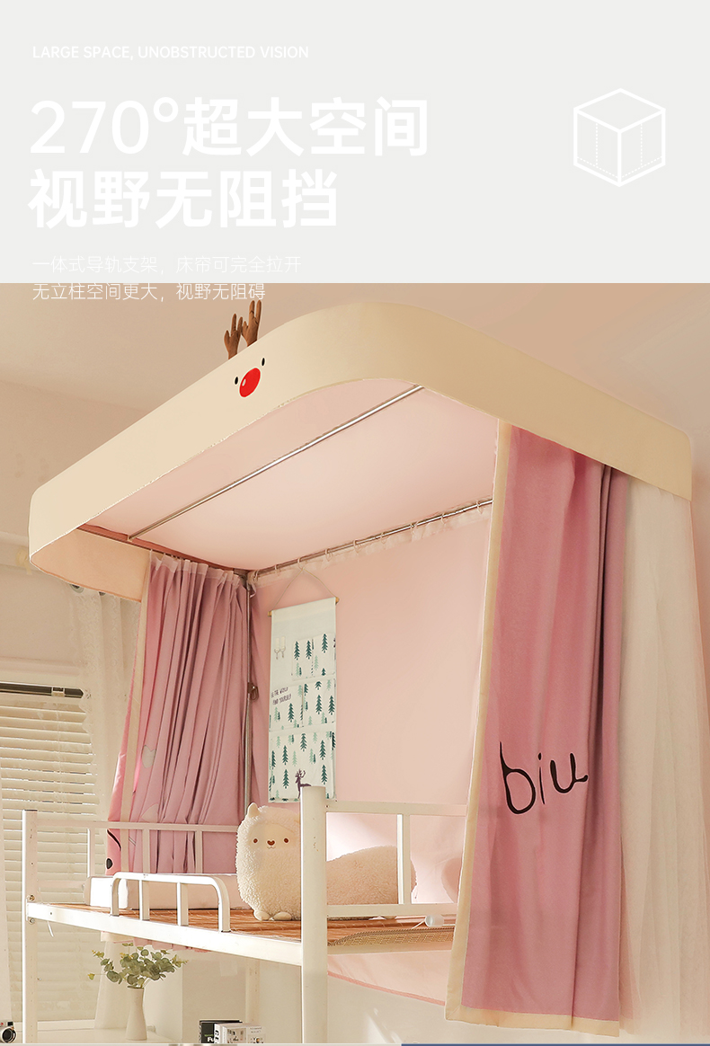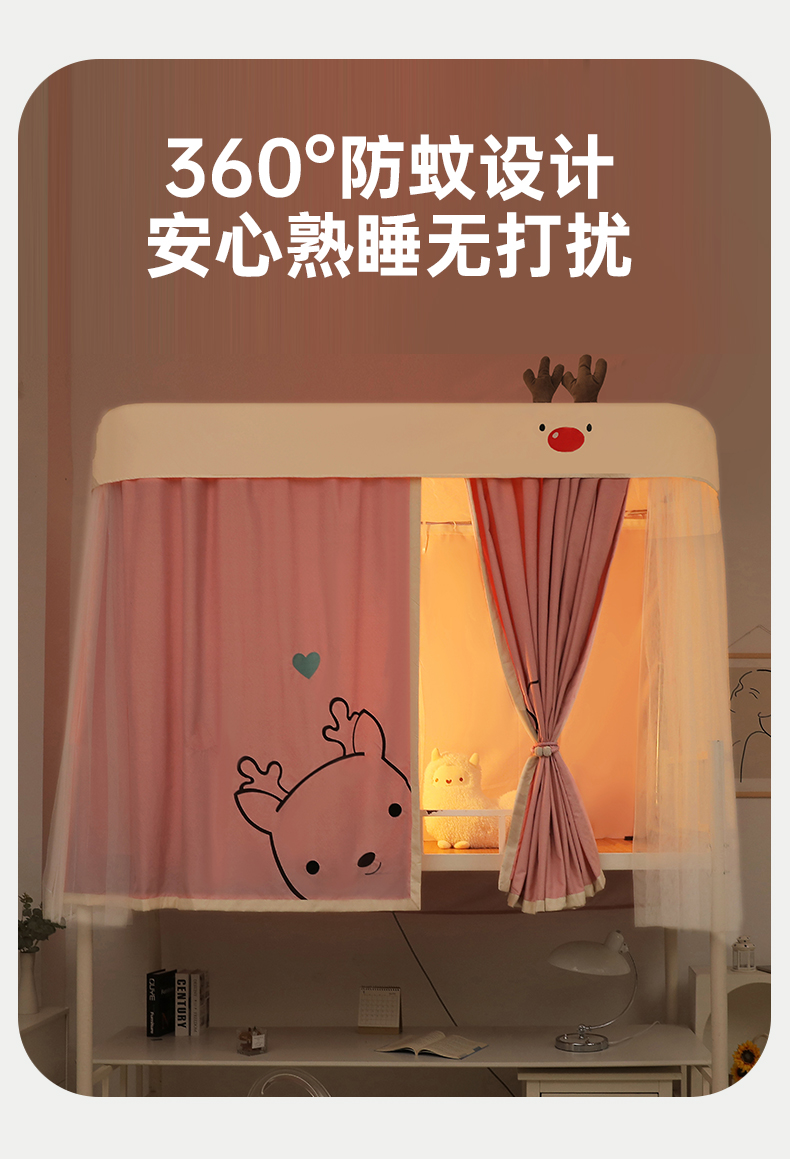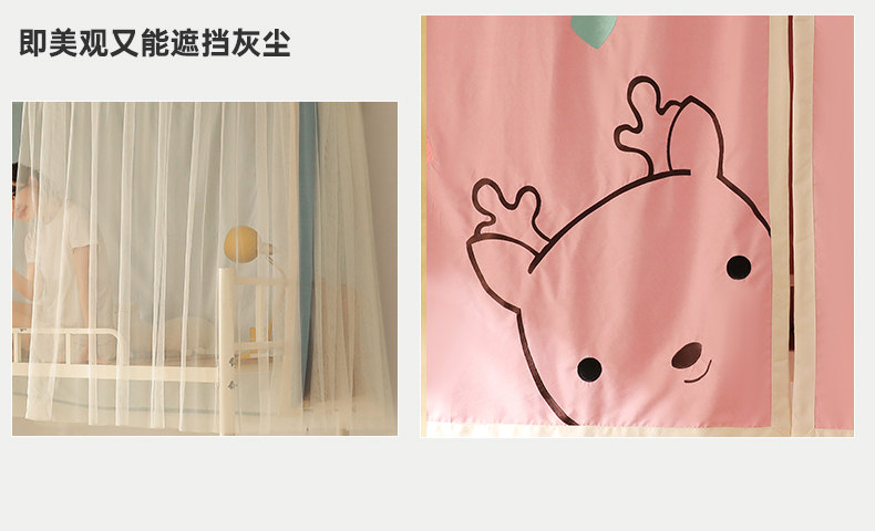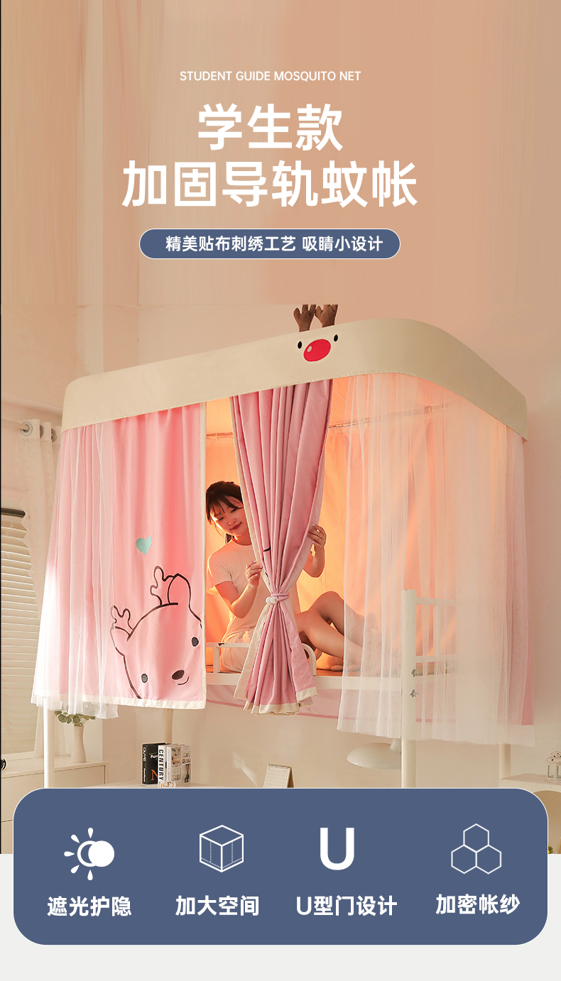 商品名称:都市缘蚊帐 2025新款学生宿舍导轨遮光床帘上下铺贴布卡通蚊帐0.8m 0.9m床 小鹿-粉
