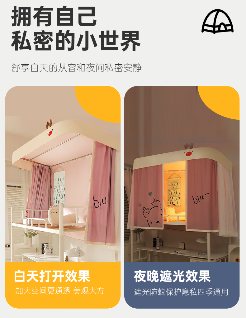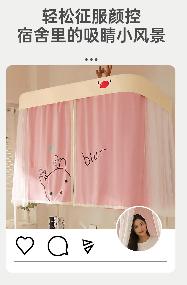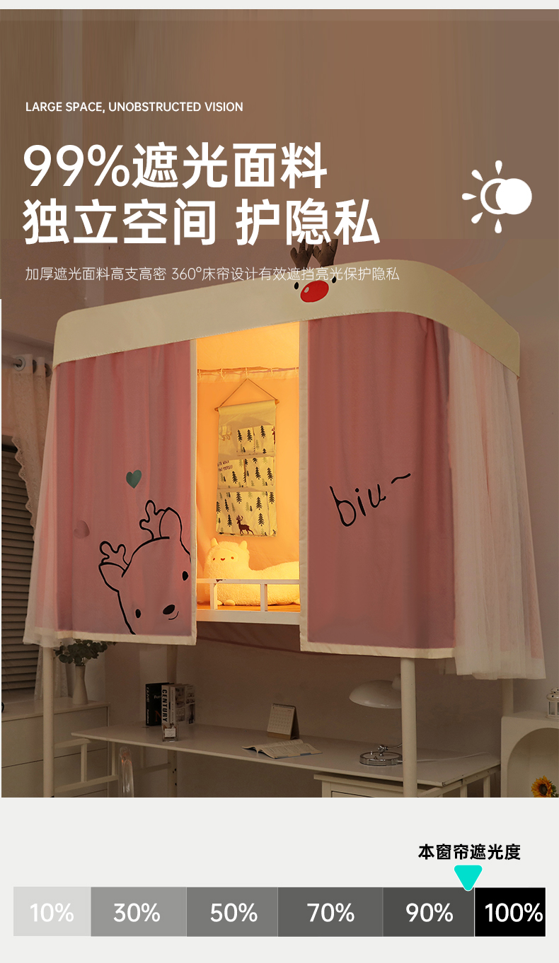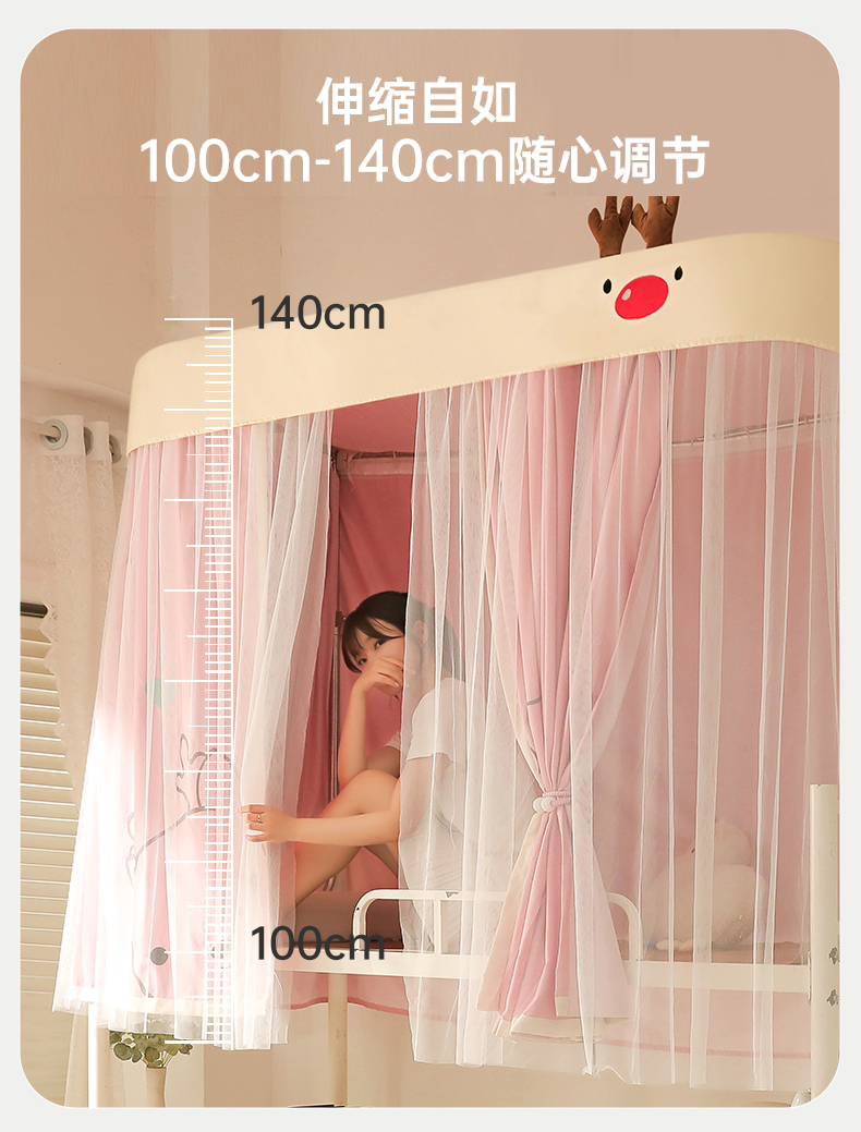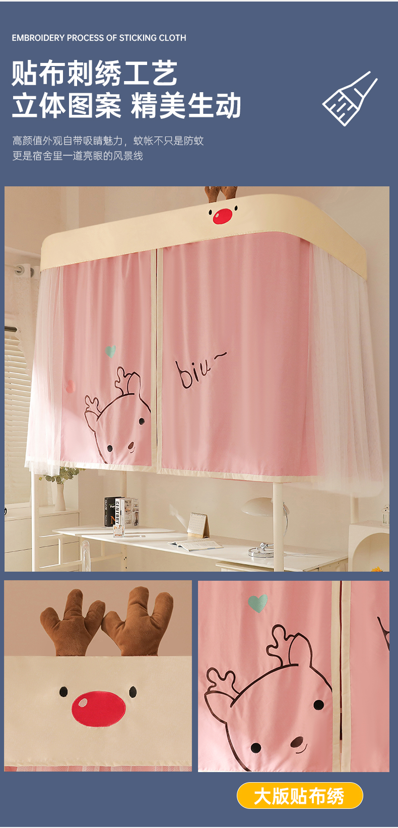 商品名称:都市缘蚊帐 2025新款学生宿舍导轨遮光床帘上下铺贴布卡通蚊帐0.8m 0.9m床 小鹿-粉