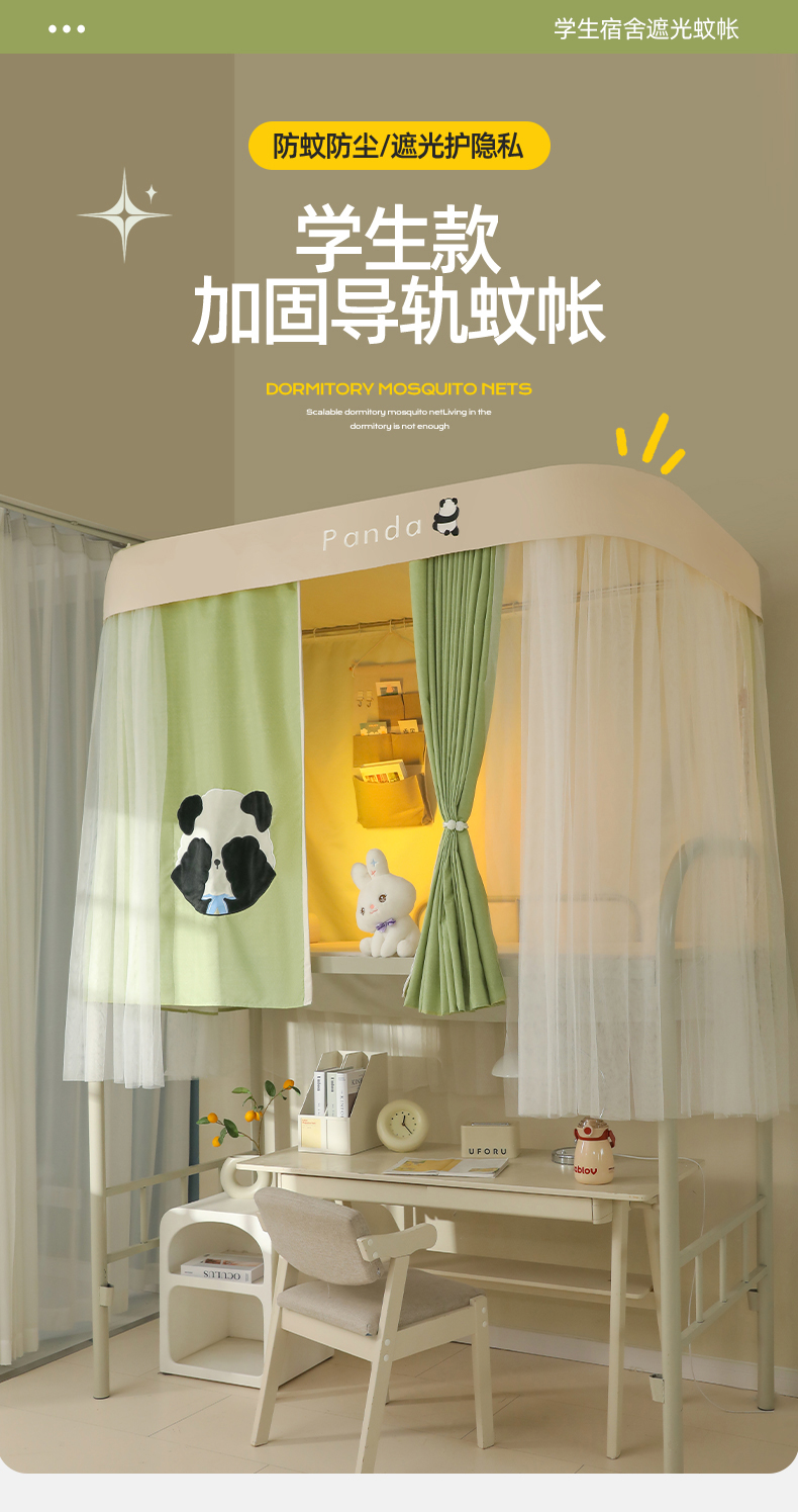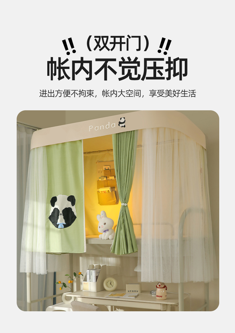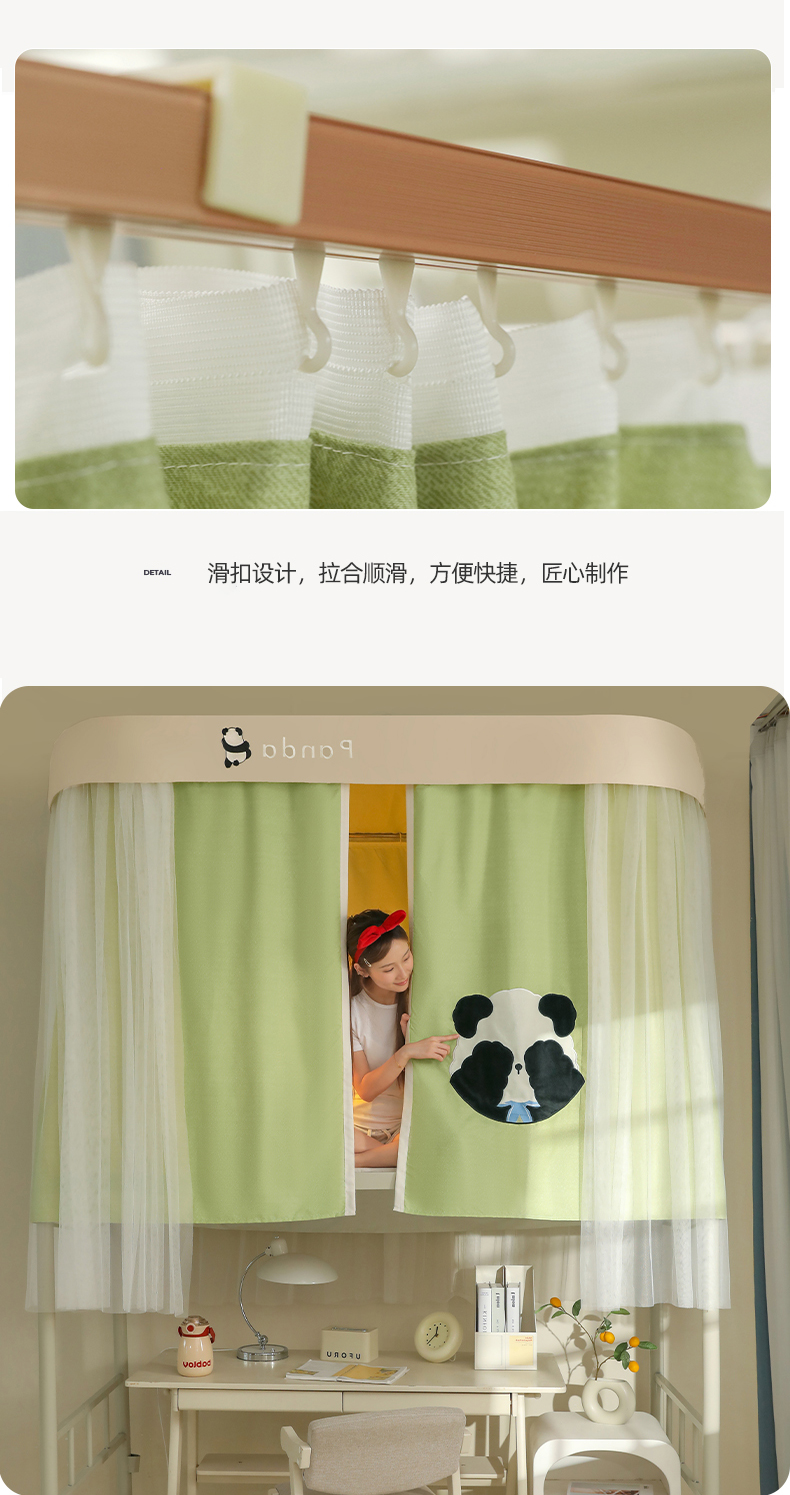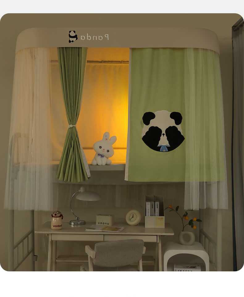 商品名称:都市缘蚊帐 2025新款学生宿舍导轨遮光床帘上下铺贴布卡通蚊帐0.8m 0.9m床 熊猫圆圆-豆绿