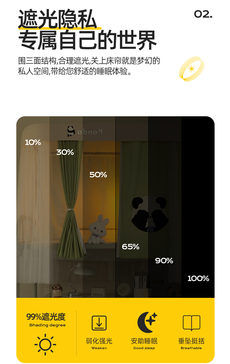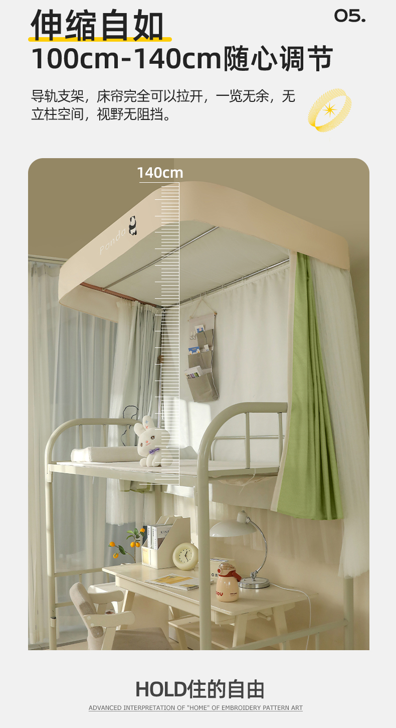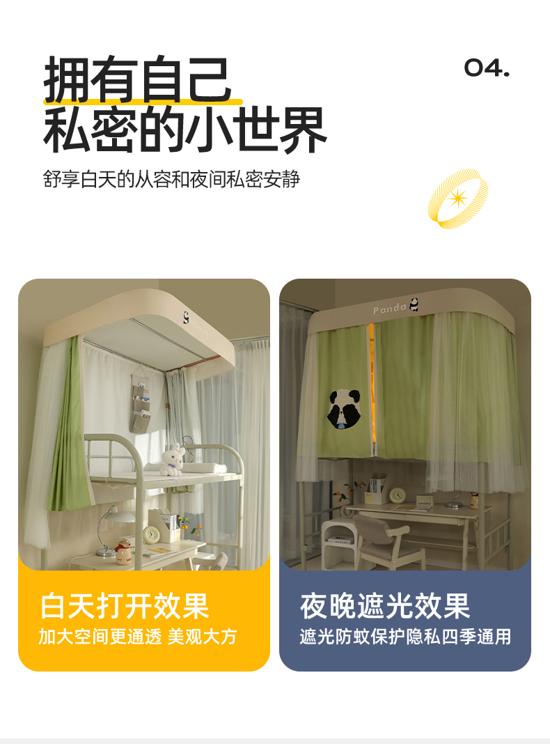 商品名称:都市缘蚊帐 2025新款学生宿舍导轨遮光床帘上下铺贴布卡通蚊帐0.8m 0.9m床 熊猫圆圆-豆绿