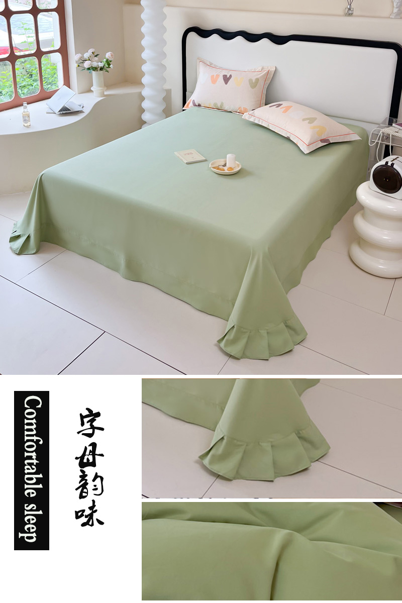 (总)艾迪尚家纺 2026法式韩版荷叶边纯色长绒棉纯棉单床单单品床单床单单件,薄荷青灰,冰川蓝香草白,茉绿奶芙,奶芙慕粉,青提絮语,柔杏浅绿,瑞绿慕斯粉,雾蓝杏语,云白芽绿,云灰仙女粉