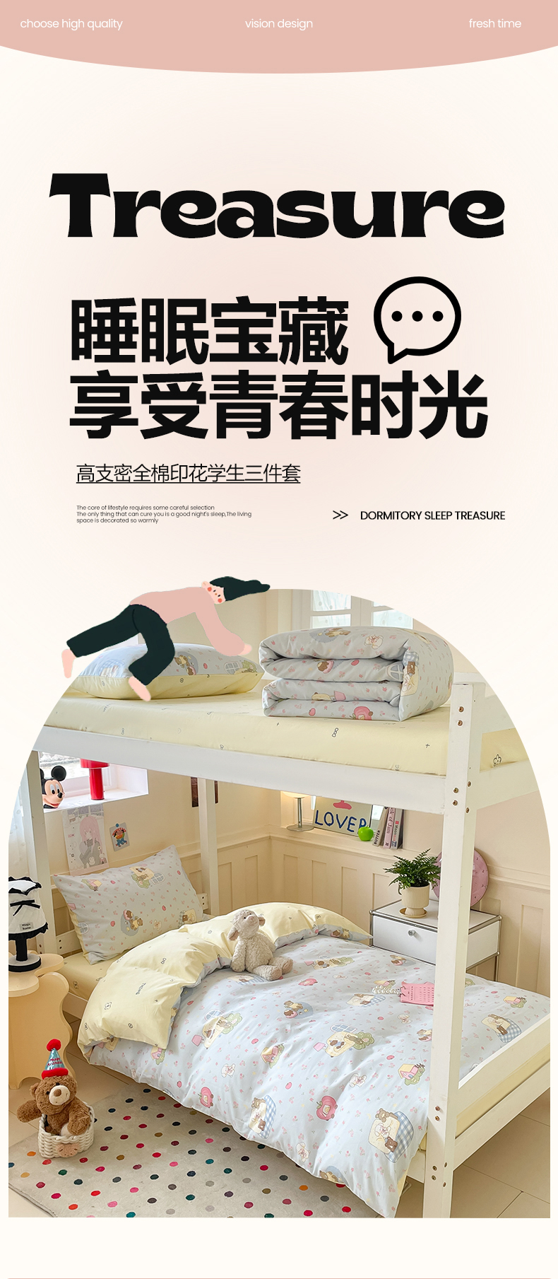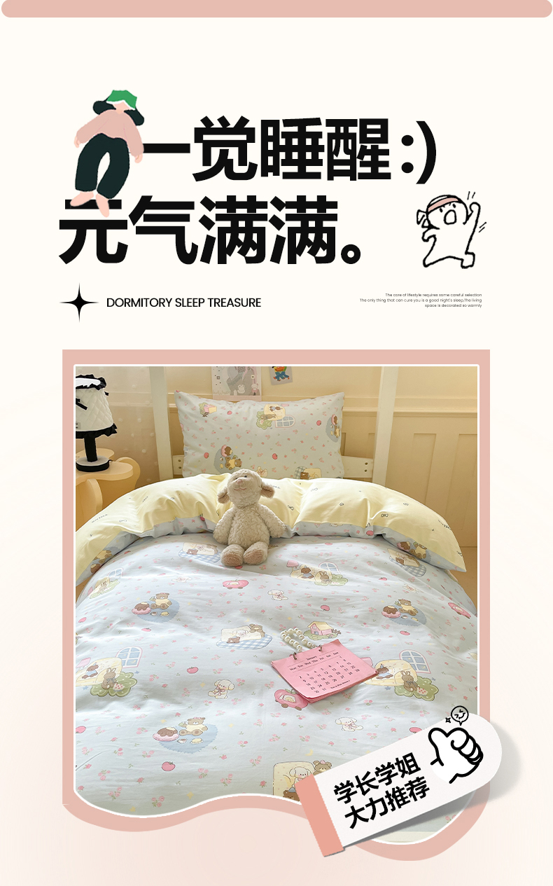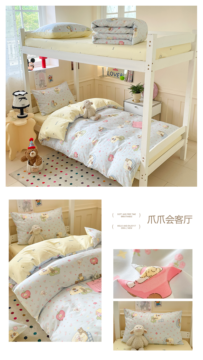 当前位置: 91家纺网 > 商品网购 > 床品套件 > 三件套 > 吉象家纺 2025新款12868高支密全棉印花学生季三件套 爪爪会客厅