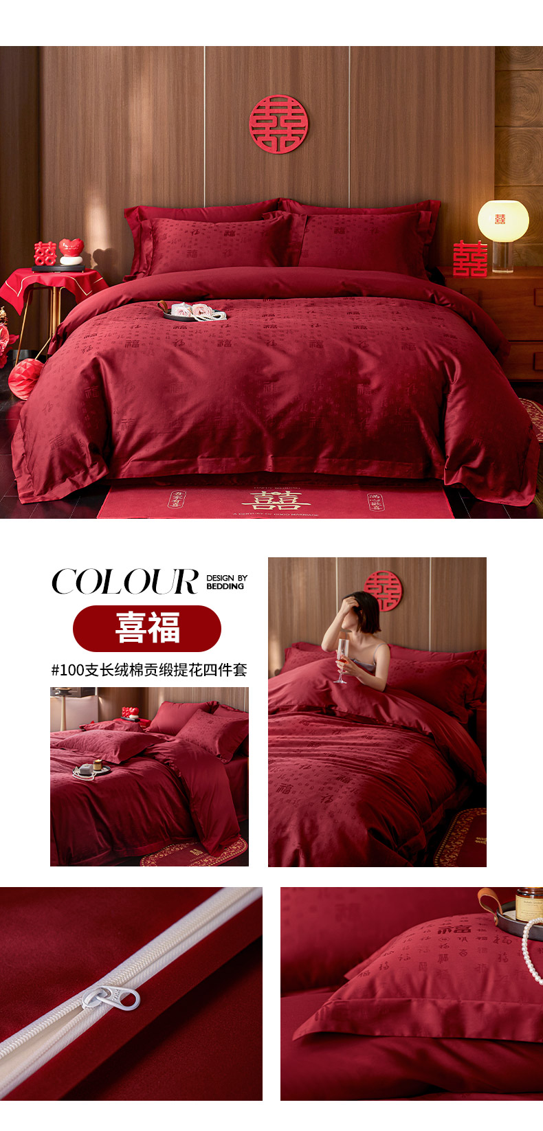 商品名称:轩和家居 2025新款50S长绒棉贡缎提花婚庆四件套(优惠劵之后不低于298) 喜福