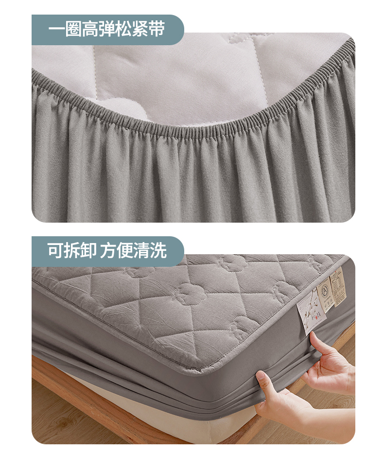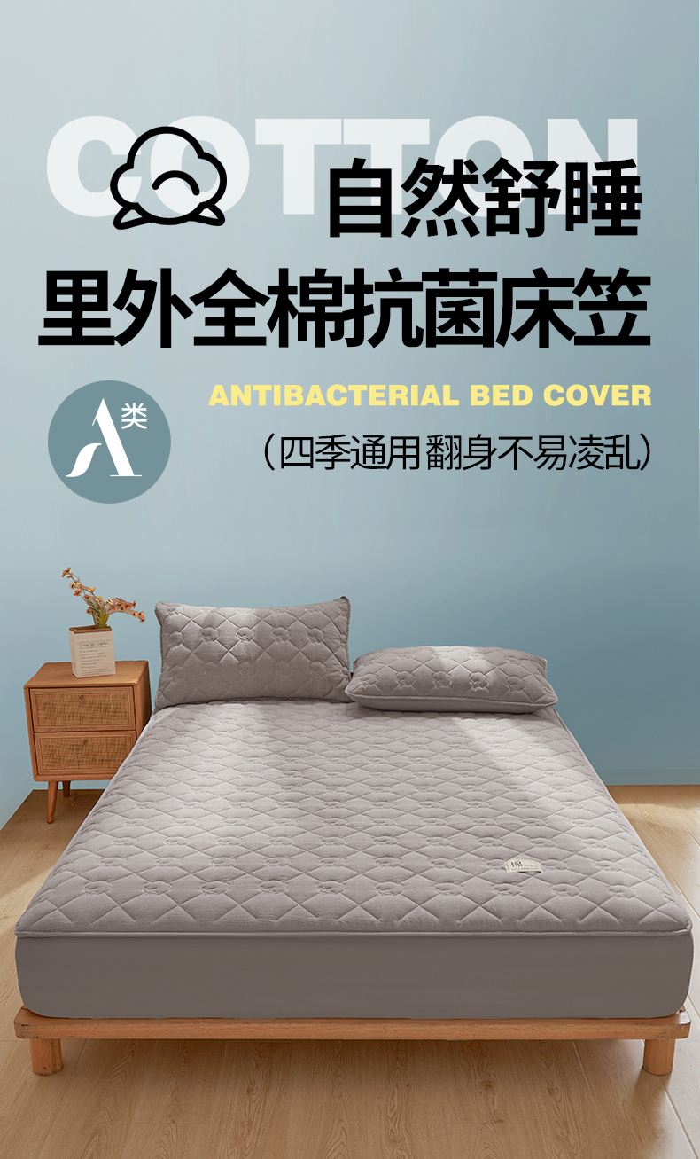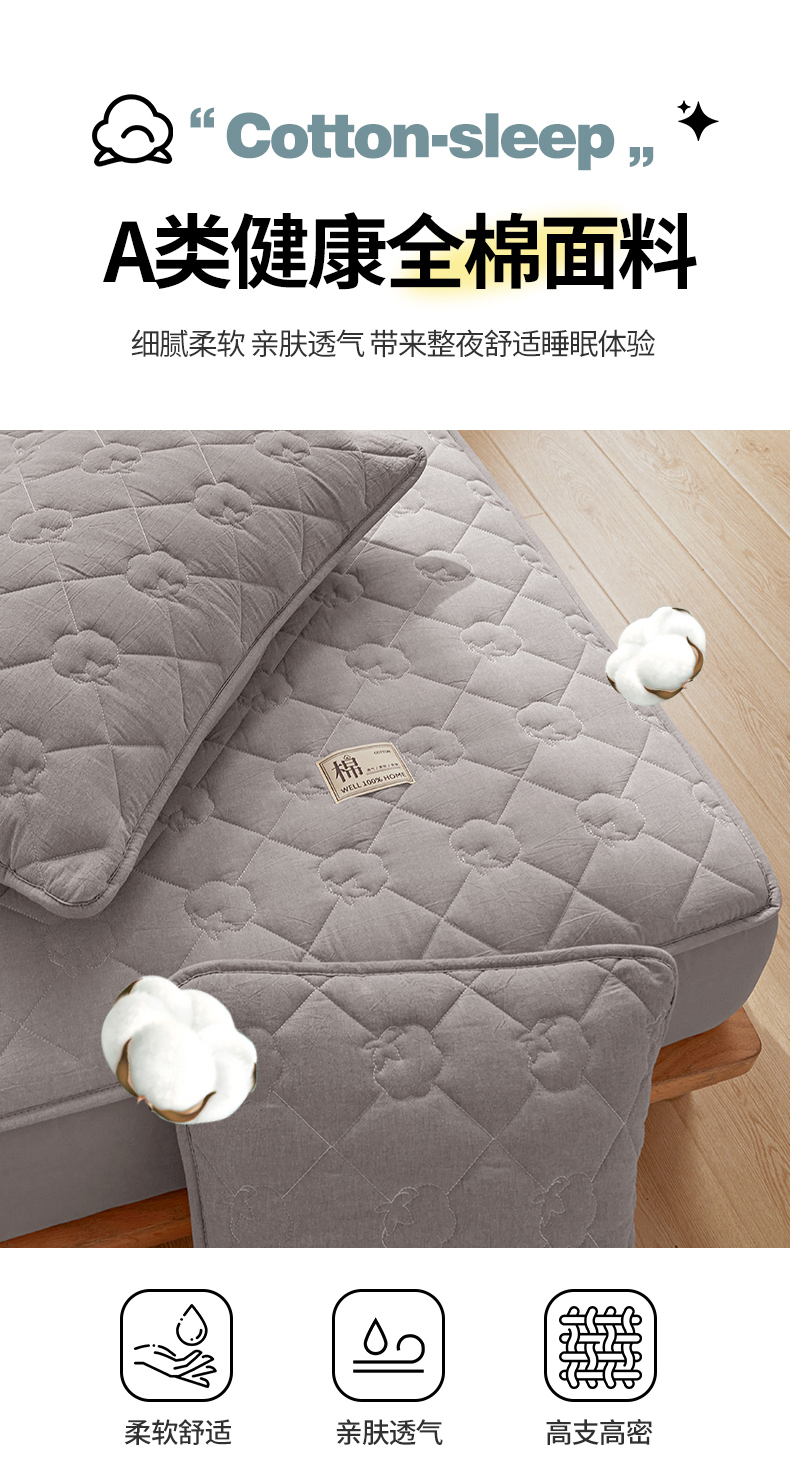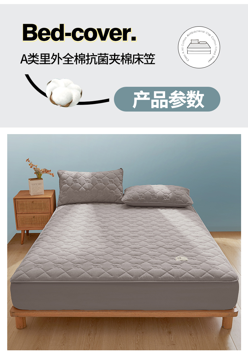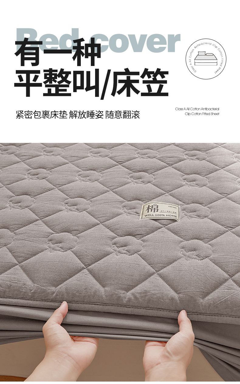 • 91家纺网 家纺一手货源 找家纺 西域种棉人·千百笠 2025新款A类抗菌里外全棉100%新疆棉花填充夹棉床笠母婴级床笠单件纯色床罩保护罩套全包围 夏洛床笠-灰