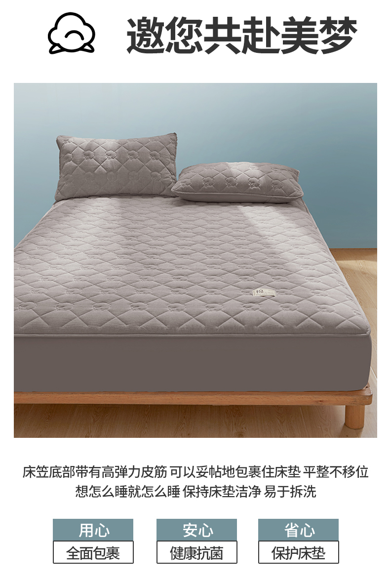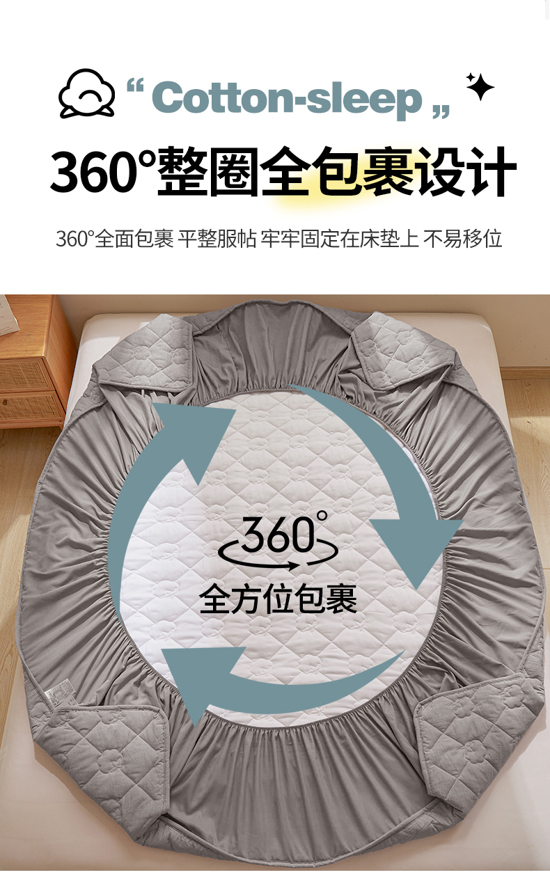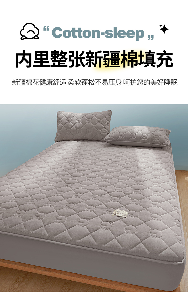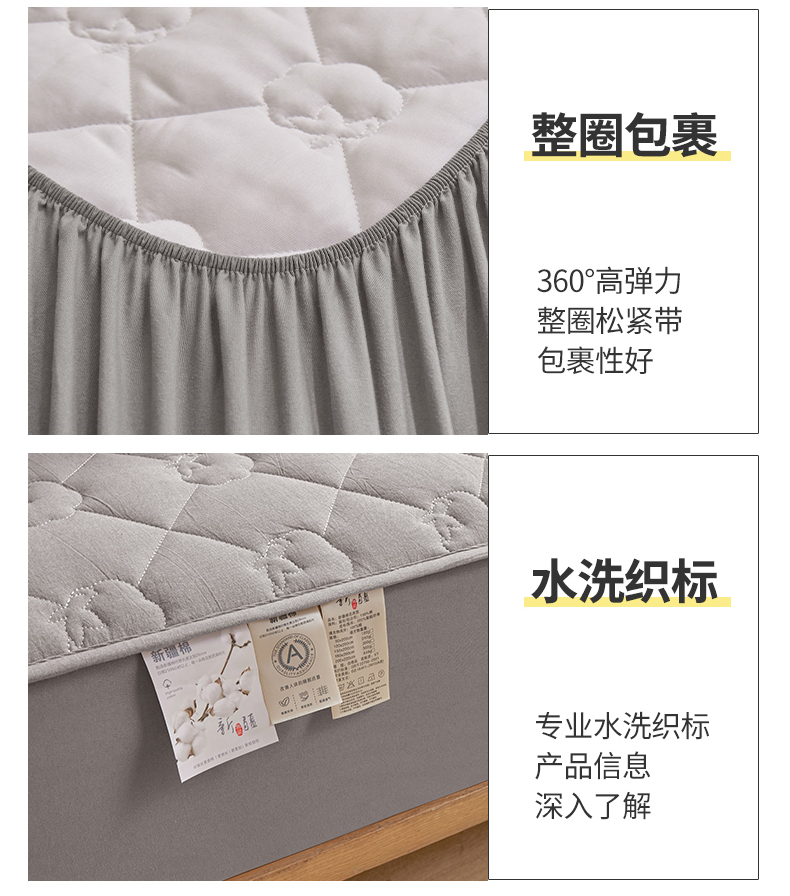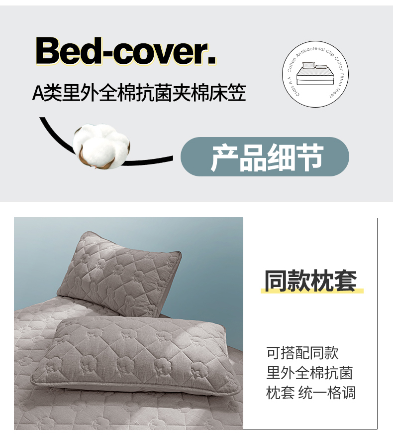 • 91家纺网 家纺一手货源 找家纺 西域种棉人·千百笠 2025新款A类抗菌里外全棉100%新疆棉花填充夹棉床笠母婴级床笠单件纯色床罩保护罩套全包围 夏洛床笠-灰