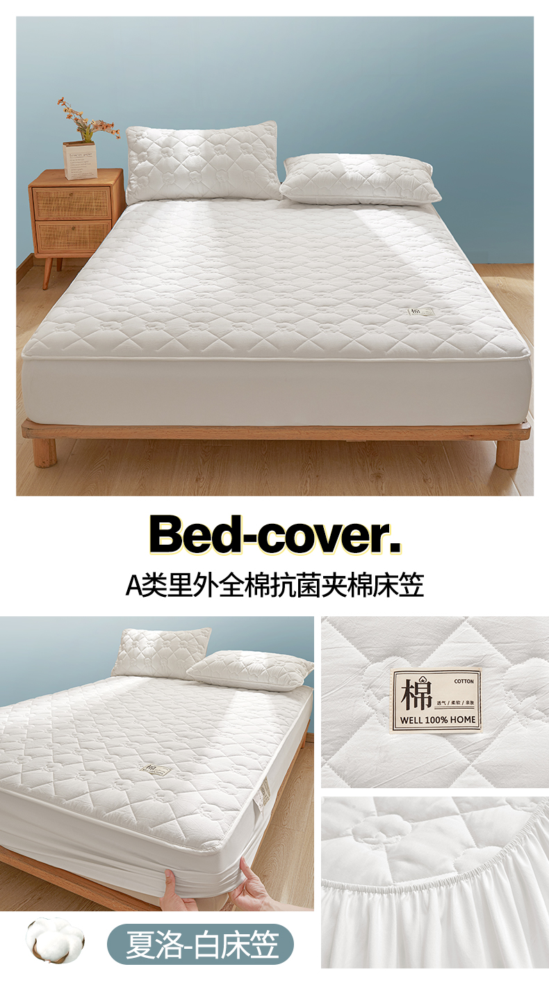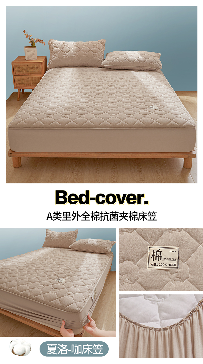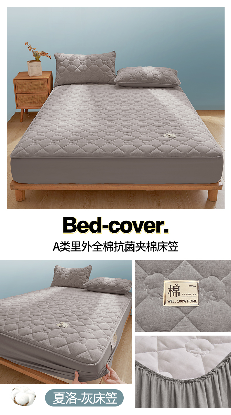 西域种棉人·千百笠 2025新款A类抗菌里外全棉100%新疆棉花填充夹棉床笠母婴级床笠单件纯色床罩保护罩套全包围 夏洛床笠-灰