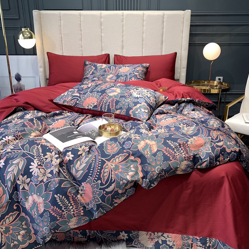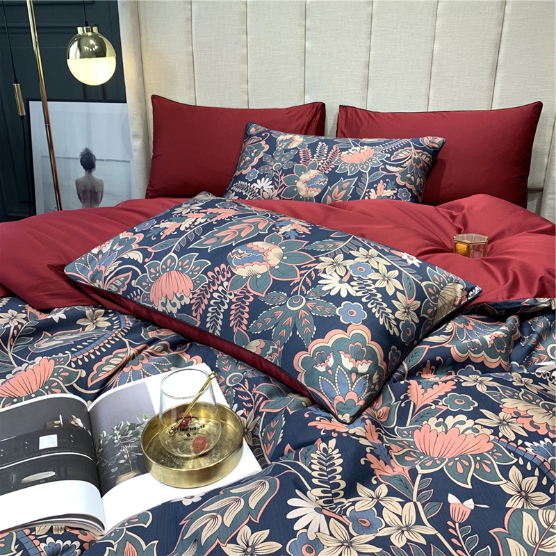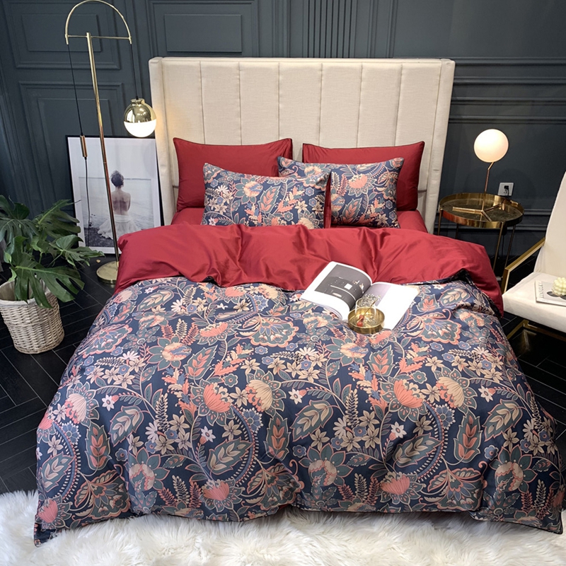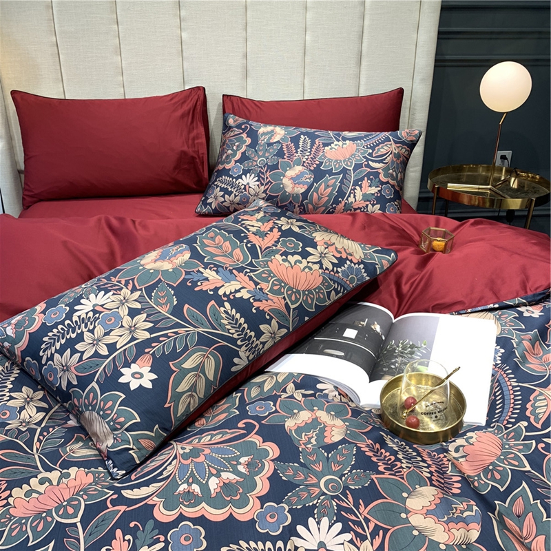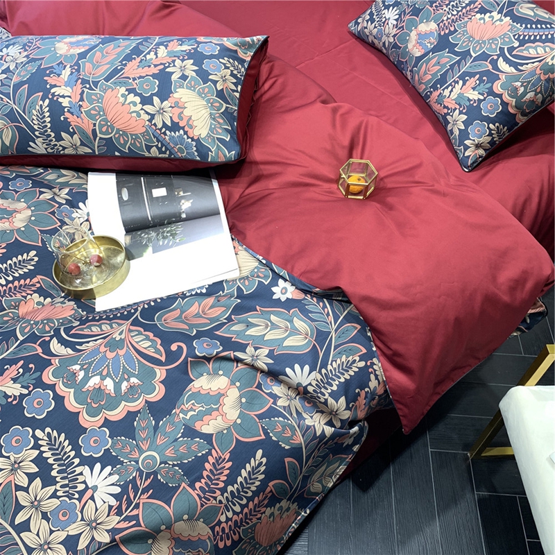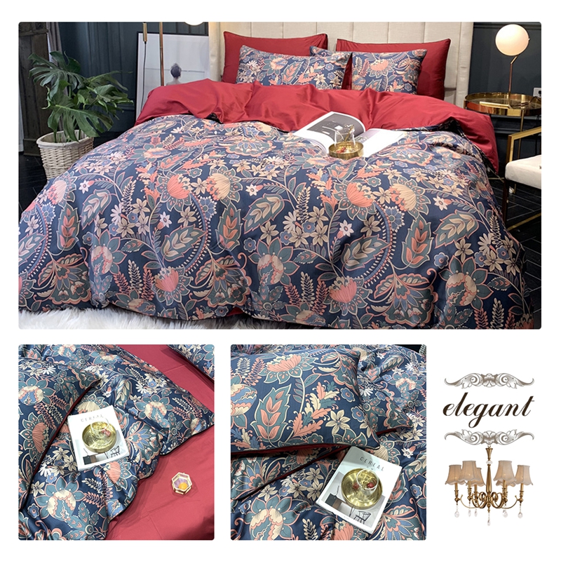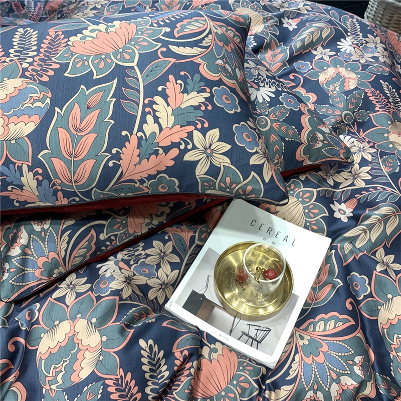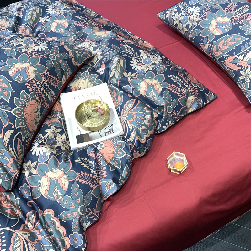 (总)优然居家纺 2026春夏新款全棉纯棉60支数码印花法式拼接款四件套-莉莉安,莉莉安