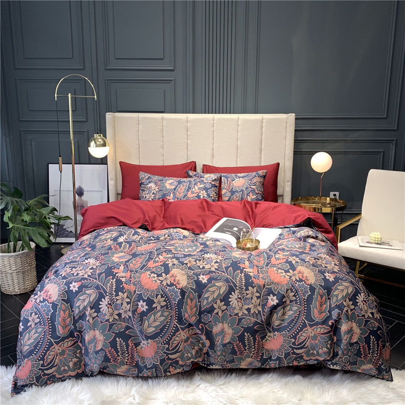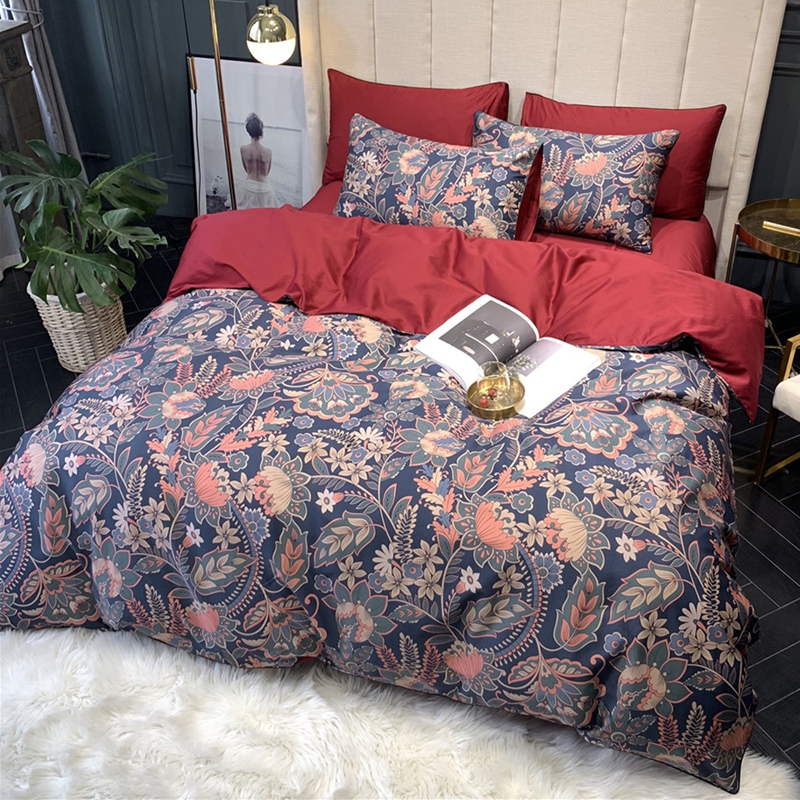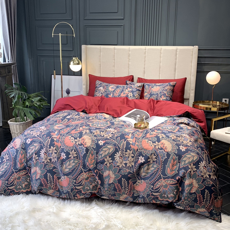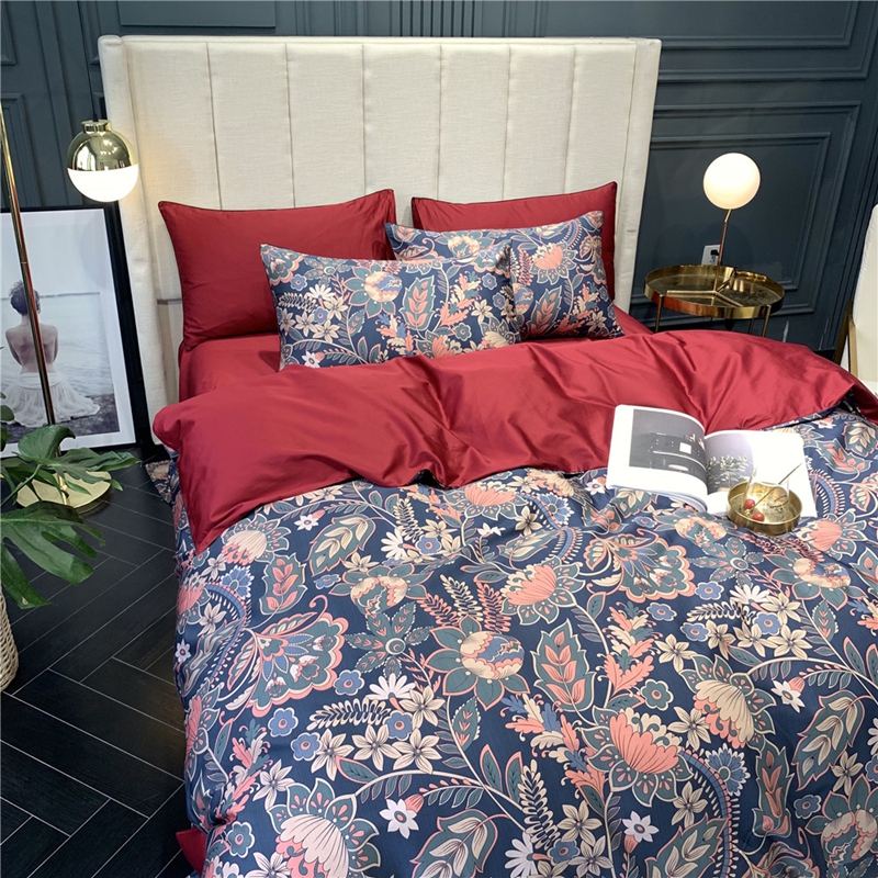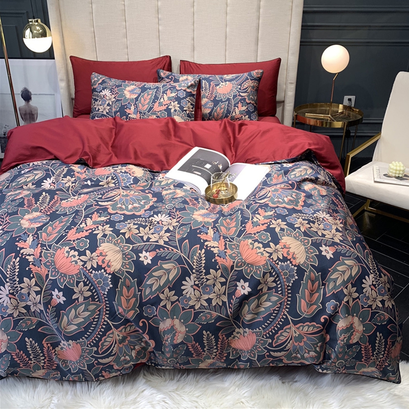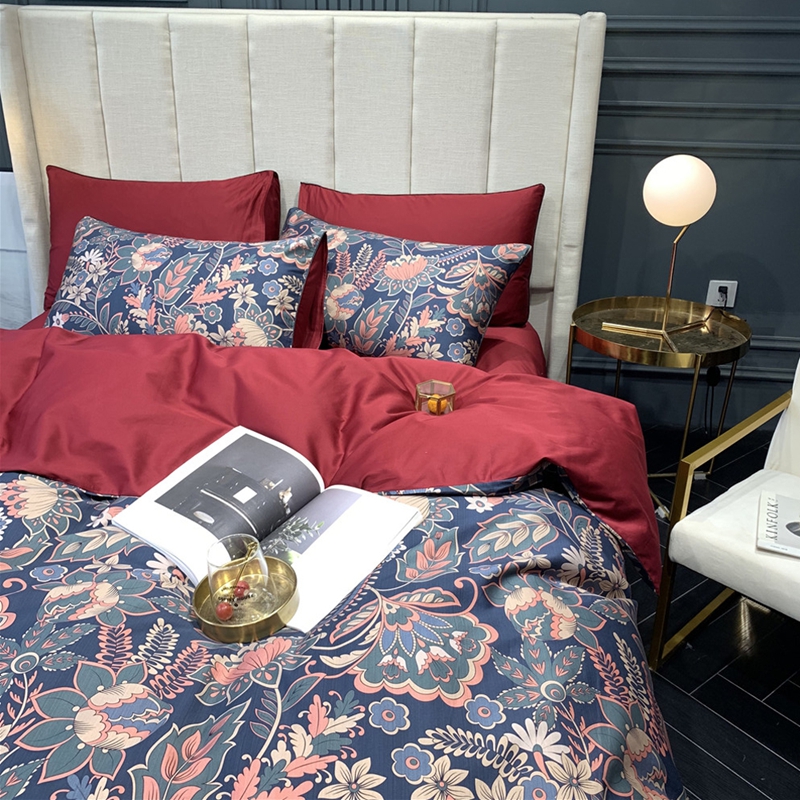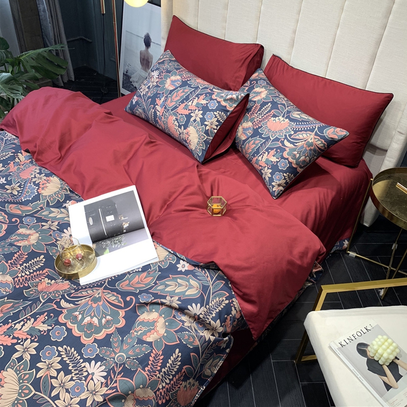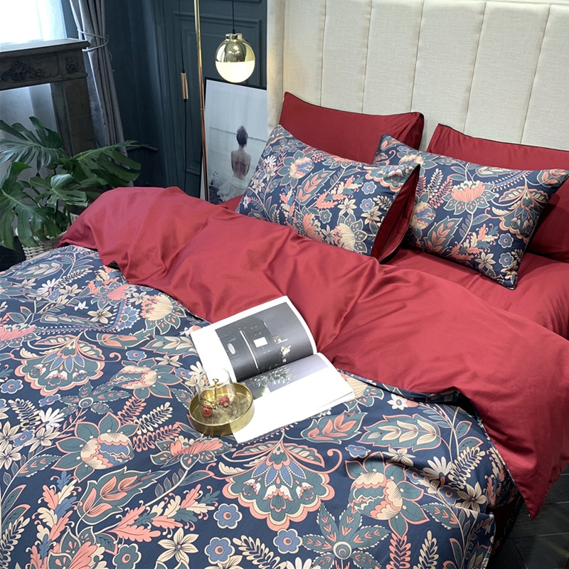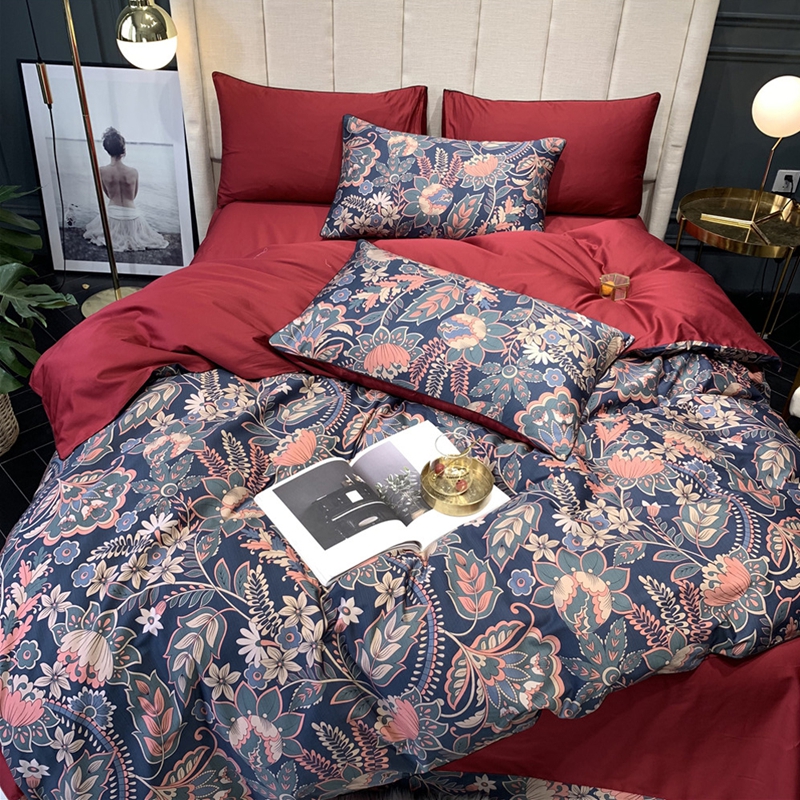(总)优然居家纺 2026春夏新款全棉纯棉60支数码印花法式拼接款四件套-莉莉安,莉莉安