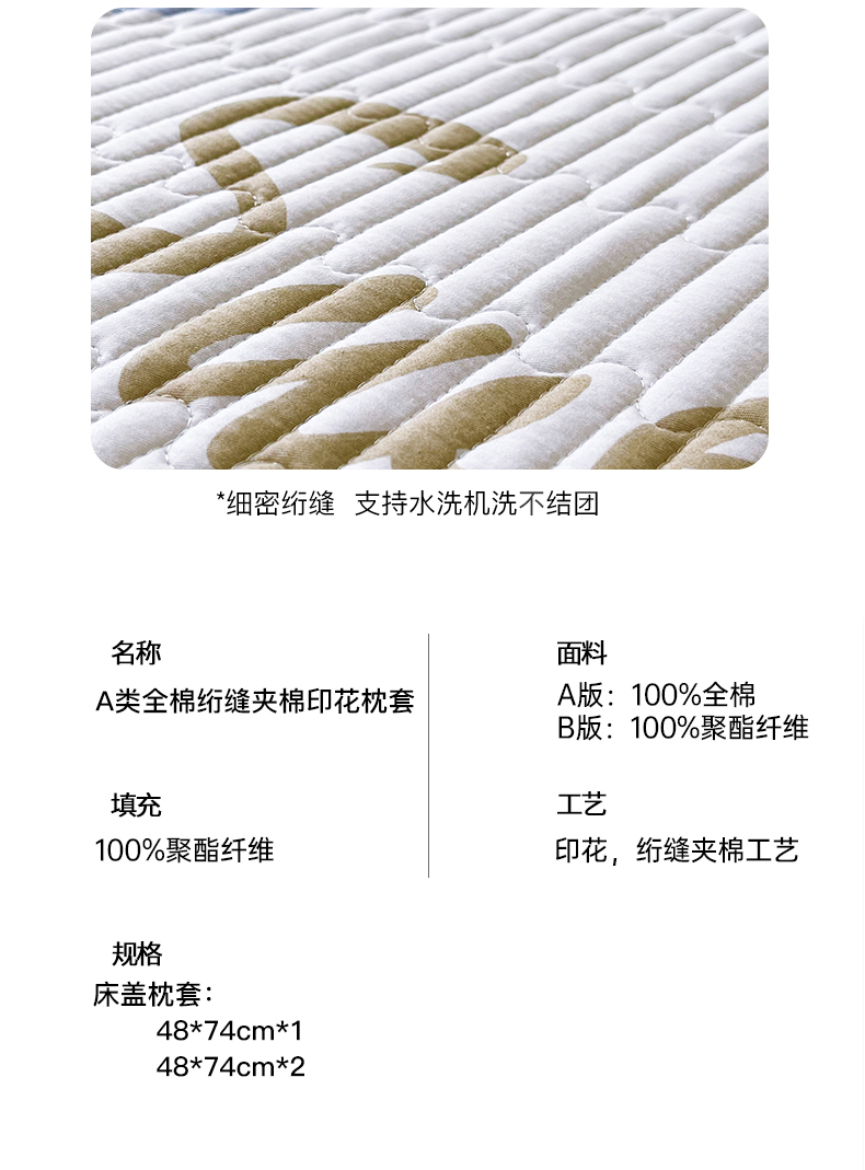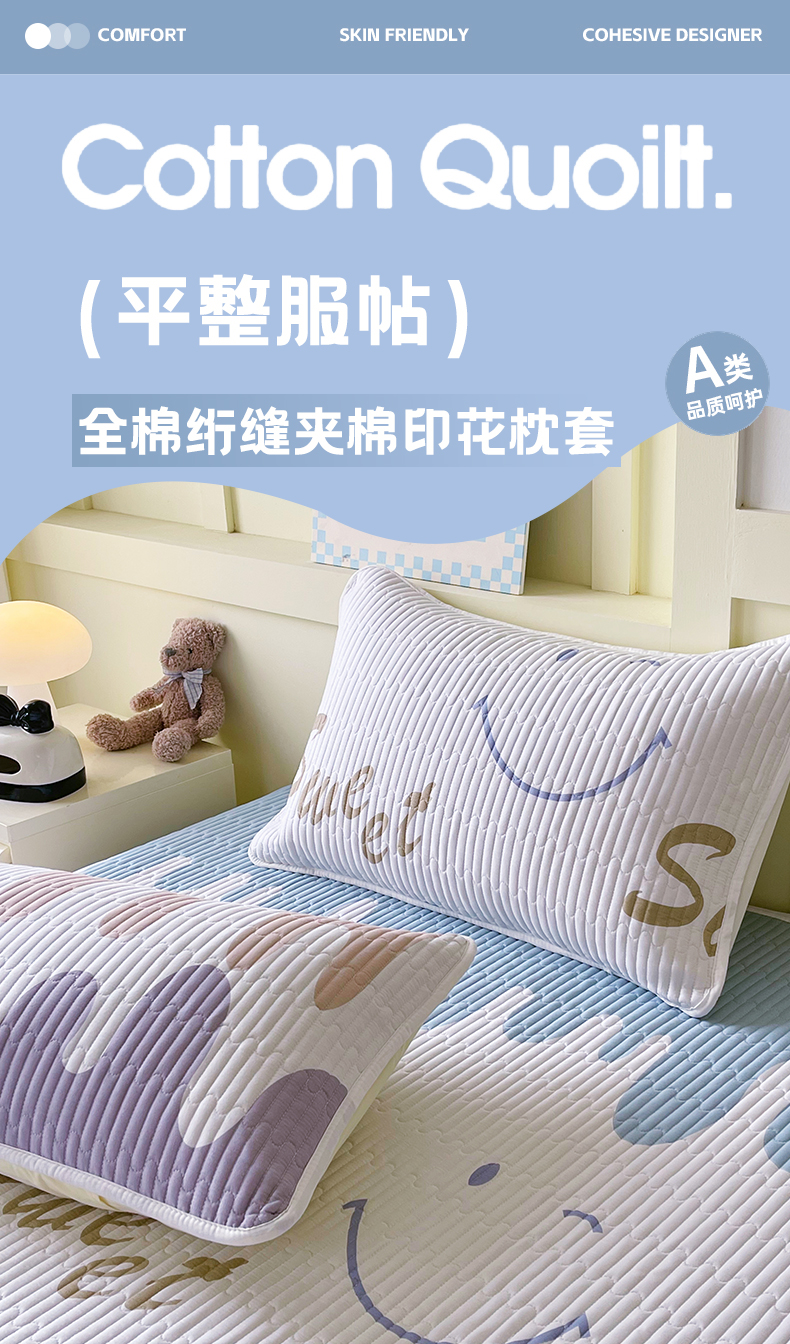 商品名称:金鑫汇家纺 2025新款A类全绗缝夹棉印花枕套 奶油粉