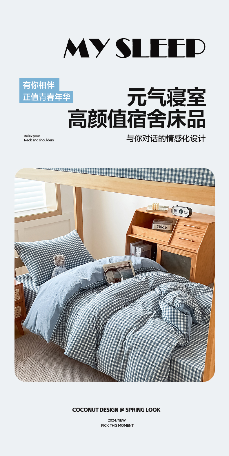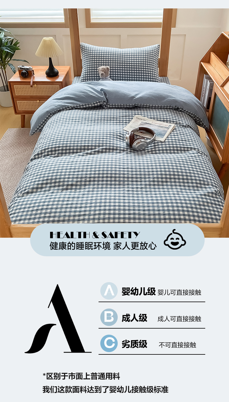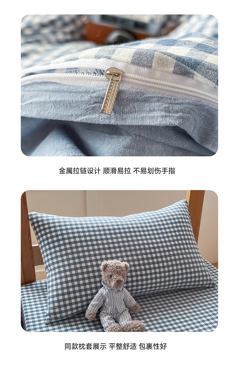 当前位置: 91家纺网 > 商品网购 > 床品套件 > 三件套 > 鸣升家纺 2025新款全棉纯棉色织水洗棉学生宿舍床三件套上下铺三件套六件套 浅蓝小格