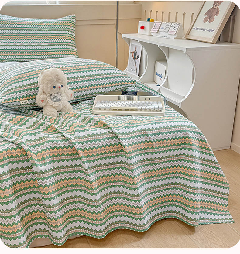 爱彼家纺 2025新款锦柔老粗布席子凉席床单热卖花型 向往条绿