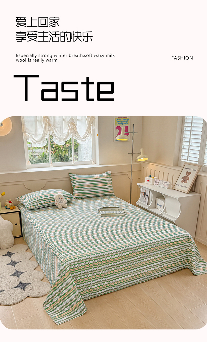 • 91家纺网 家纺一手货源 找家纺 爱彼家纺  2025新款锦柔老粗布席子凉席床单热卖花型 向往条绿