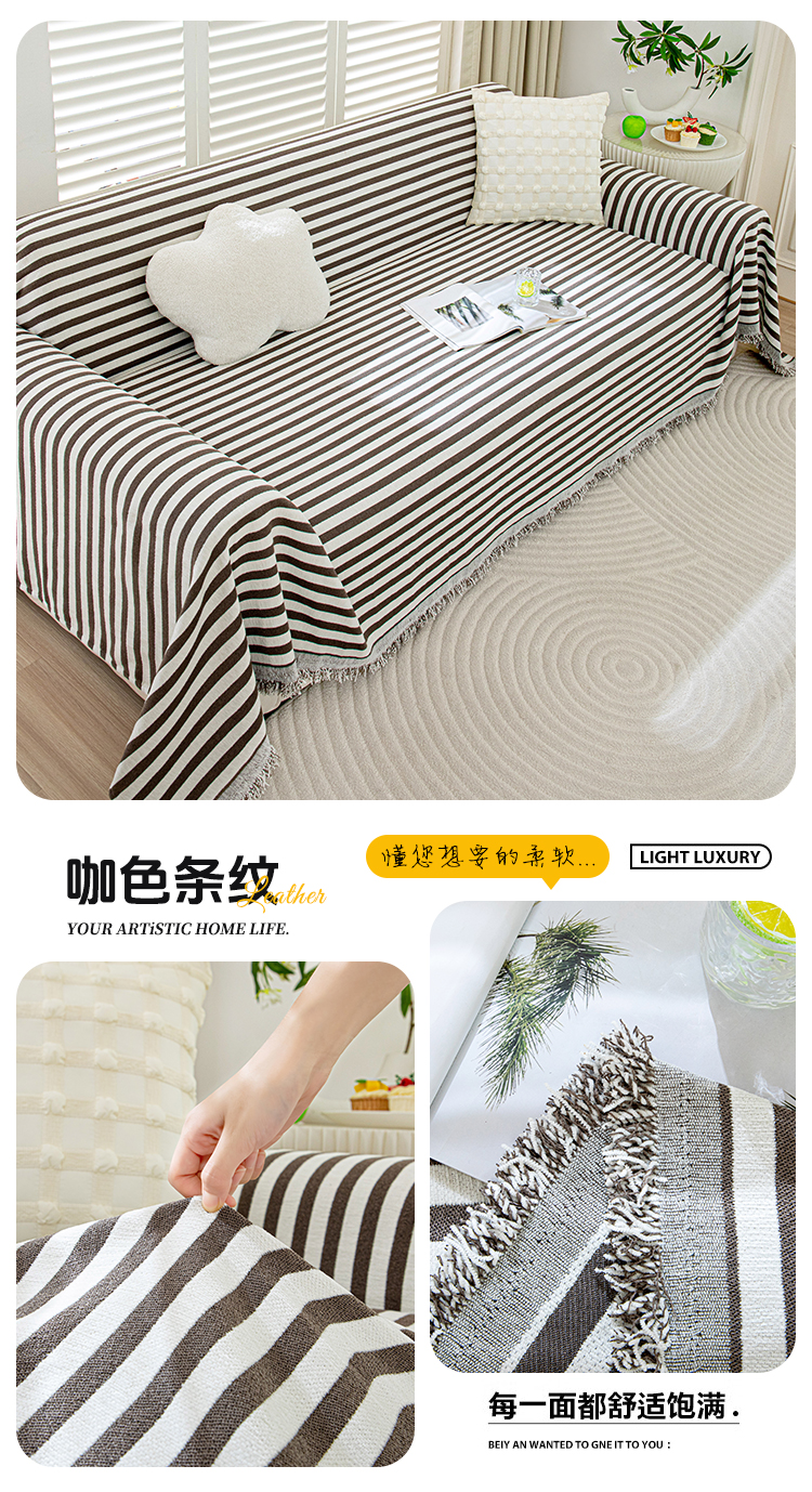 当前位置: 91家纺网 > 商品网购 > 居家布艺 > 坐垫/椅垫/沙发垫 > 沙发 > 沐沐家纺 2026新款无印风沙发巾 咖色条纹