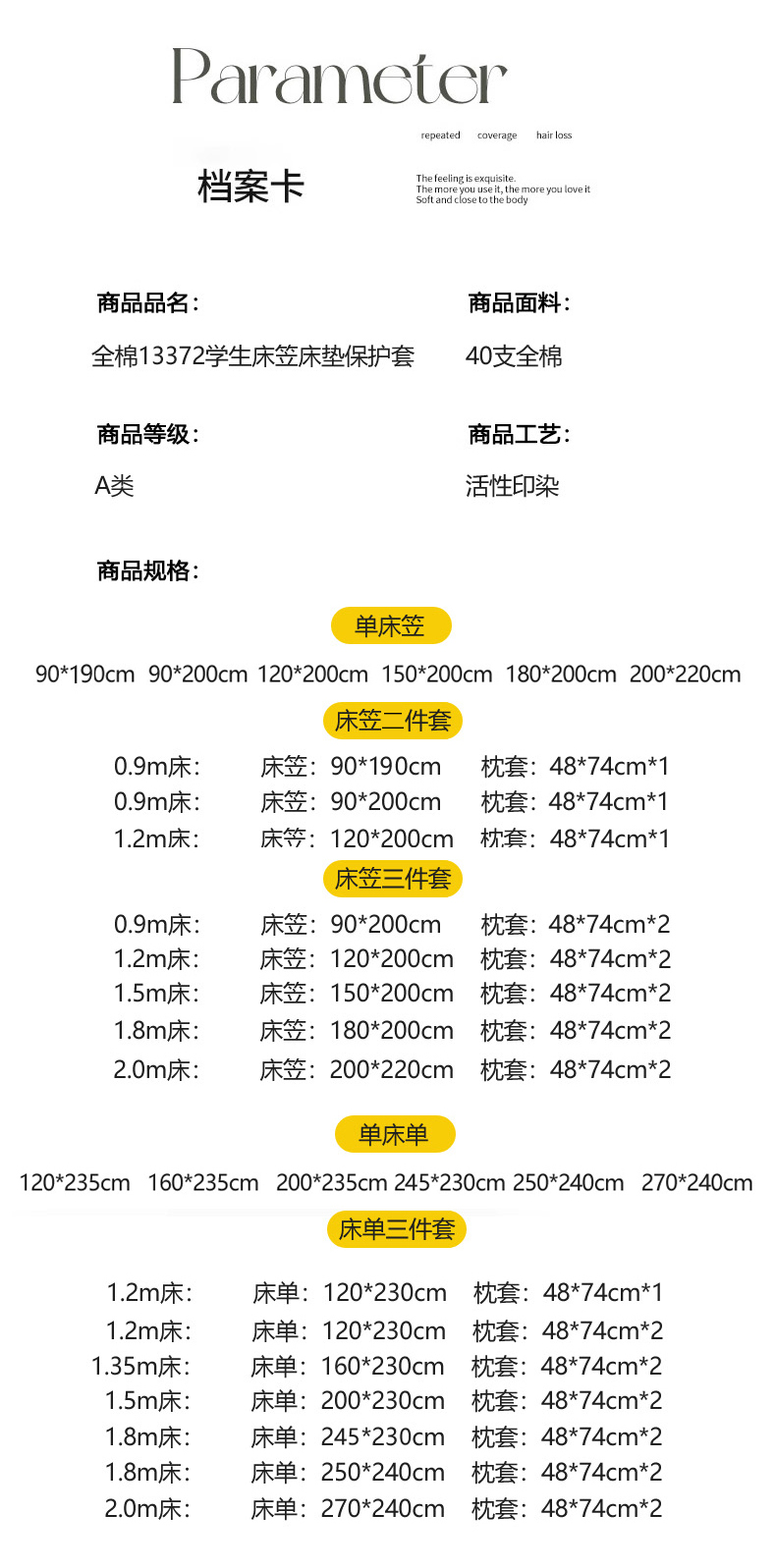 150x200cm床笠+枕套一只 | ¥50.00 |