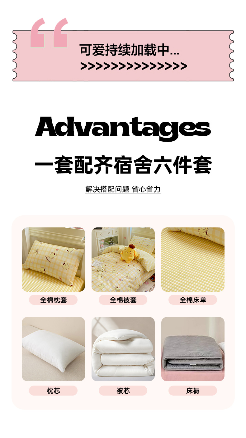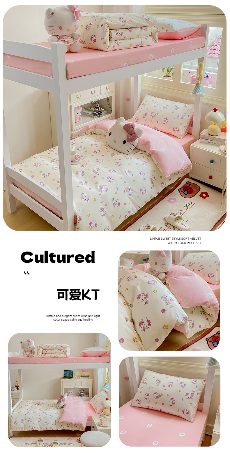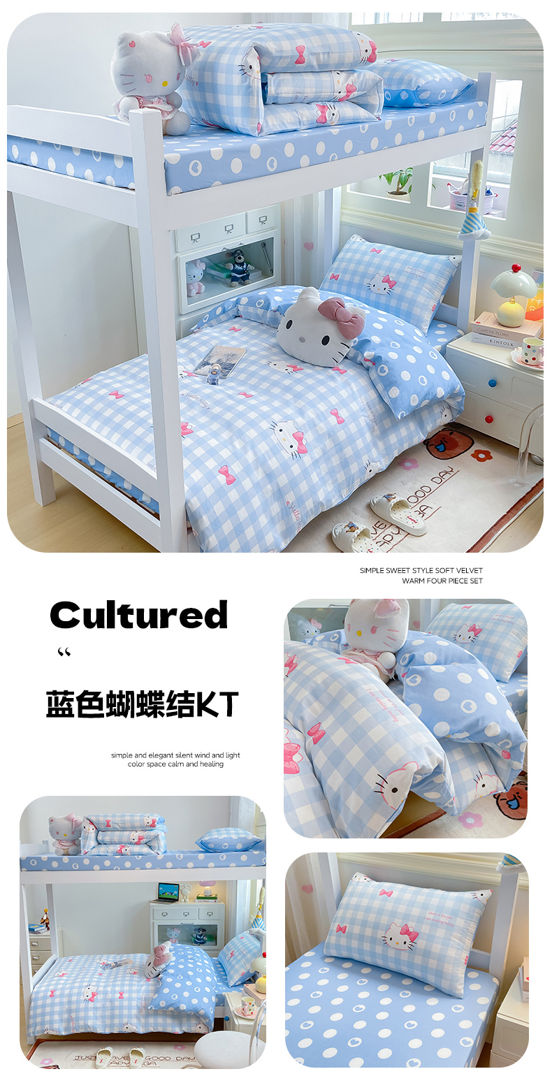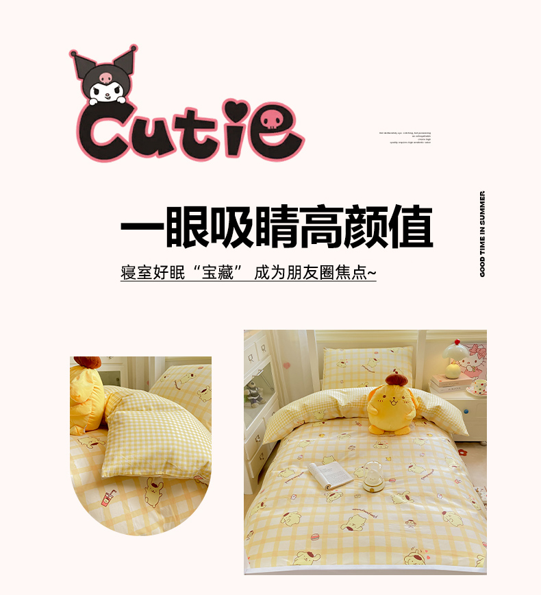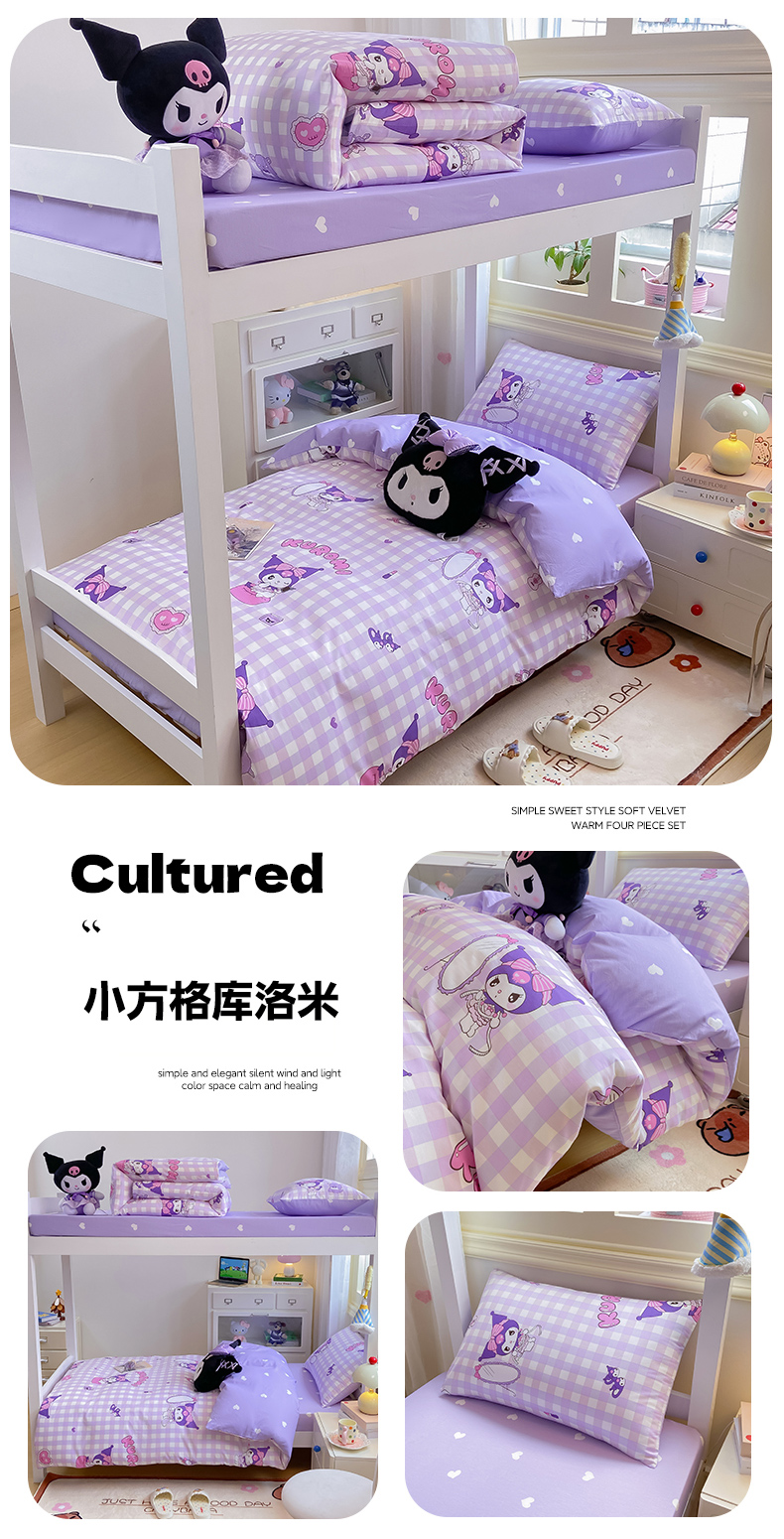 商品名称:(总)博雅 2025春夏新款三丽鸥全棉纯棉卡通学生宿舍三件套上下铺三件套-小版
