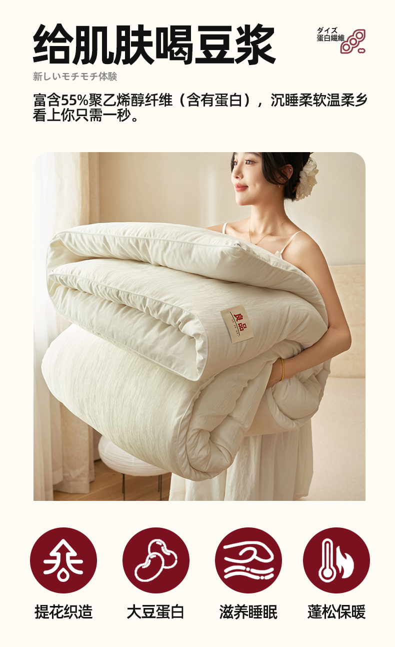 商品名称:(总)恬思语家纺 2025秋冬新款银丝大提花55%大豆冬被被子被芯