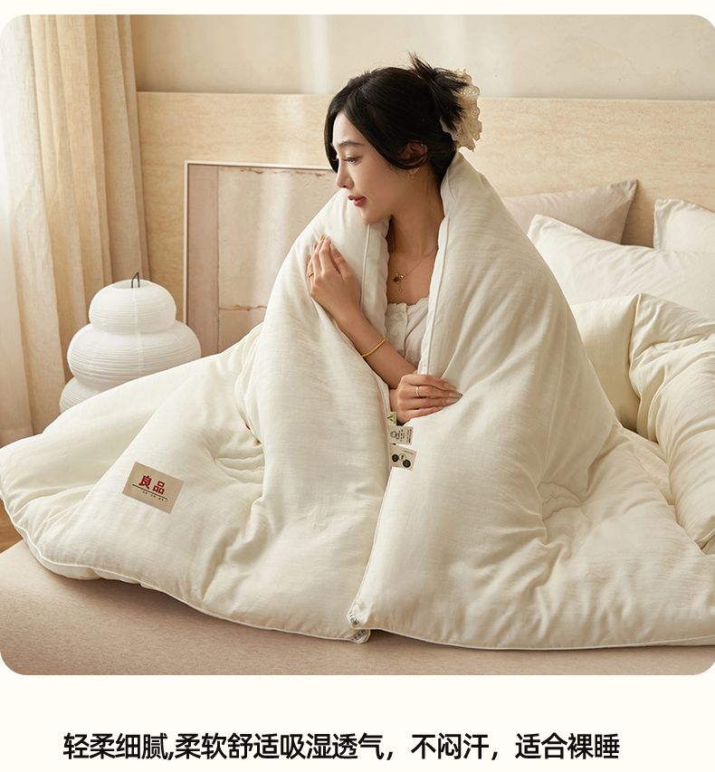 (总)恬思语家纺 2025秋冬新品棉麻素色新疆棉花冬被被子被芯,本色