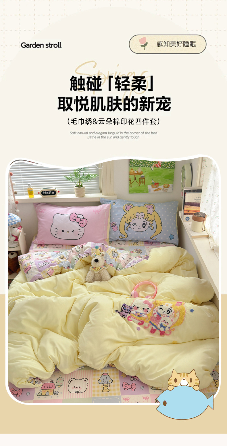 当前位置: 91家纺网 > 商品网购 > 床品套件 > 四件套 > 毛巾绣四件套 > 一霖家纺 2025新款高克重云朵棉毛巾绣印绣四件套-小清新系列-第三波 小努比