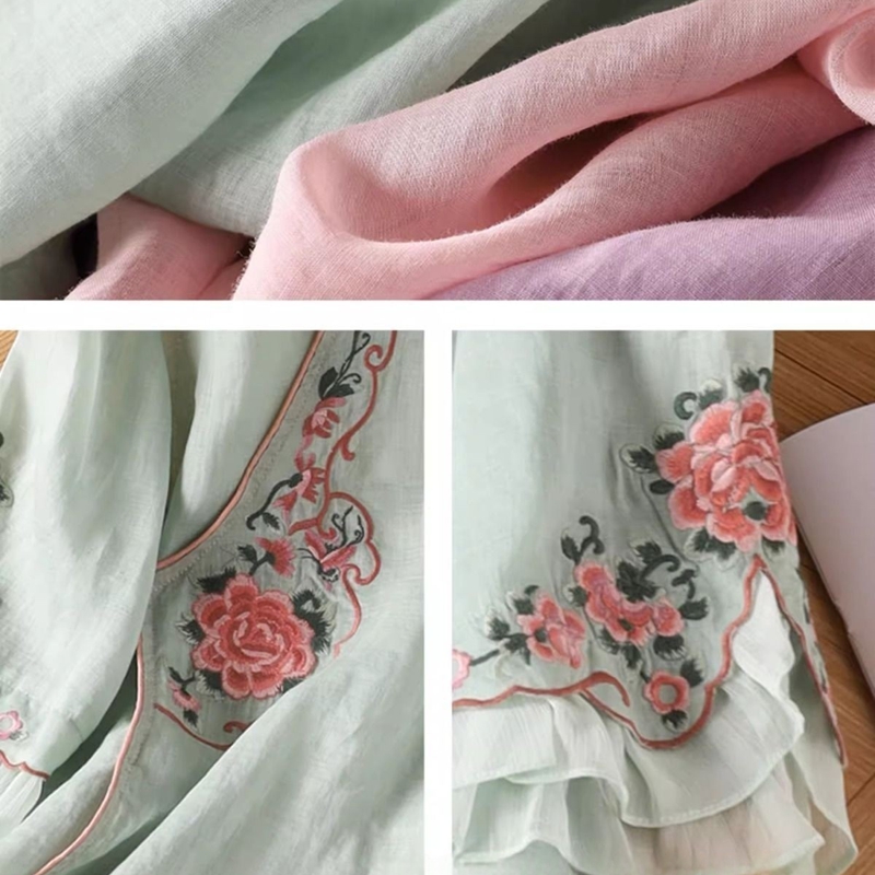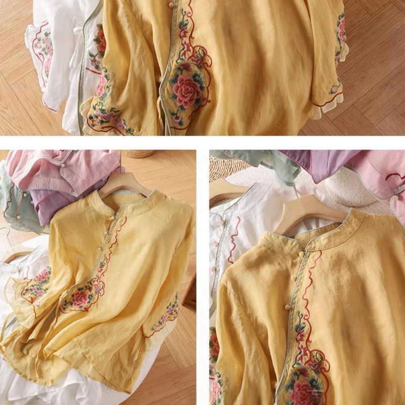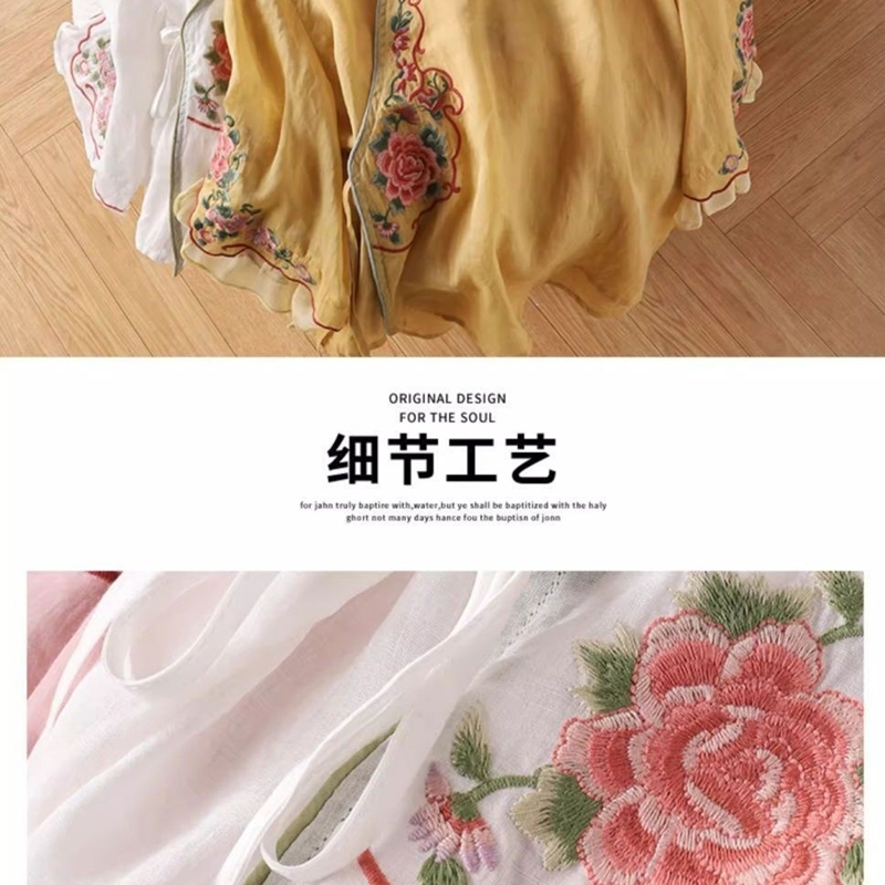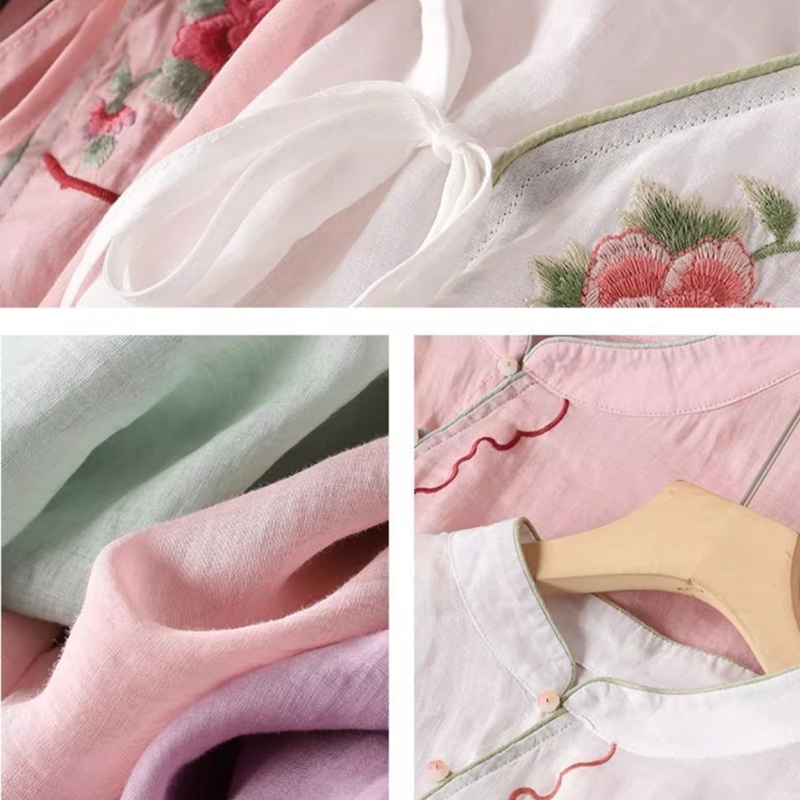 (总)洛兰沙家居馆【只代发】【只代发】 2025夏季新款复古文艺民族风翻领衬衫斜襟中式盘扣女装棉麻茶服上衣女
