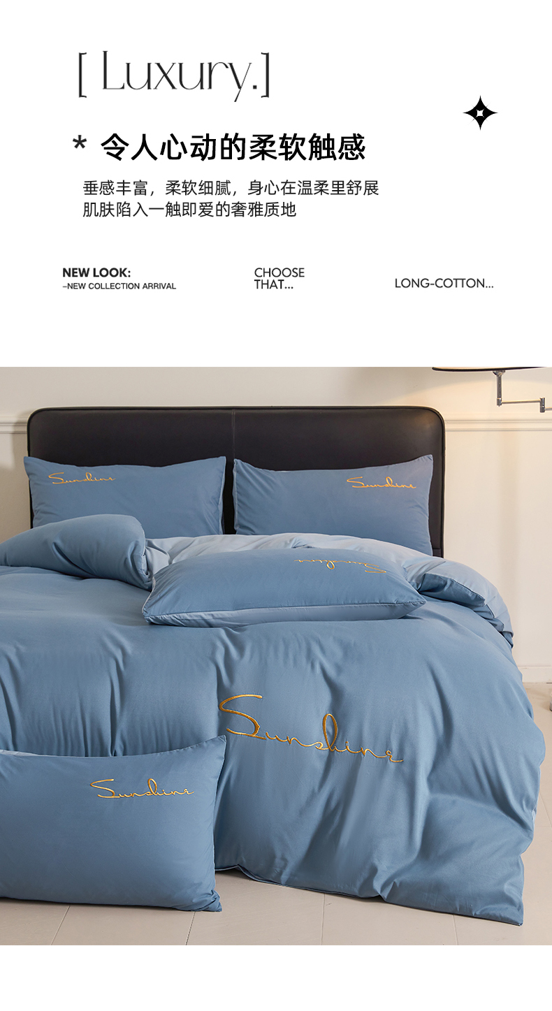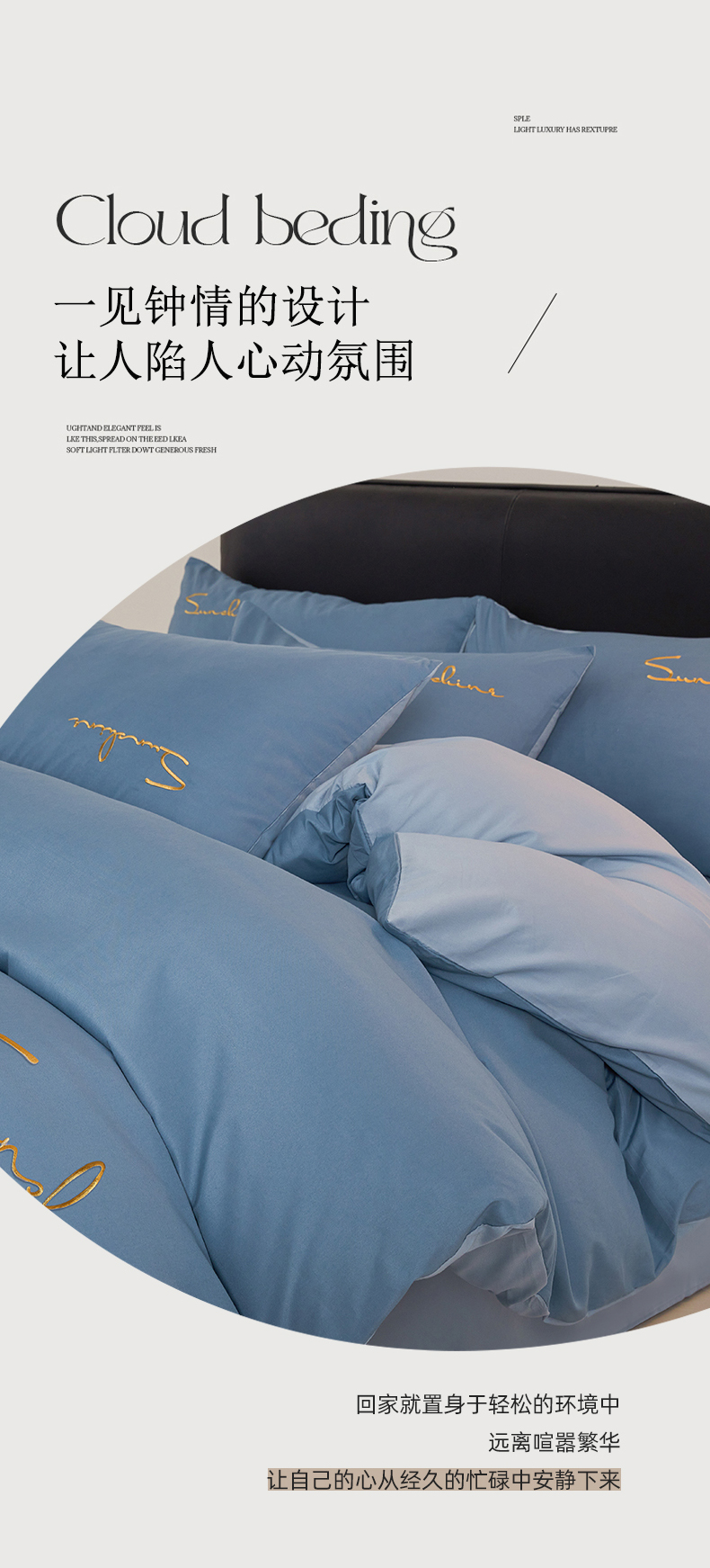 当前位置: 91家纺网 > 商品网购 > 床品套件 > 四件套 > 普通磨毛四件套 > 七仙女家纺 2025新款水洗磨毛刺绣轻奢简约系列四件套 繁星兰+兰灰