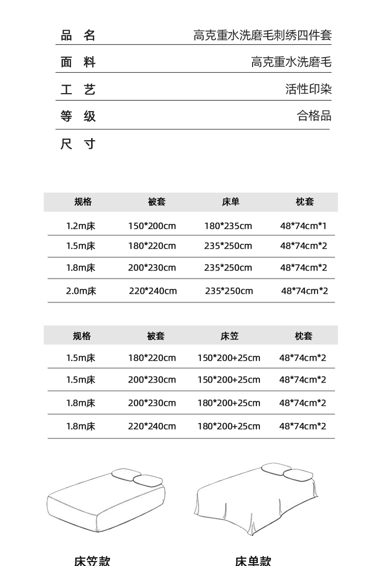 【床笠款】1.8四件套-被套200x230 | ¥65.00 |