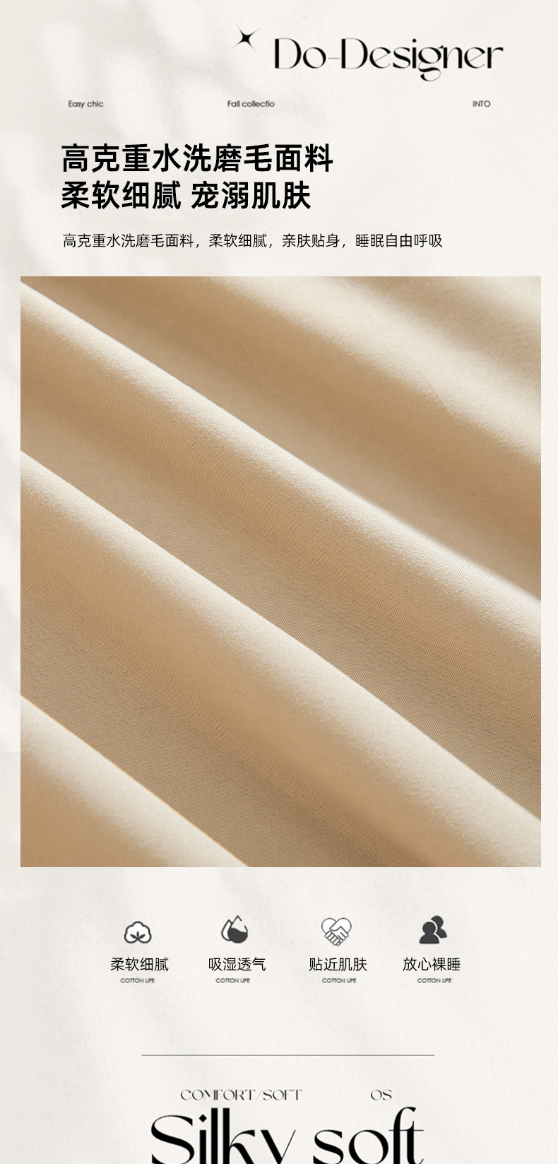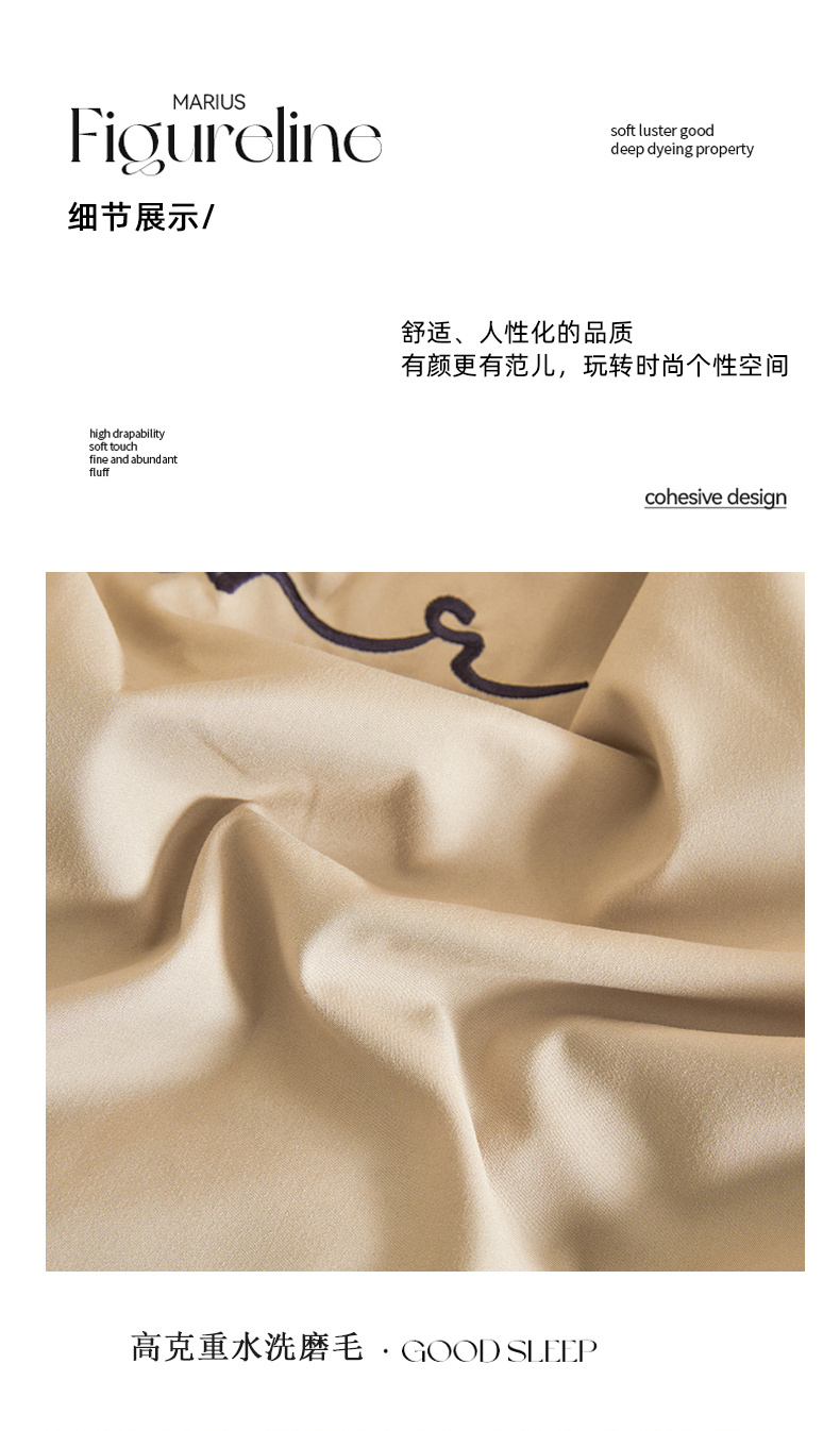 商品名称:七仙女家纺 2025新款水洗磨毛刺绣轻奢简约系列单被套单品被套被套单件 奶茶+浅灰