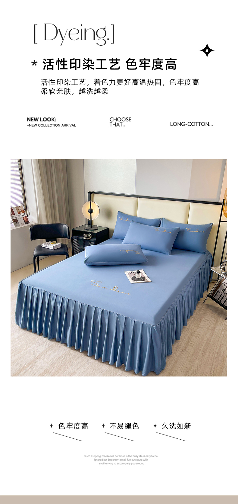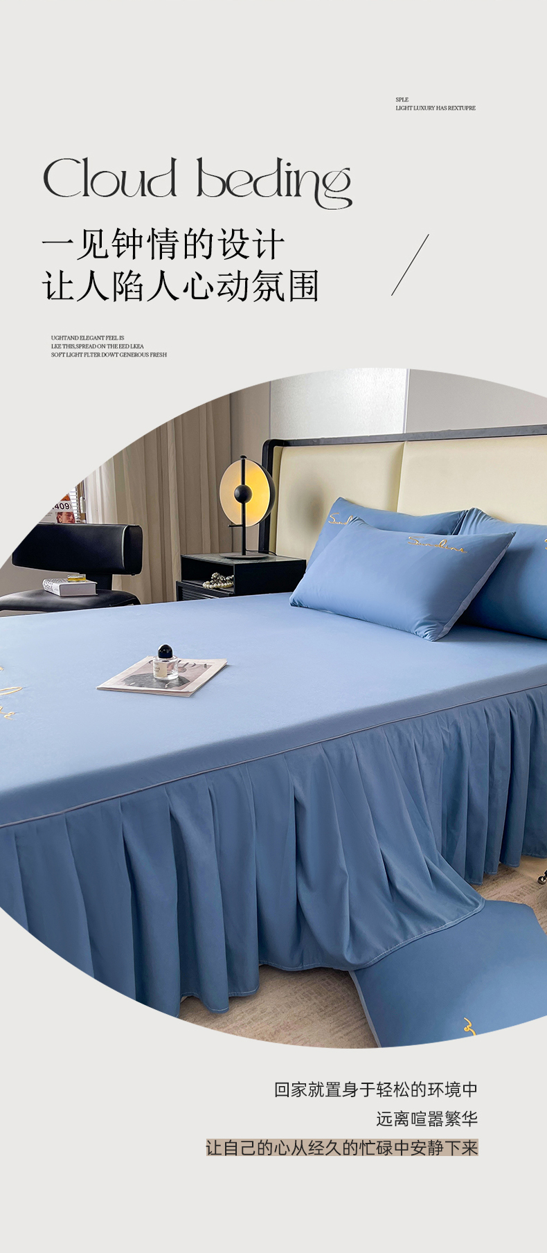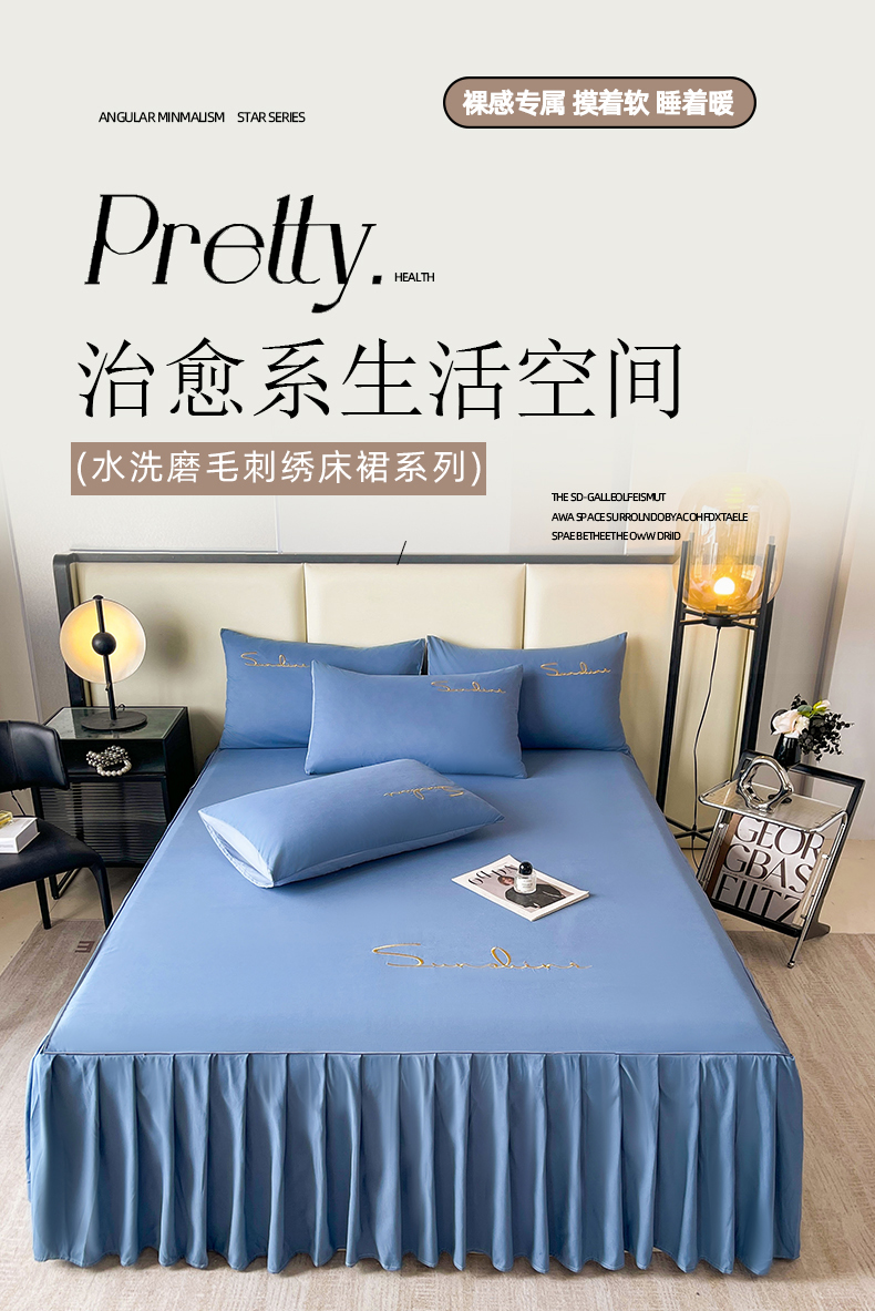 • 91家纺网 家纺一手货源 找家纺 七仙女家纺 2025新款水洗磨毛刺绣轻奢简约系列单床裙单品床裙床裙单件 繁星兰