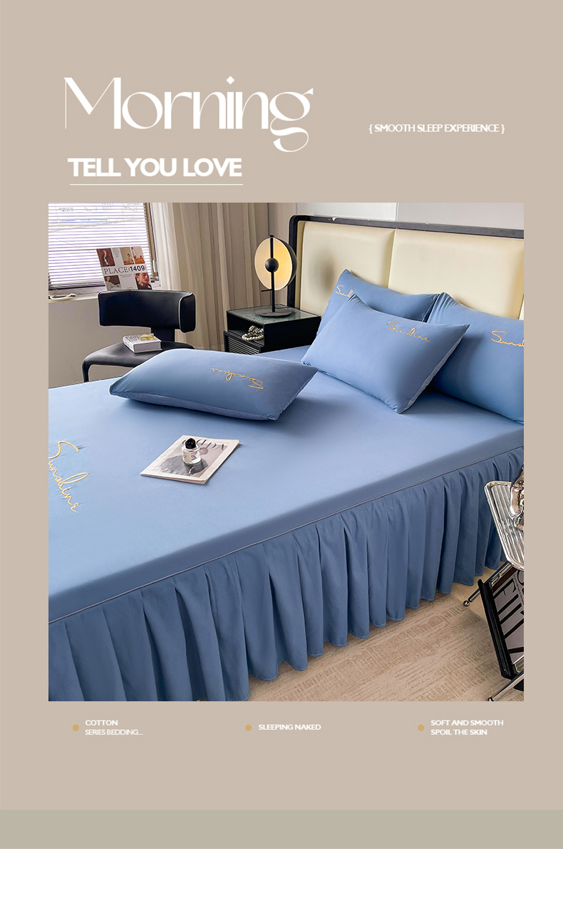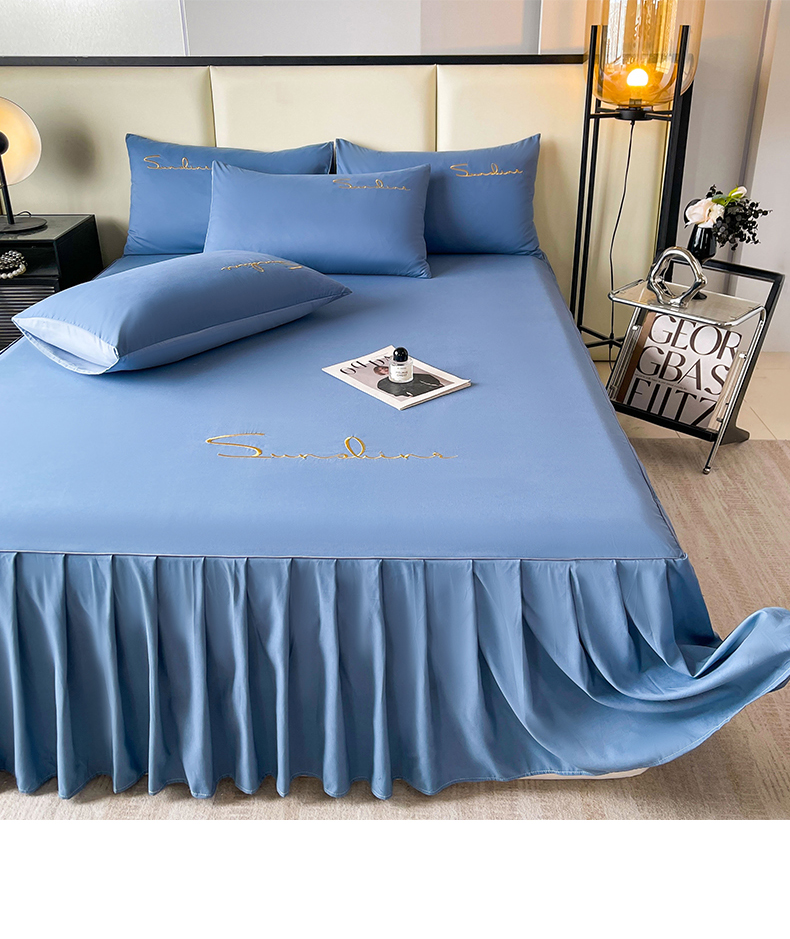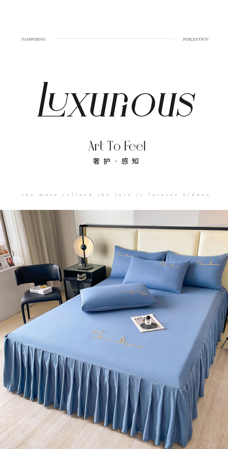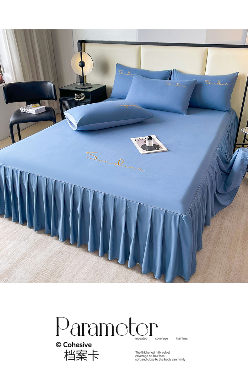 • 91家纺网 家纺一手货源 找家纺 七仙女家纺 2025新款水洗磨毛刺绣轻奢简约系列单床裙单品床裙床裙单件 繁星兰