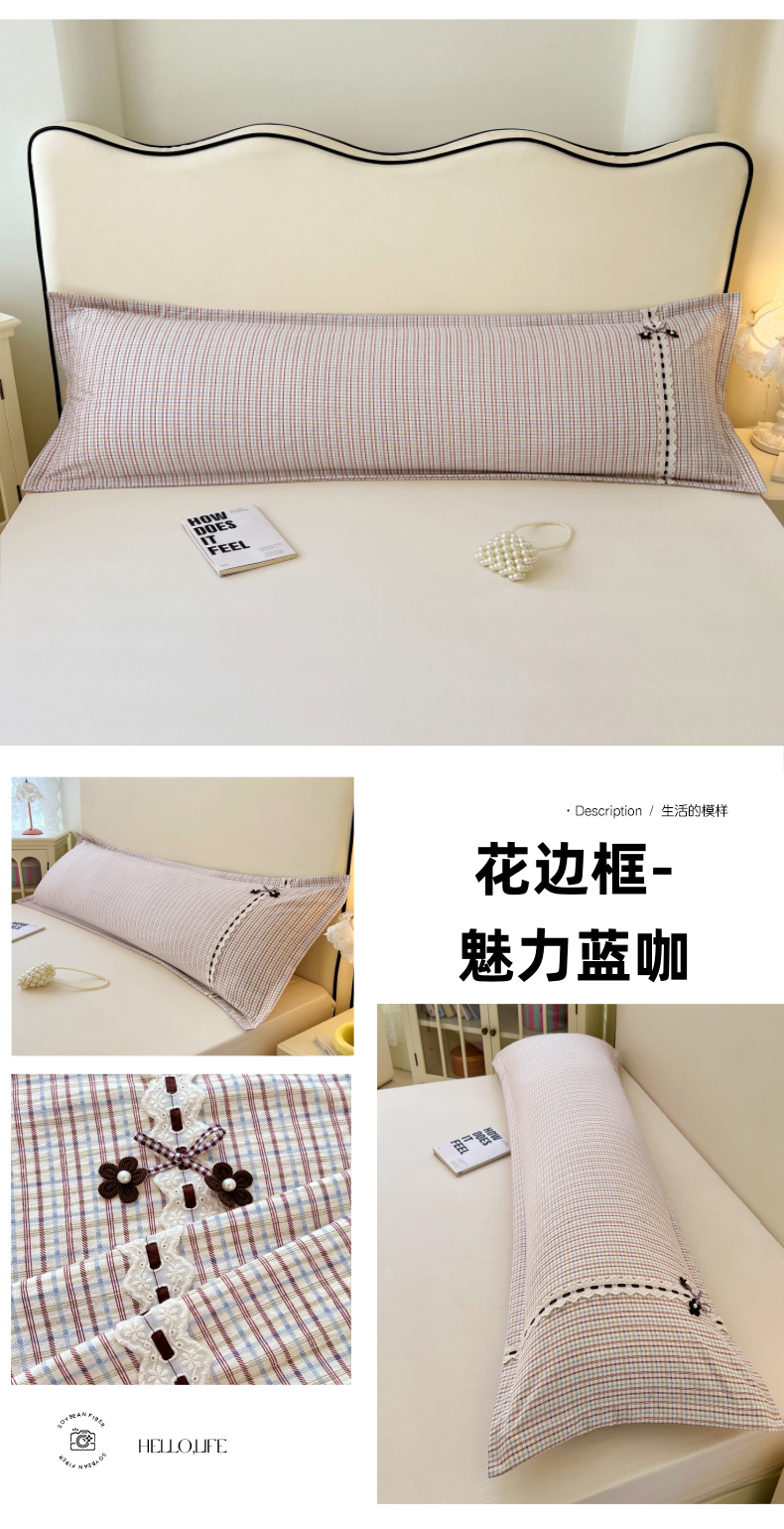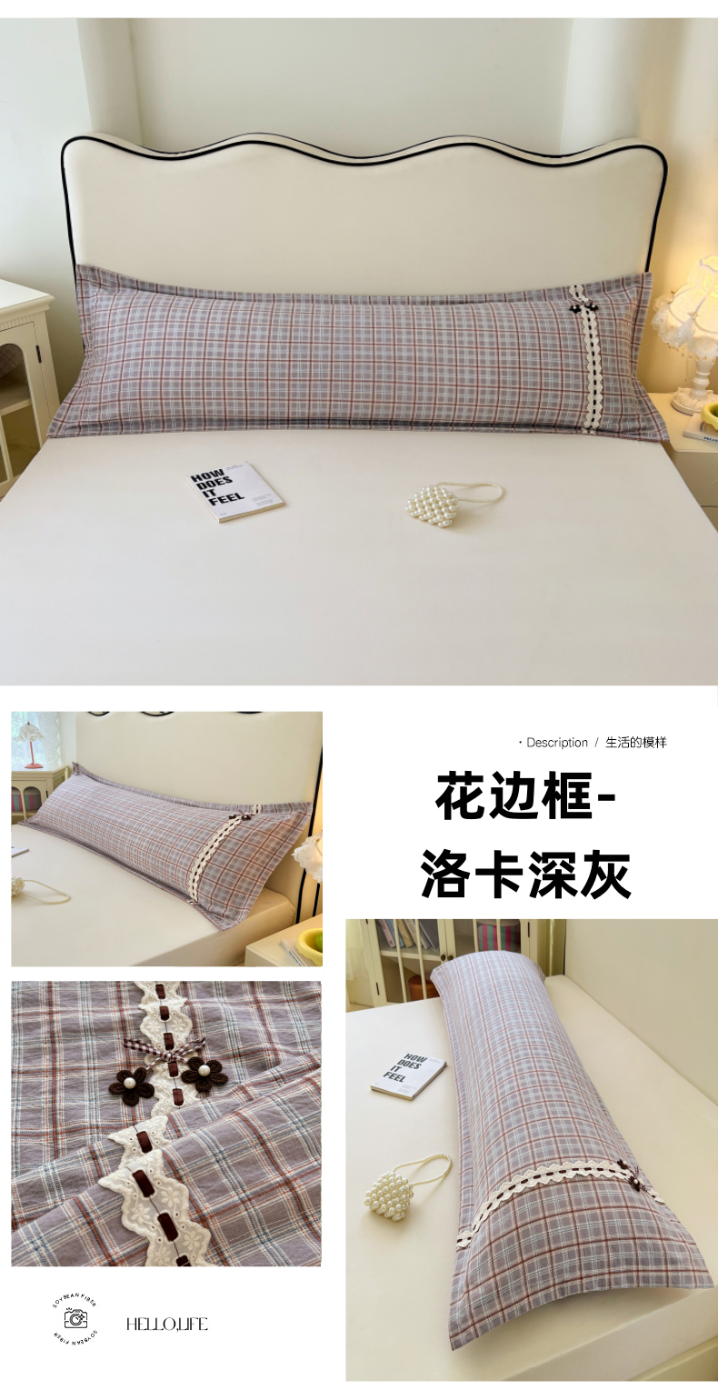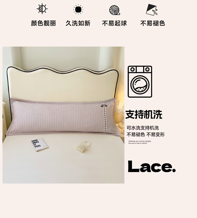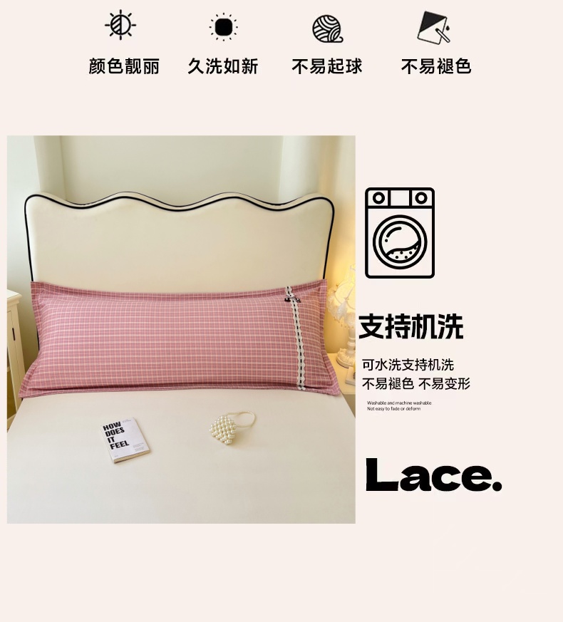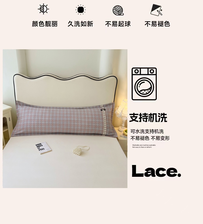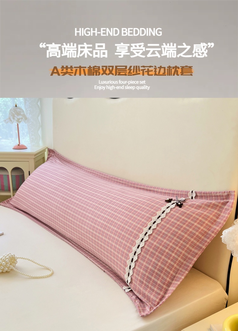 商品名称:(总)梦舒羽 2025新款双层纱蕾丝花边格子枕套宿舍双人情侣1.8m枕芯套1.5米内胆套